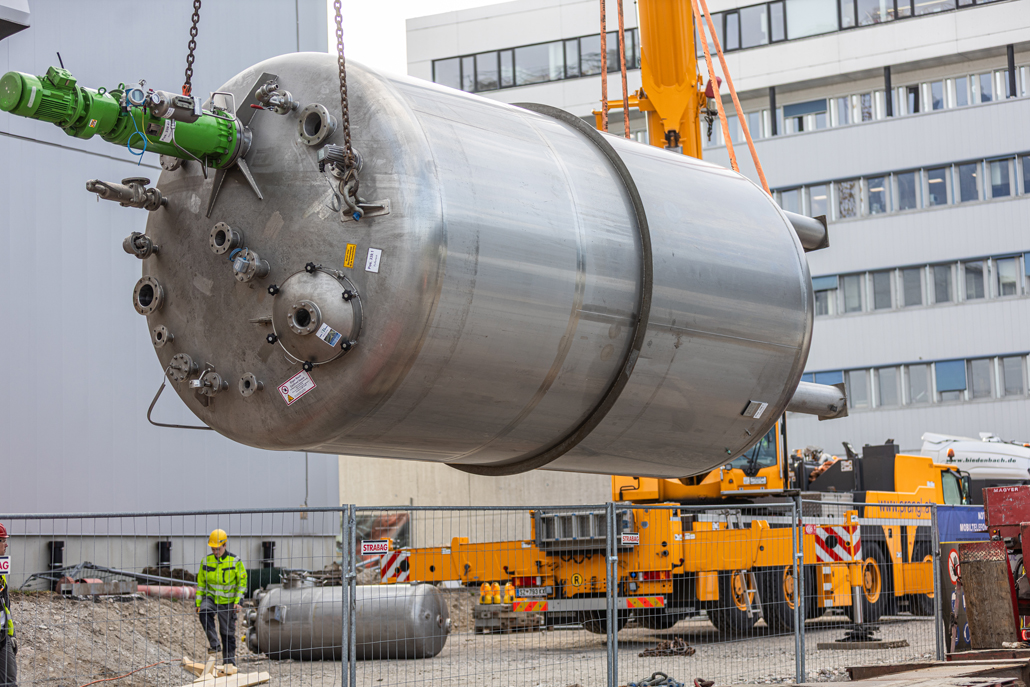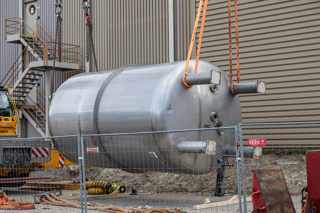 Prvo je uz pomoć građevinske dizalice otvoren krov, čime je omogućen pristup dizalicama postavljenima izvan hale, uz ogradu prema cesti. Kao glavna dizalica odabrana je teleskopska dizalica nosivosti 250 tona. Zahvaljujući svom teleskopskom kranu dužine 78 metara, cijela operacija mogla se izvesti s jedne pozicije. Zbog ograničenog prostora u skladišnom dvorištu, silosi su morali biti uklonjeni s milimetarskom preciznošću. Dodatni izazov predstavljali su mostovi s cijevima za prijenos osjetljivih tekućina.