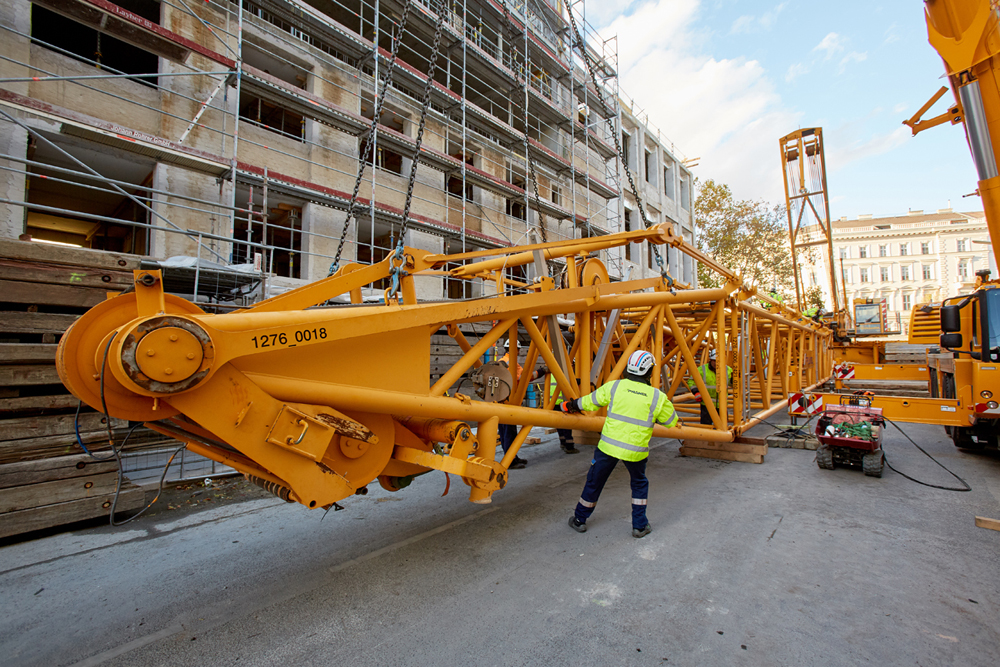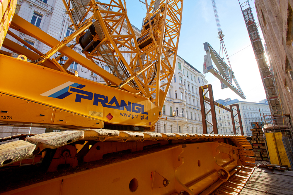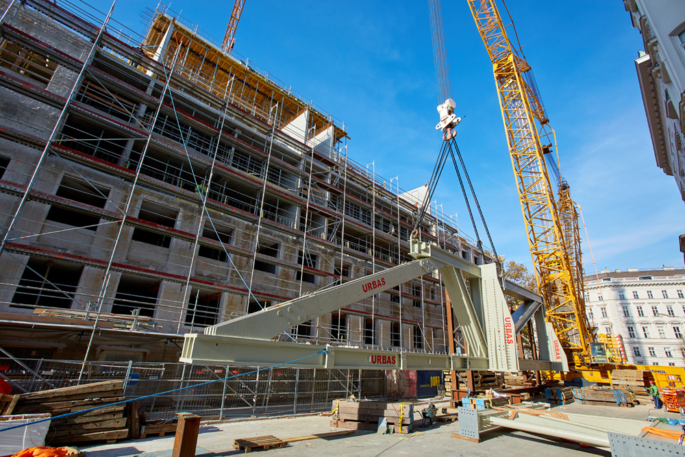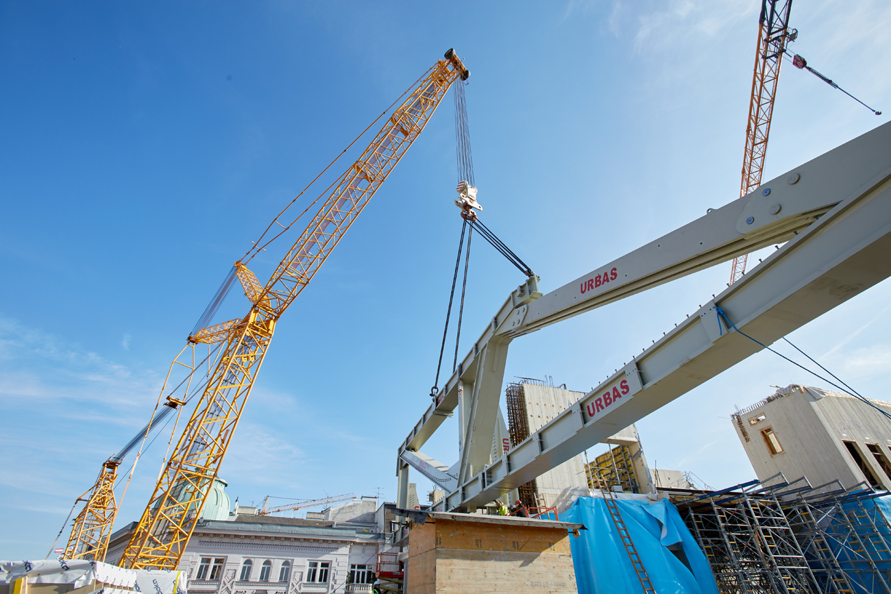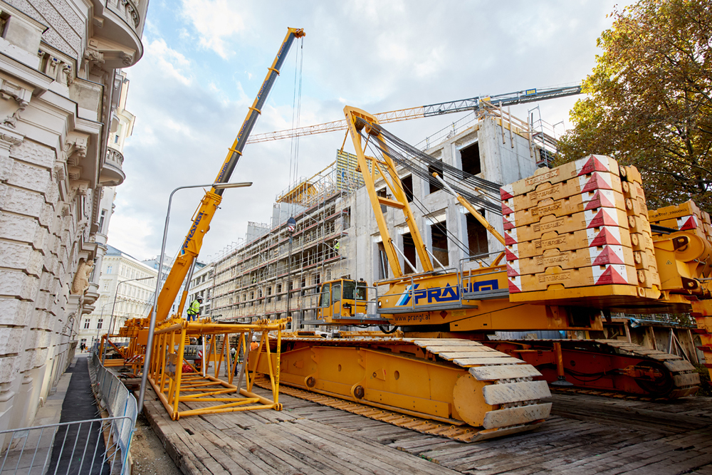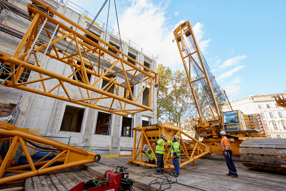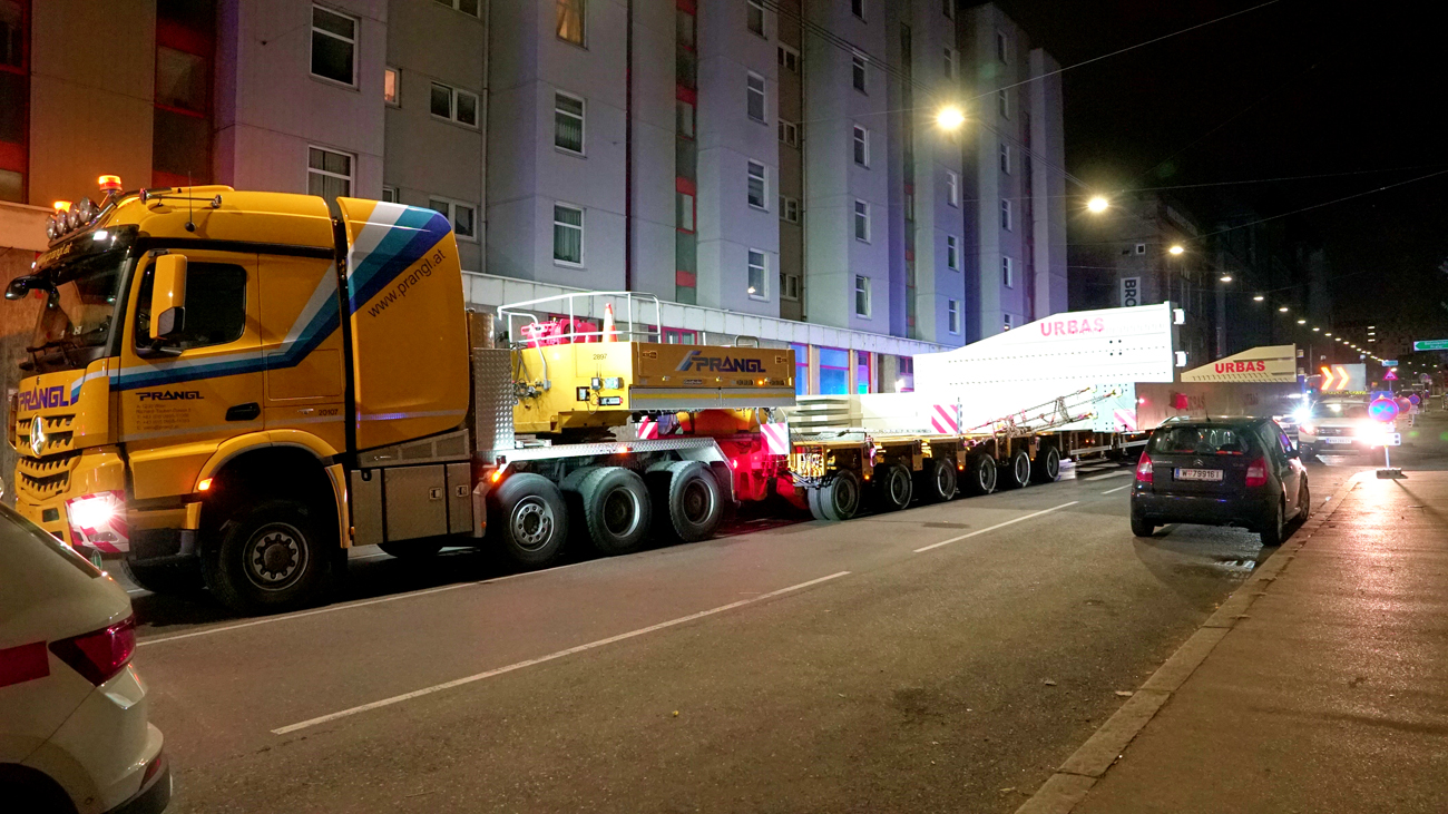 Osam vozila pratilo je teške prijevoze do Karlsplatza u Beču. Tamo ih je preuzela dizalica na gusjenicama s nosivošću od 600 tona te dužinom ruke od 84 metra. Neke od konstrukcija su podignute izravno, a druge su bile spojene na tlu. Najteži čelični element imao je jednu težinu od 165 tona. Kako bi se velika dizalica veličine obiteljske kuće mogla pozicionirati između dvije zgrade blizu stanice podzemne željeznice, bilo je potrebno nekoliko stvari: blokada ceste, brojne zabrane prometa, uklanjanje ulične rasvjete i promijene rute biciklističke staze.