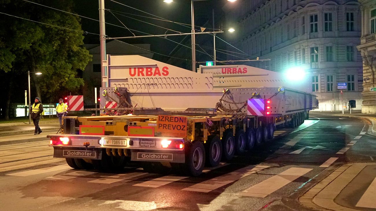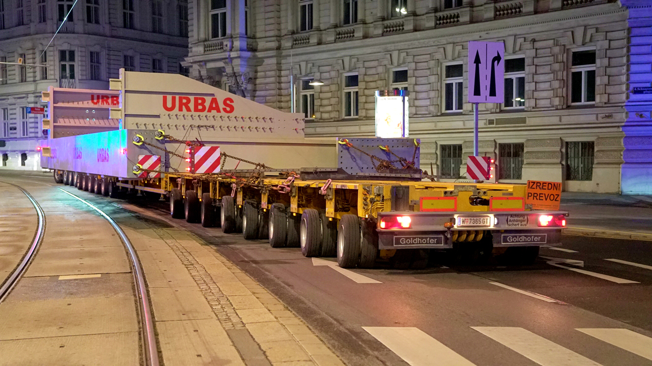 Kako bi se razni čelični okviri dovezli iz Koruške u Beč bilo je potrebno ukupno deset specijalnih prijevoza. Ovih deset utovara izvedeno je sa sedam različitih kombinacija opreme, pri čemu je najveća transportna jedinica 4-osovinski tegljač s 14-osovinskom kombinacijom za teške terete. Time je prevezen i najveći dio, širok 6,4 metra, dugačak 40 metara i težak 108 tona. Prijevozne dimenzije bile su još impresivnije: dužina je iznosila 47,5 metara, širina 6,4 metra, visina 4 metra, a ukupne težine gotovo 200 tona.