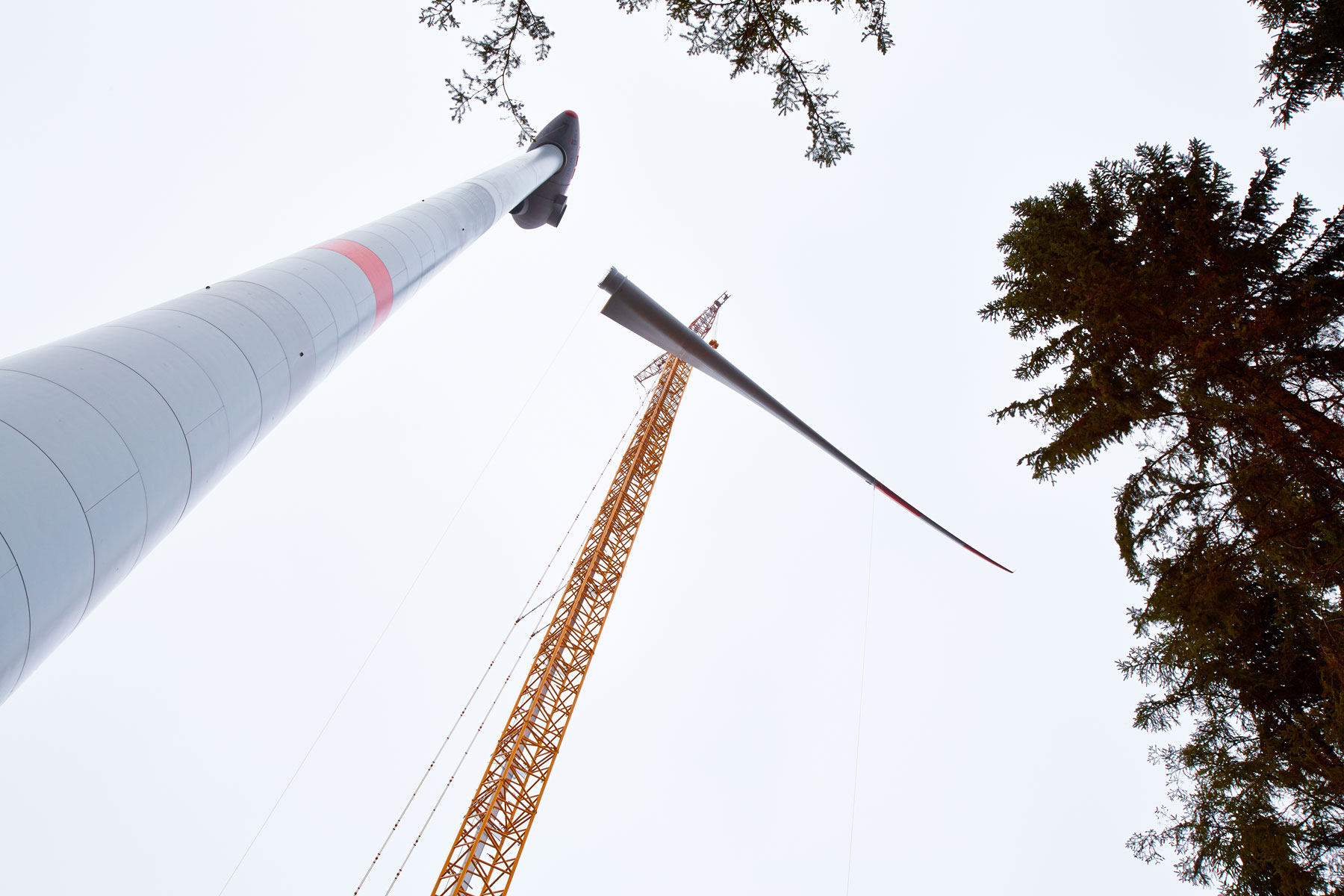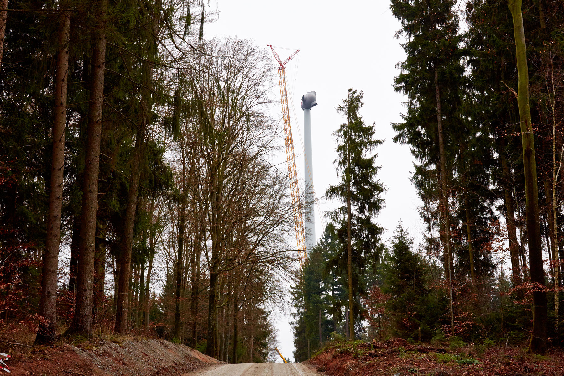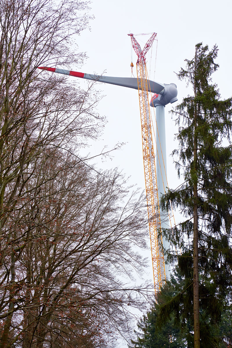 Kod svake vjetroturbine trebalo je podignuti dva čelična elementa s težinom od 55 tona. Najteže komponente predstavljaju dva kućišta motora od kojih svaki teži po 64 tona i po dvije glavine koje teže 65 tona. Budući da se vjetroelektrana nalazi u brdovitom šumskom području, prostor je prilično skučen - postavljanje i demontaža velikih dizalica predstavlja izazov. U kratkom roku trebalo je posjeći nekoliko stabala, što je učinjeno u koordinaciji s lokalnim operaterima, jer u suprotnom postavljanje vjetroturbina ne bi bilo moguće.