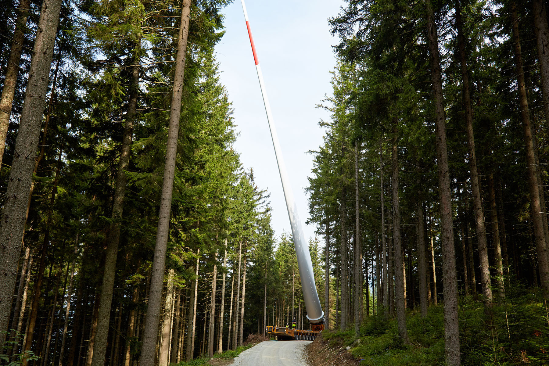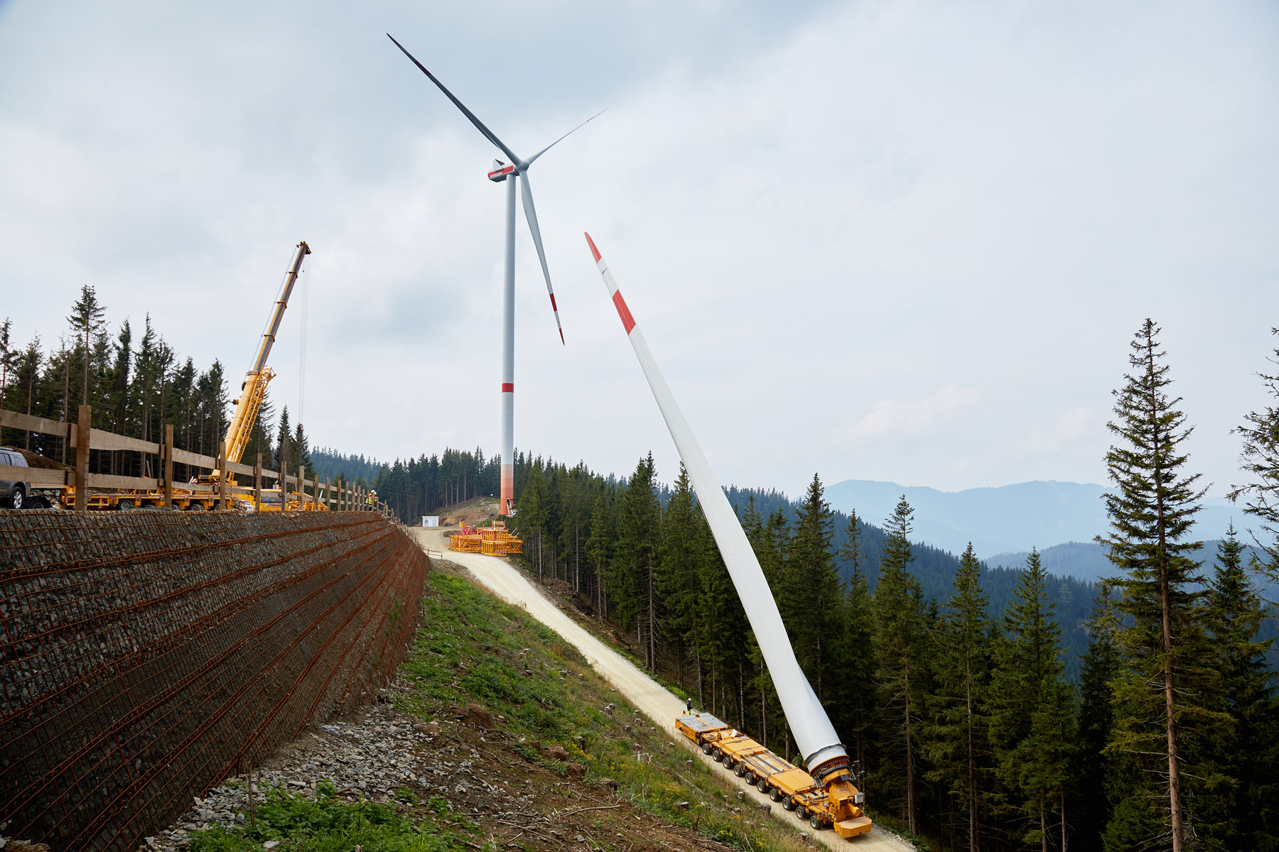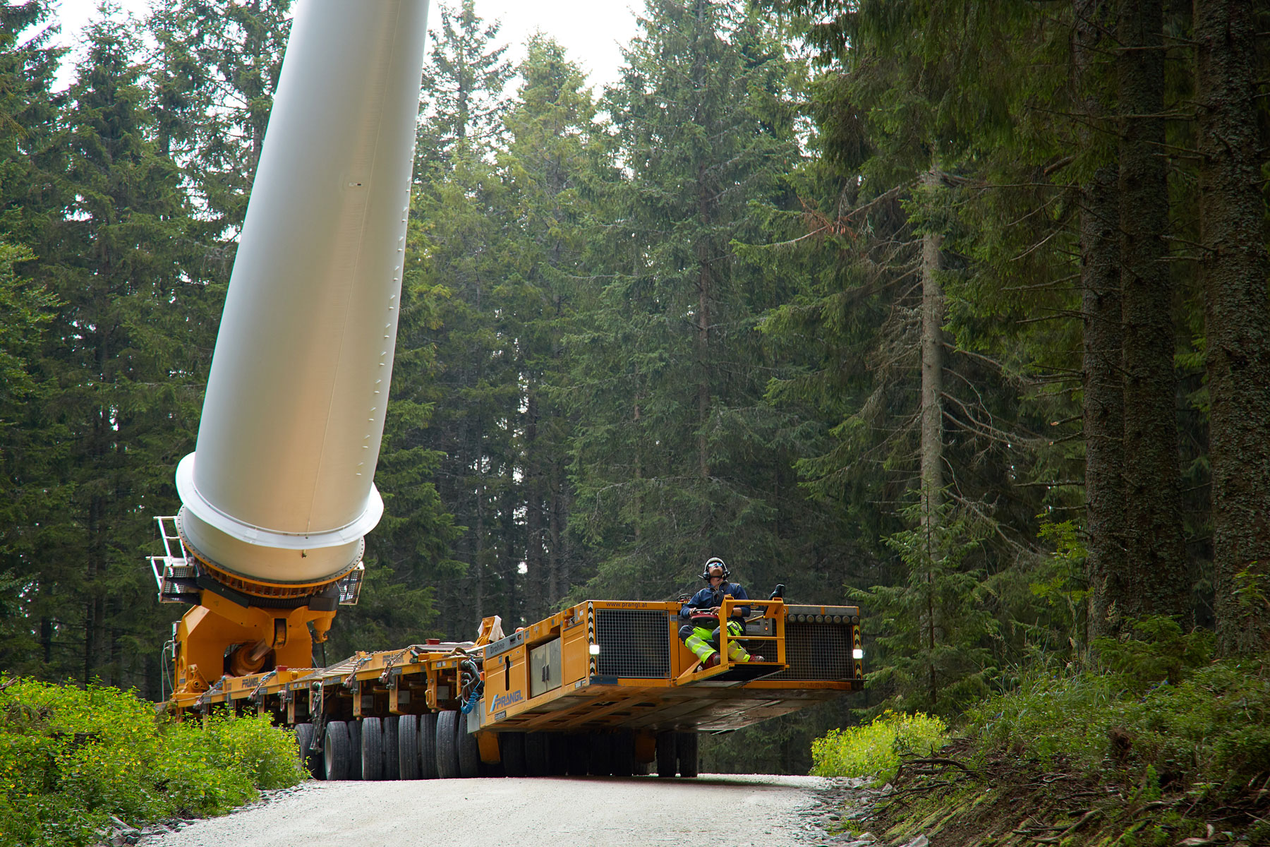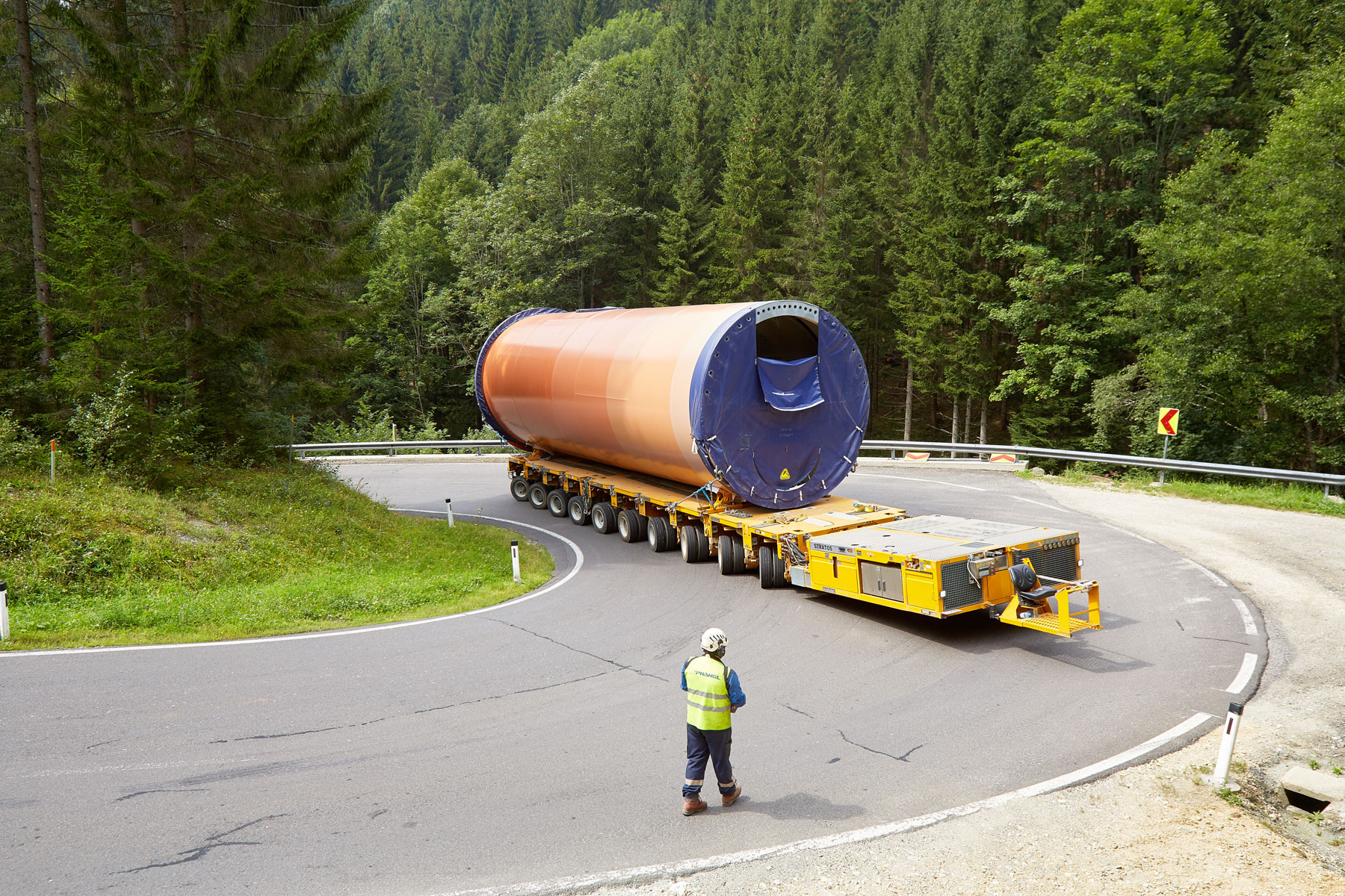 Prijevoznici teških tereta su iz Danske u Austriju prevezli građevine strojeva (neto težina 65,0 tona), glavčine (neto težina 31,5 tona), pogonski vlak (61,0 tona neto težine) i lopatice rotora (neto težine 14,7 tona). Segmenti tornja stigli su iz Njemačke. Najteže i najveće dijelove trebalo u unutrašnjosti dopremiti riječnim brodom. Nakon pretovara u luci grada Enns, koji je također izvršila tvrtka Prangl, čelični dijelovi s maksimalnom težinom od 87,0 tona mogli su nastaviti svoj put. Čelični segmenti imali su duljine do 30,0 metara.