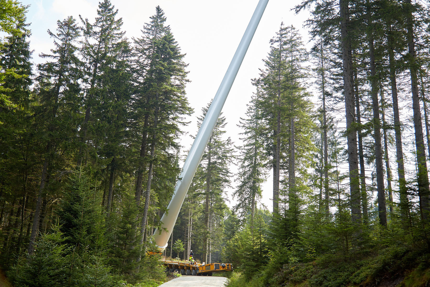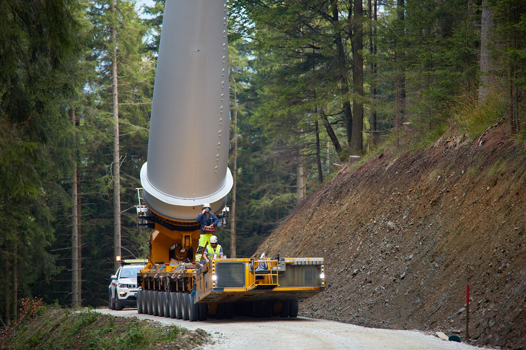 Kako bi se uzela u obzir zaštita prirode, za prijevoz krila vjetroelektrane korišten je dokazani uređaj za transport krila. Taj je omogućavao da se krila rotora dužine od 62 metra u uskim zavojima do 60° postave u uspravan položaj. Kao rezultat toga, mjere prilagodbe planinskih cesta i ruta svedene su na minimum. Ne samo da je to zaštito prirodu i krajolik, već je uštedilo i novac za operatera tog podviga. Vrijeme putovanja na 16-kilometrskoj ruti trajalo je do četiri sata i zahtijevalo je iznimnu koncentraciju.