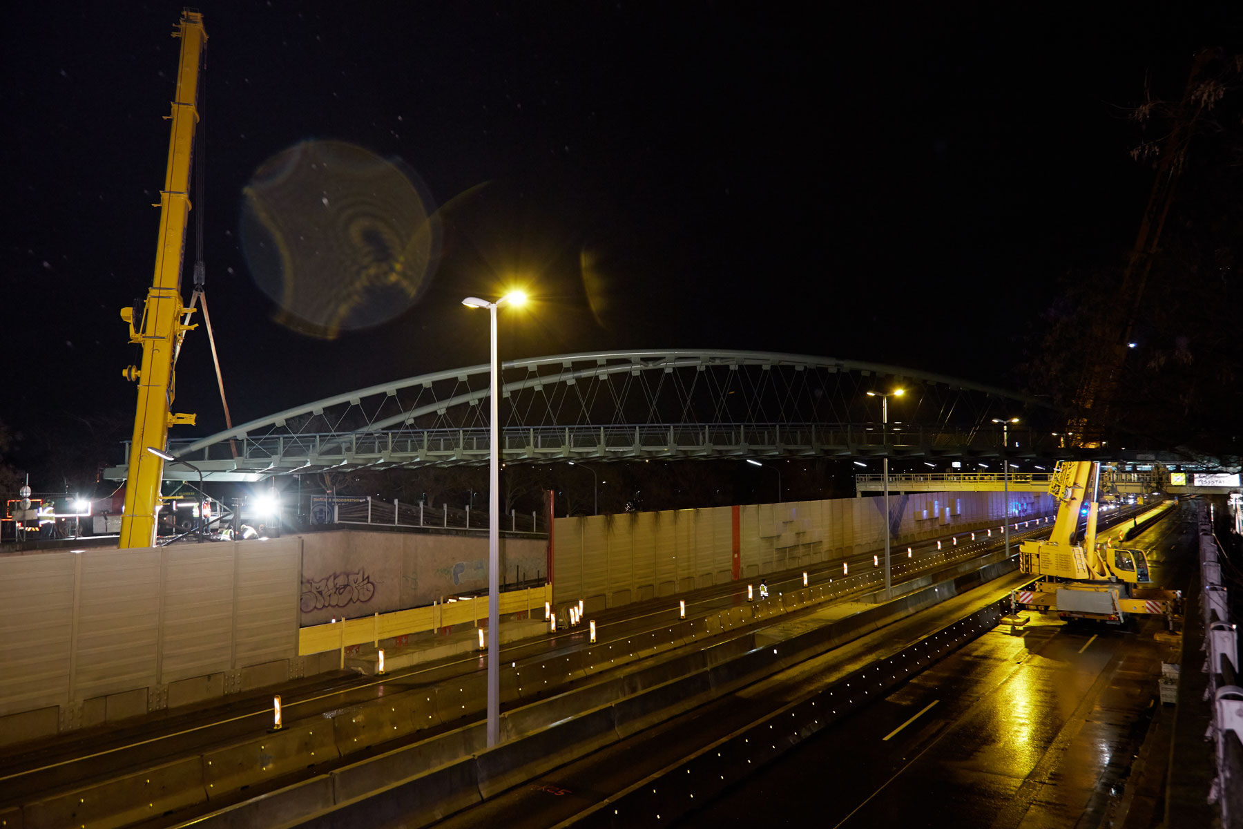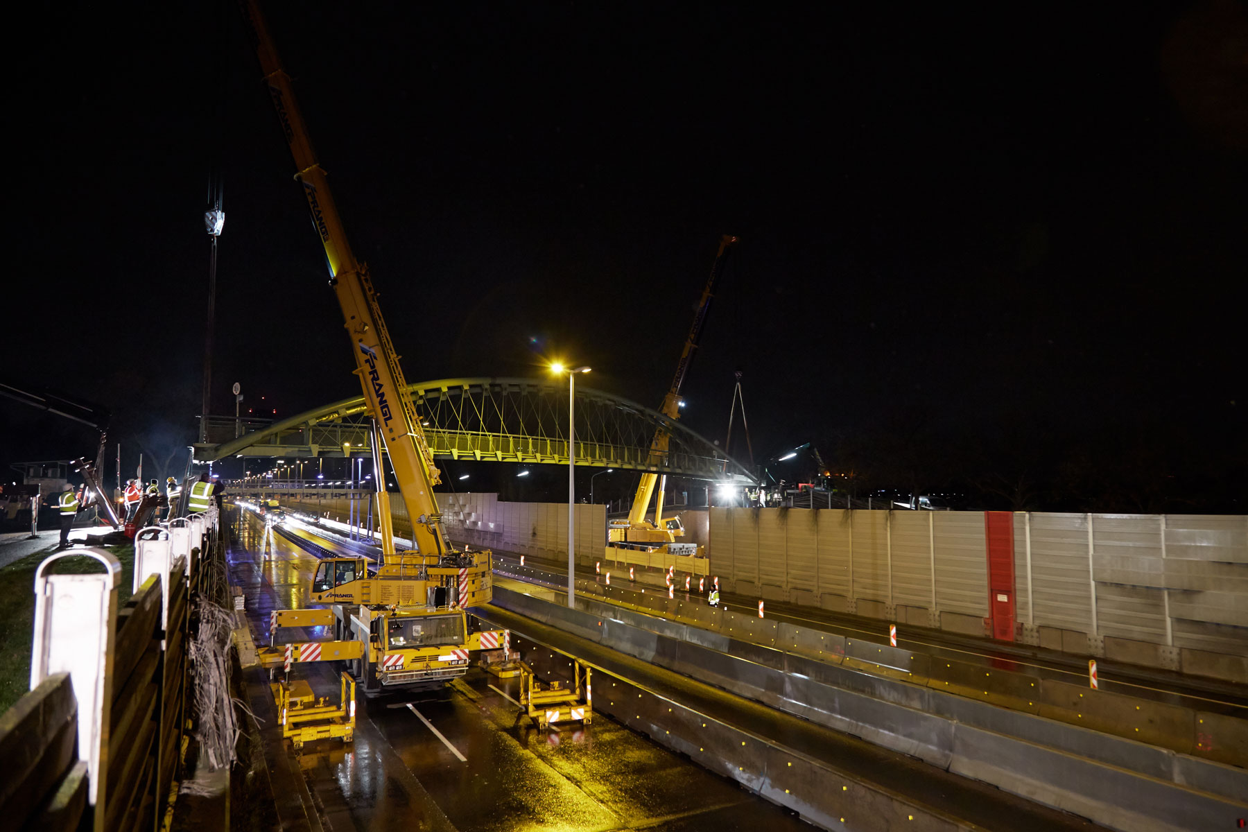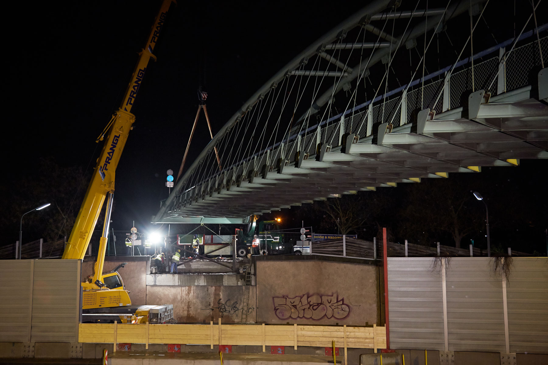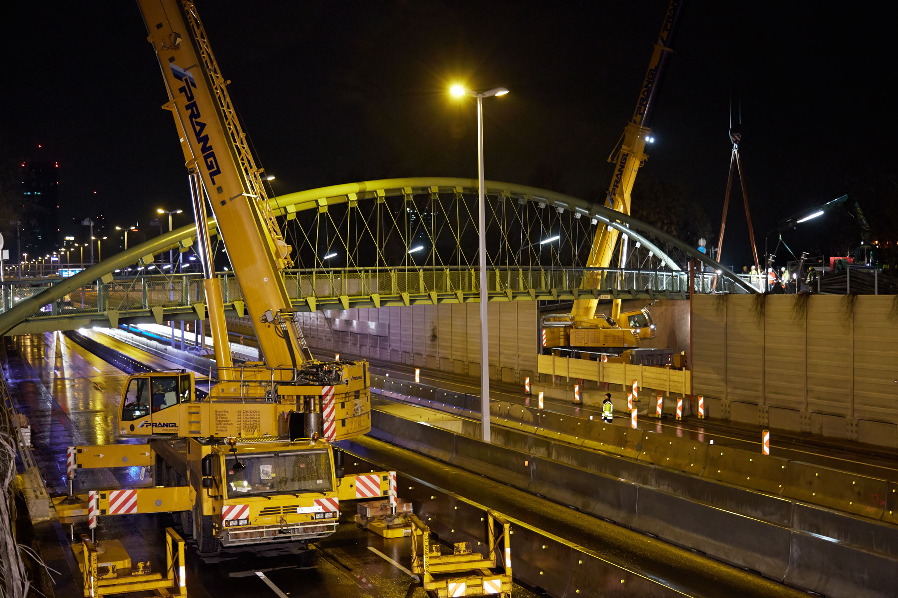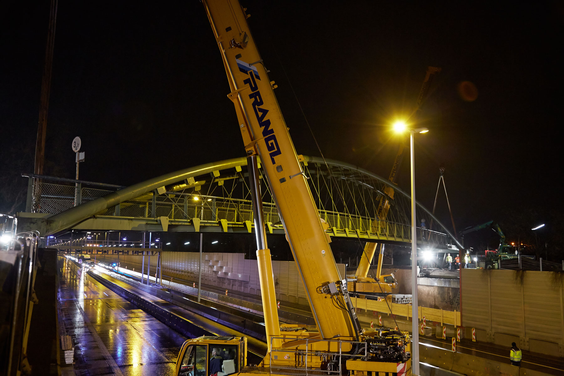 To podizanje je za tim tvrtke Prangl predstavljalo zahtjevan rad. Unatoč velikog iskustva, potrebna vam je sposobnost da se savršeno koordinirate putem radija. Ovaj je zadatak također bio izazovan zbog kratkog vremenskog okvira. Iz sigurnosnih razloga, zbog tandemskog podizanja morala je biti zatvorena čitava cesta A22. Cjelokupan posao morao se obaviti između 02.00 i 05.00 sati. Zahvaljujući dobro obučenim operaterima, dobroj suradnji na licu mjesta i preciznom planiranju, projekt je izveden na vrijeme i na puno zadovoljstvo svih sudionika.