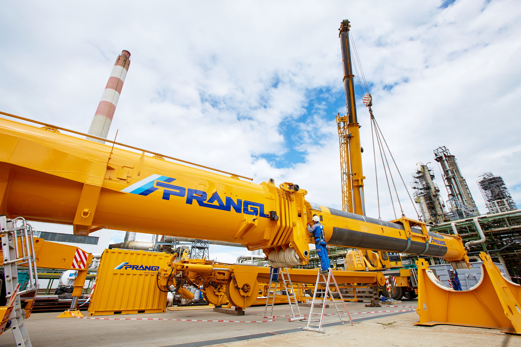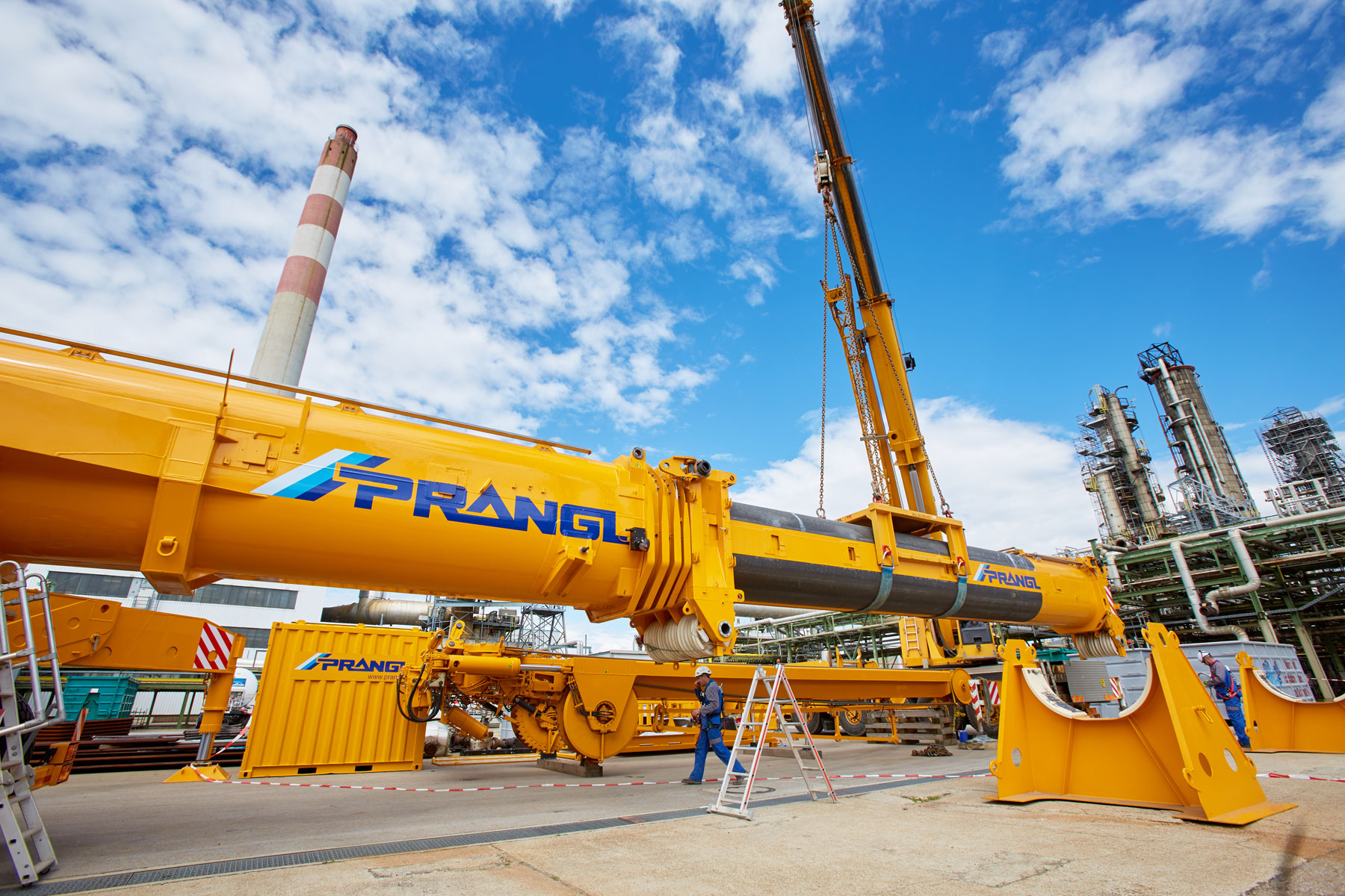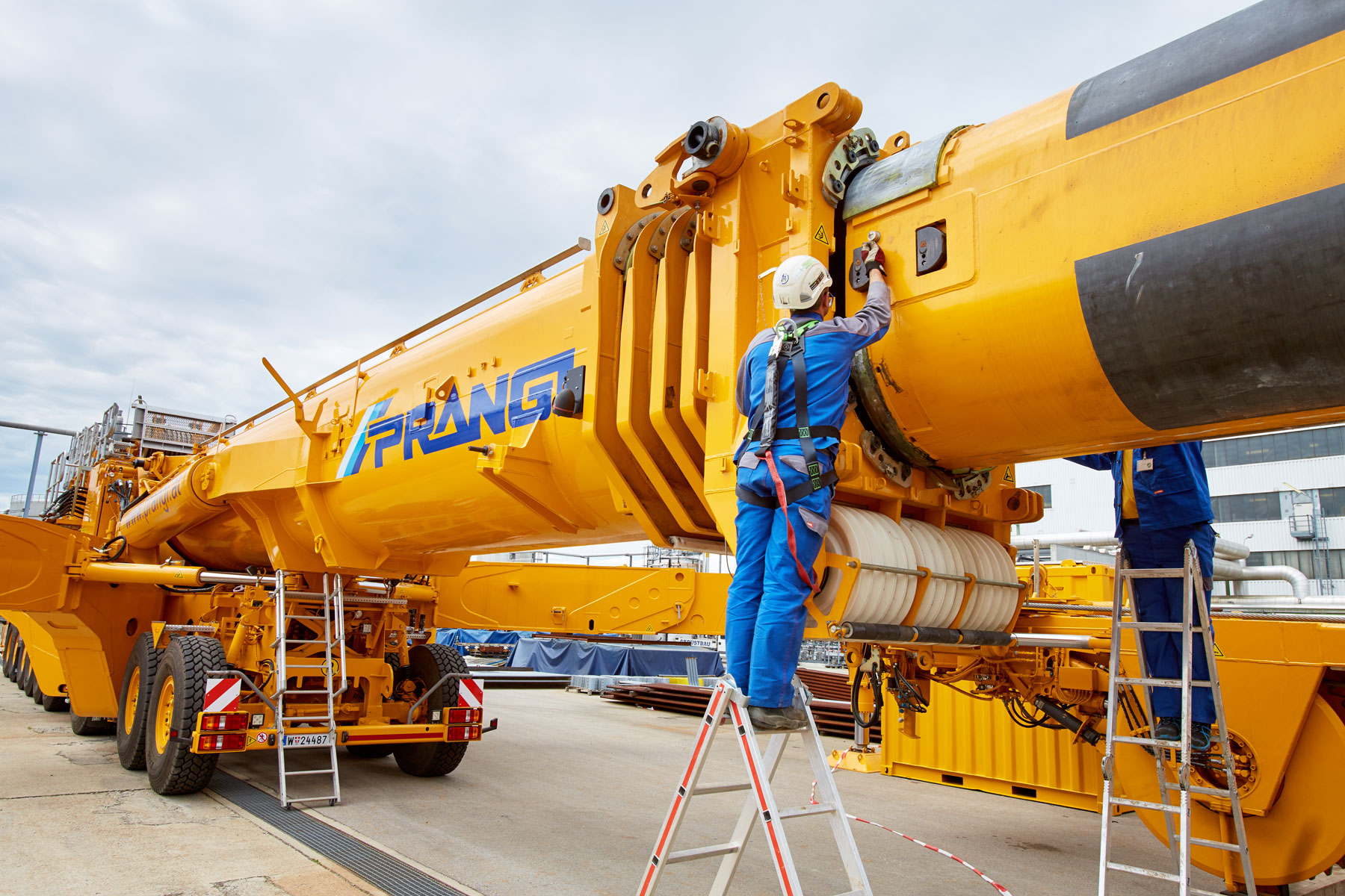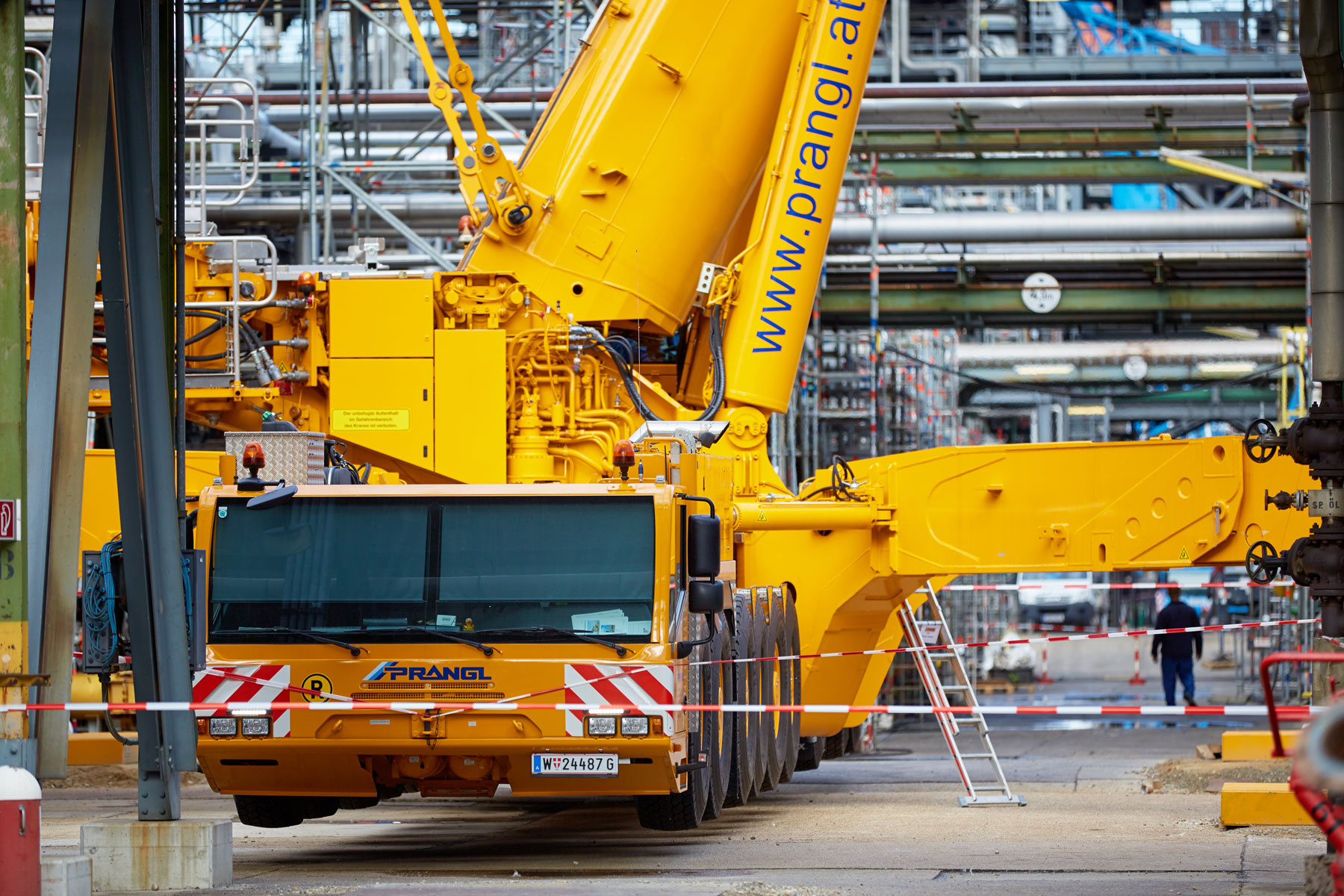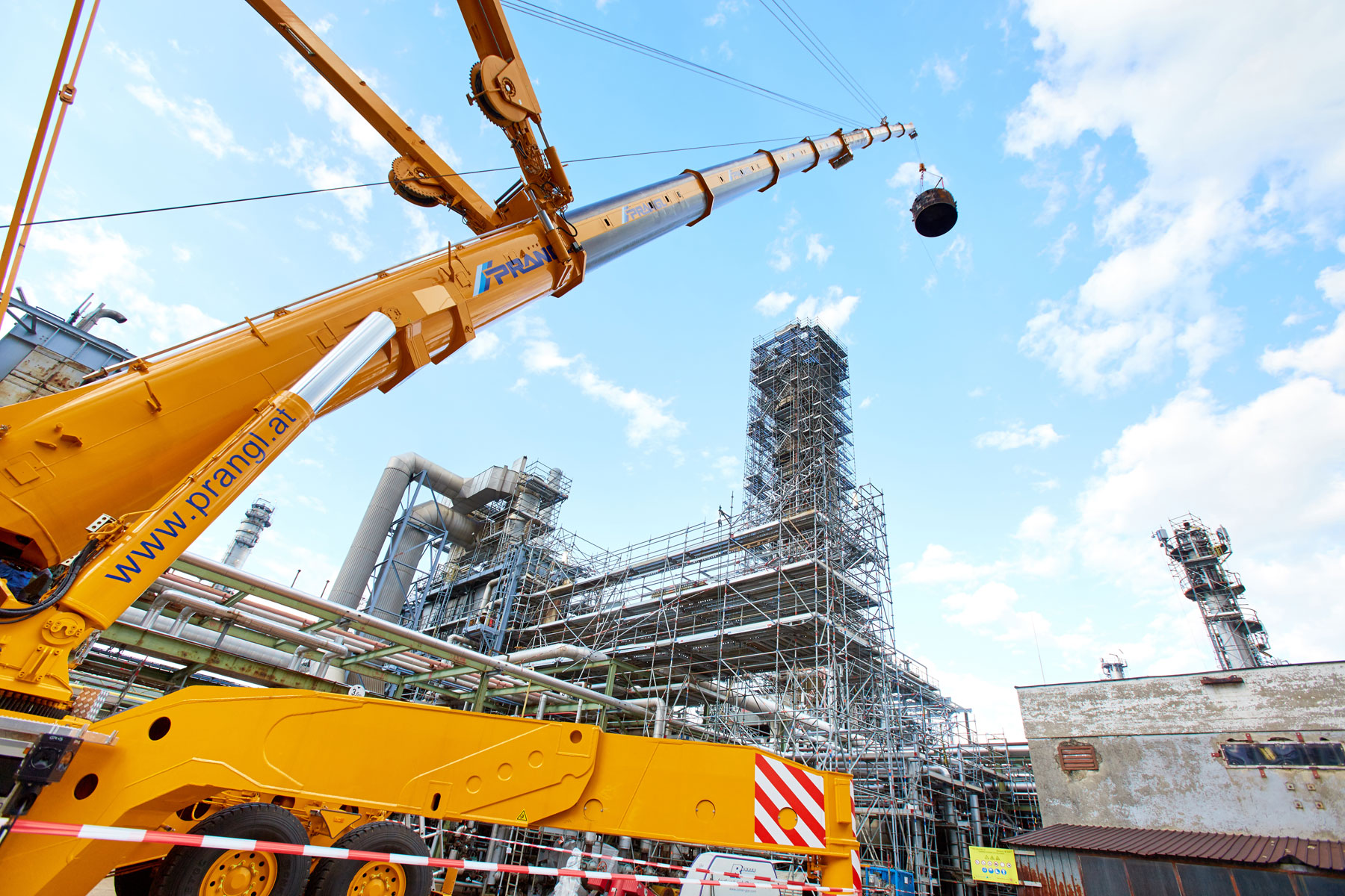 I u tvrtki Prangl svaki je potez bio isplaniran do posljednjeg detalja jer su radovi izvođeni u ograničenom prostoru i pod velikim vremenskim pritiskom. Jednako pedantno odabrani su i uređaji za tu veliku narudžbu: Stručnjaci tvrtke Prangl na radilištu su se iskazali s ukupno 45 teleskopskih dizalica, 11 utovarnih dizalica, 25 viličara i teleskopskih viličara, tri tegljača i 50 metara visokim radnim platformama za kamione. Srce cjelokupne generalne inspekcije za 2017. godinu sigurno je bila teleskopska dizalica koja teži 1000 tona i najveća je u Austriji. Upotrijebljena je tijekom zamjene vrha stupa u postrojenju „HDS 3 Splitter“ zbog svog neusporedivog lateralnog raspona.