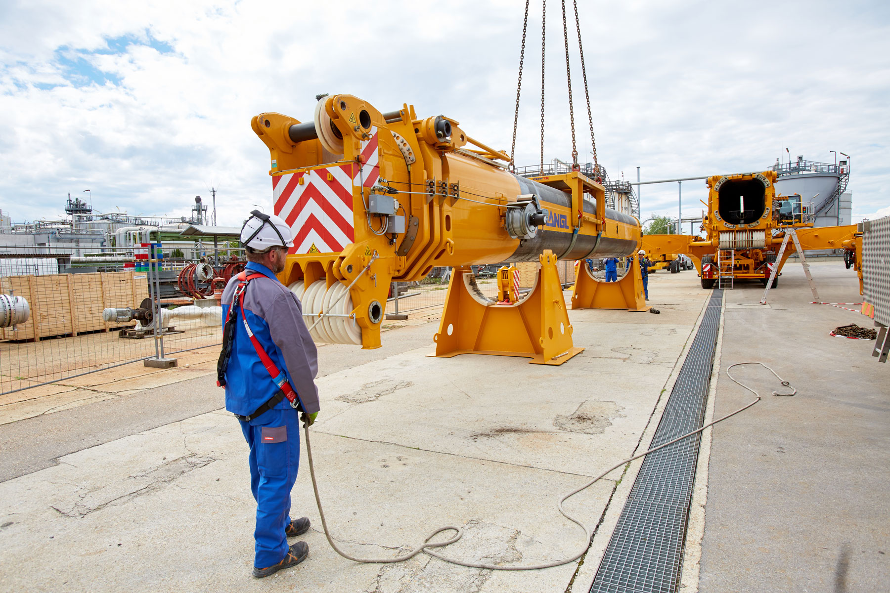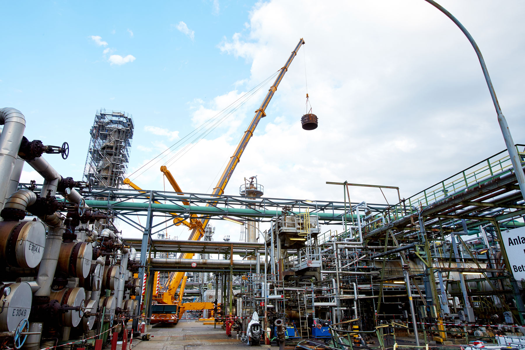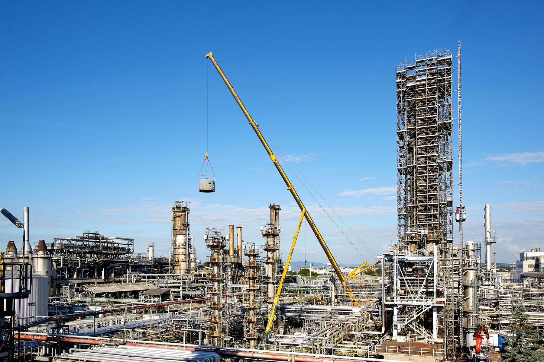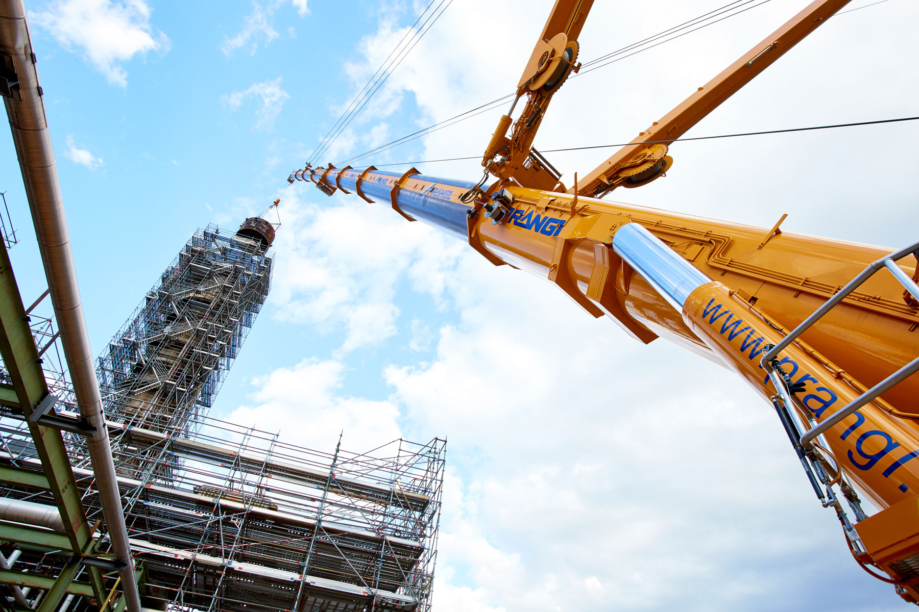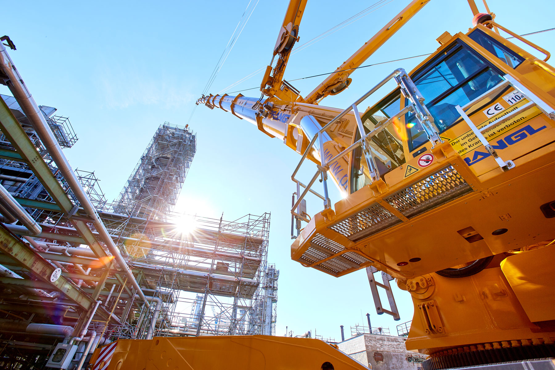 I u tvrtki Prangl svaki je potez bio isplaniran do posljednjeg detalja jer su radovi izvođeni u ograničenom prostoru i pod velikim vremenskim pritiskom. Jednako pedantno odabrani su i uređaji za tu veliku narudžbu: Stručnjaci tvrtke Prangl na radilištu su se iskazali s ukupno 45 teleskopskih dizalica, 11 utovarnih dizalica, 25 viličara i teleskopskih viličara, tri tegljača i 50 metara visokim radnim platformama za kamione. Srce cjelokupne generalne inspekcije za 2017. godinu sigurno je bila teleskopska dizalica koja teži 1000 tona i najveća je u Austriji. Upotrijebljena je tijekom zamjene vrha stupa u postrojenju „HDS 3 Splitter“ zbog svog neusporedivog lateralnog raspona.