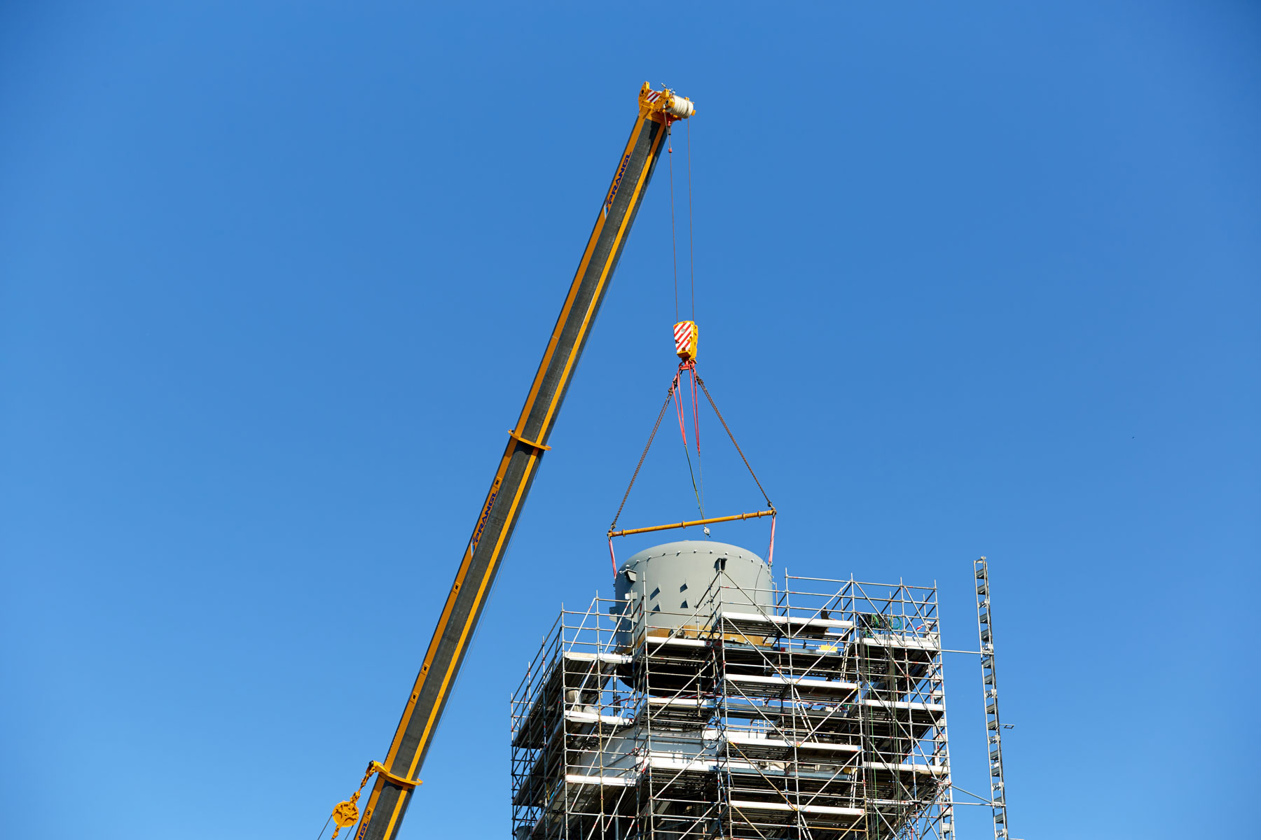 Žuti gigant je s dosegom od 60 m na visini od 70 m podizao 10 tona. Zbog vrlo ograničenog prostora postavljanja i činjenice da je cesta cijelo vrijeme morala biti otvorena, nije mogla biti korištena ni jedna druga vrsta opreme. Zahvaljujući svojoj sklopivoj ruci koja se može sastaviti na licu mjesta, zasigurno je riječ o dizalici koja se nalazi u samom vrhu svoje klase. Alternativni koncept obuhvaćao je nadgradnju iznad aktivnog plinovoda, što je zbog sigurnosnih razloga tvrtka OMV odbila.