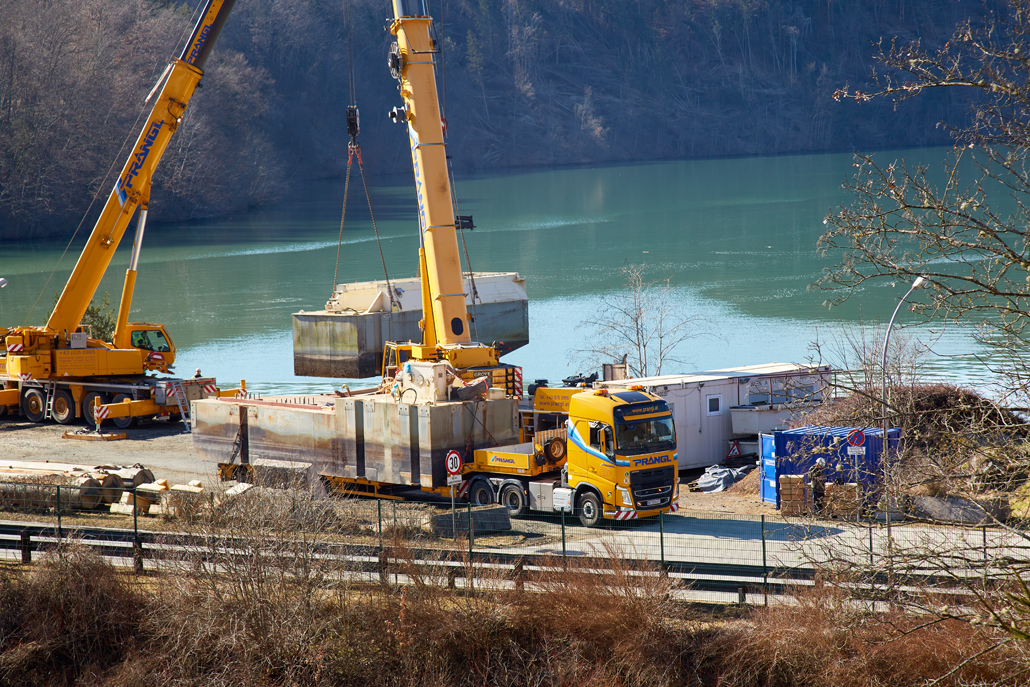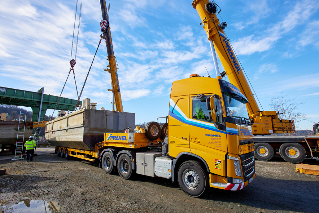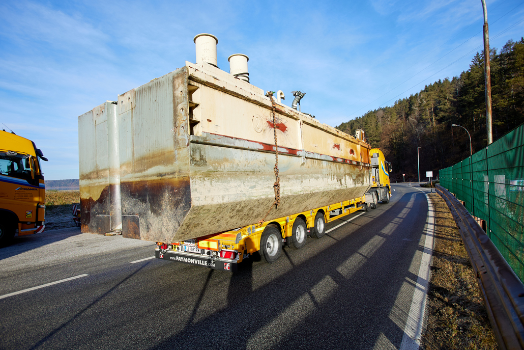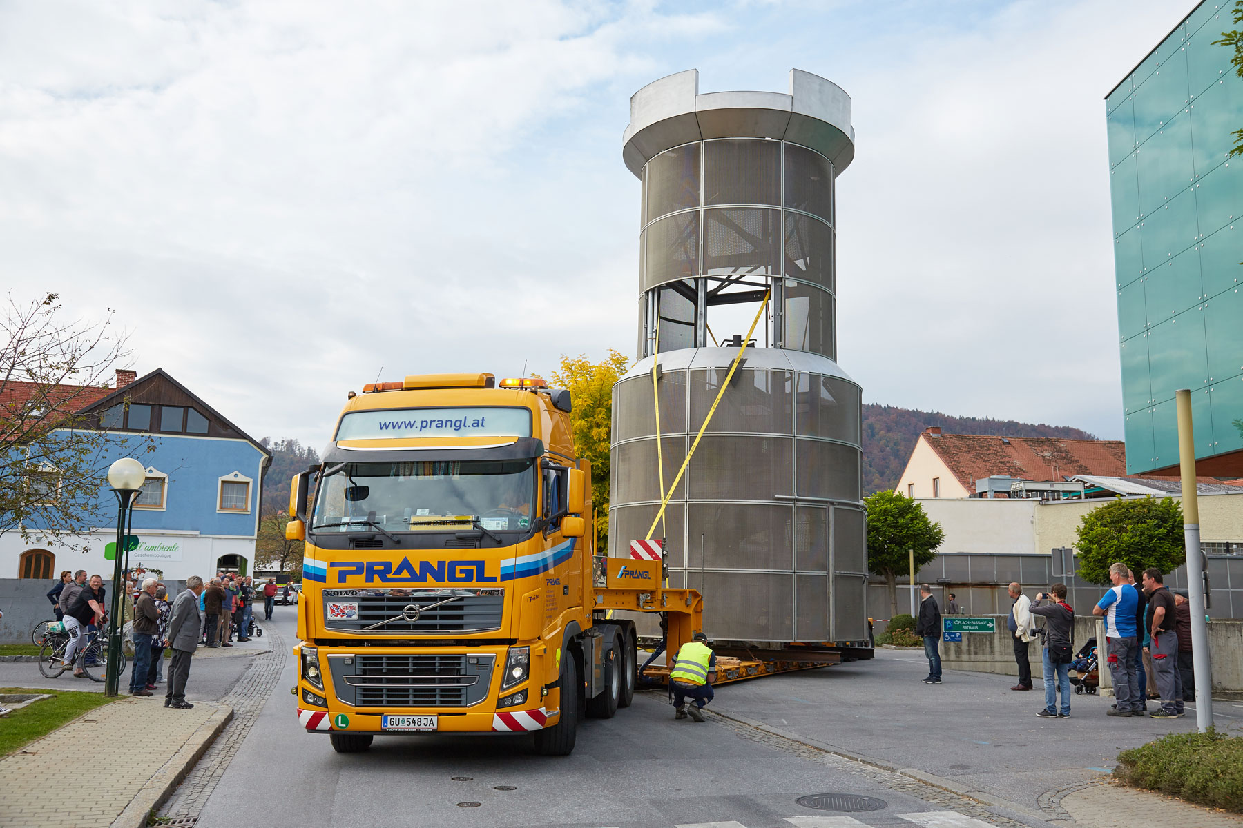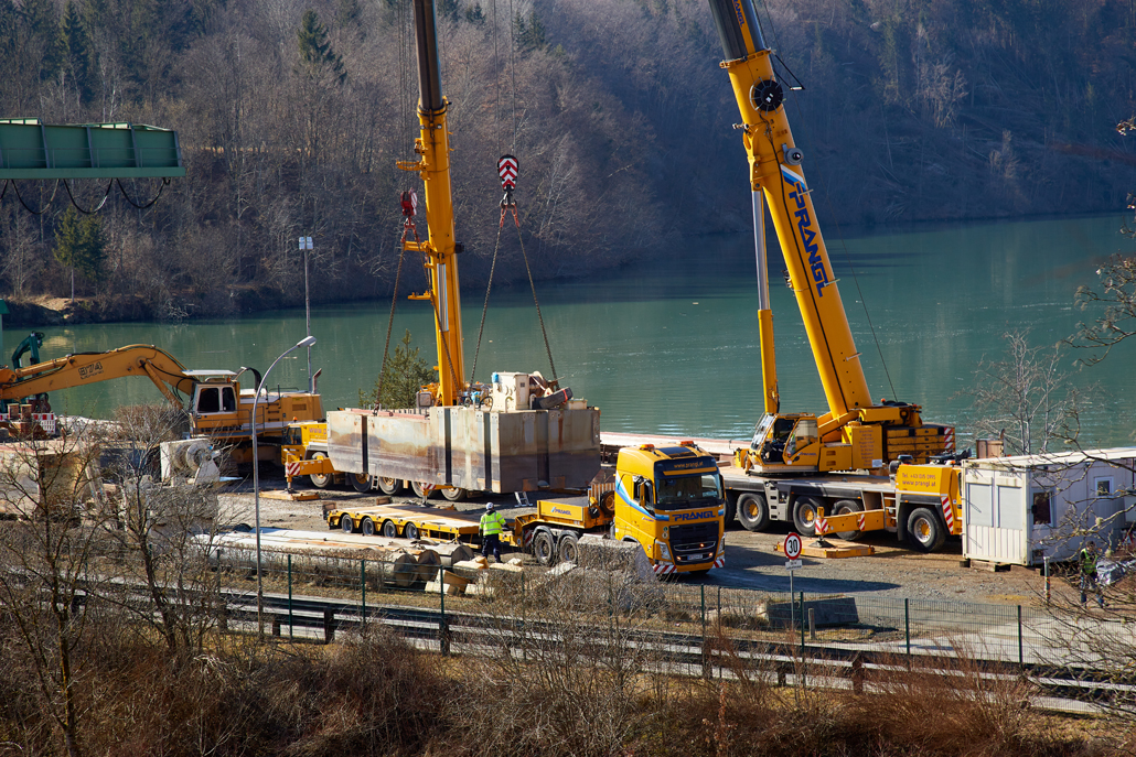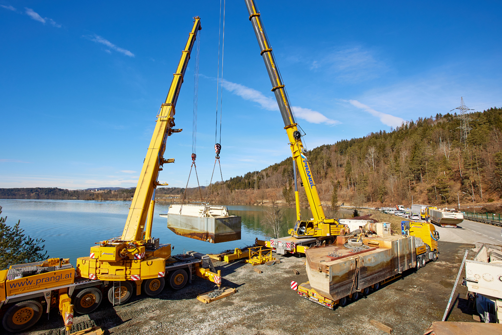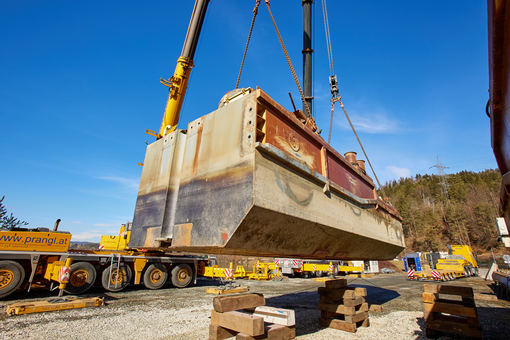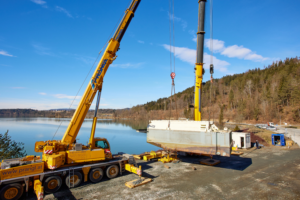 Nakon što su svi dijelovi utovareni, osigurani su i pripremljeni za transport. Ruta do Tirola bila je, naravno, unaprijed pažljivo provjerena i morali su se prihvatiti dugi obilazni putovi kroz Bavarsku. Dijelovi broda iz Edlinga, poput onih iz St. Jakob im Rosental sretno je stigao u Tirol. Na mjestu za istovar u Kufsteinu - koje je izgrađeno i prethodno testirano na prikladnost u dogovoru s timom Prangl - dijelovi broda su čekani i istovareni teleskopskim utovarivačem od 250 tona i teleskopskim utovarivačem od 160 tona.