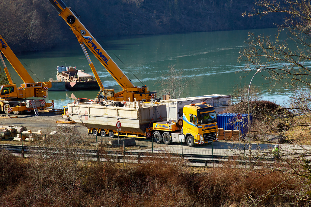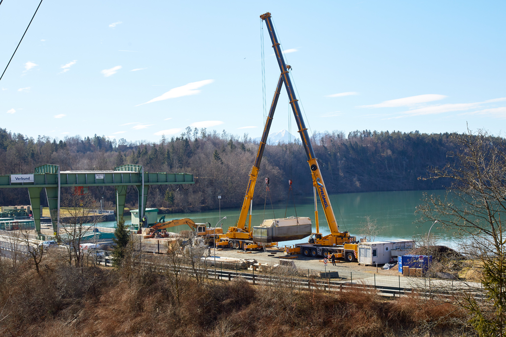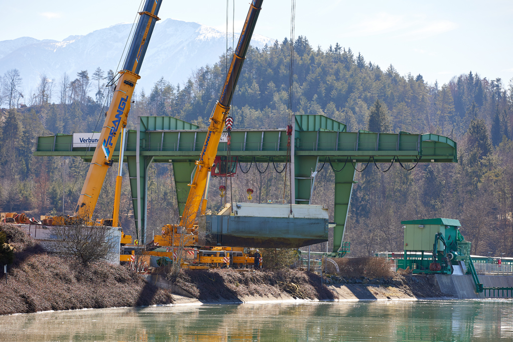 Tijekom sljedeće četiri godine teglenice će imati zadatak jaružanja oko 400.000 do 500.000 kubičnih metara slojnog materijala u elektrani Oberaudorf-Ebbs am Inn u blizini Kufsteina. Za prijevoz do Tirola teglenice su morale biti rastavljene na četiri dijela, od kojih je svaki bio težak 40 tona i dugačak 22 metra, a zatim su ih utovarili na teške transportere. Tada je konačno došlo vrijeme u Edlingu: teleskopska dizalica od 130 tona i teleskopska dizalica od 220 tona postavljene su na prikladnu lokaciju na rezervoaru Völkermarkt. Dijelovi teglenice stigli su brodom.