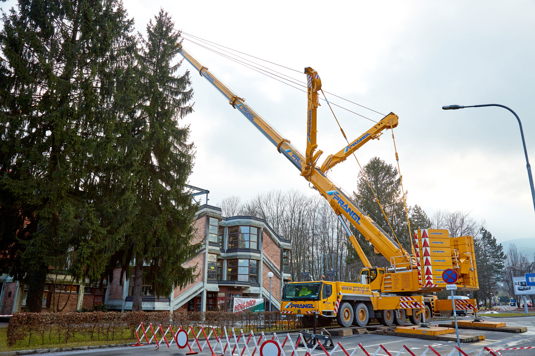 Glavna dizalica je bila teleskopska dizalica koja teži 350 tona