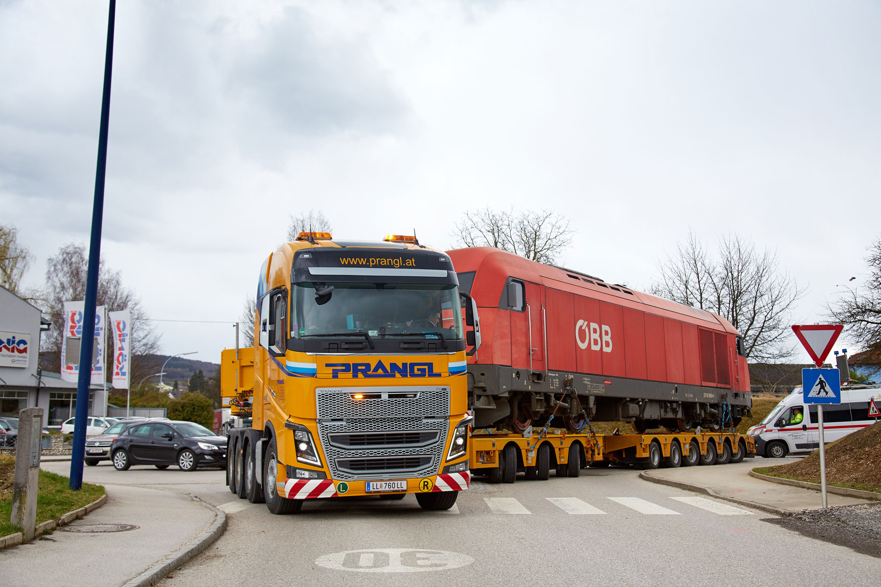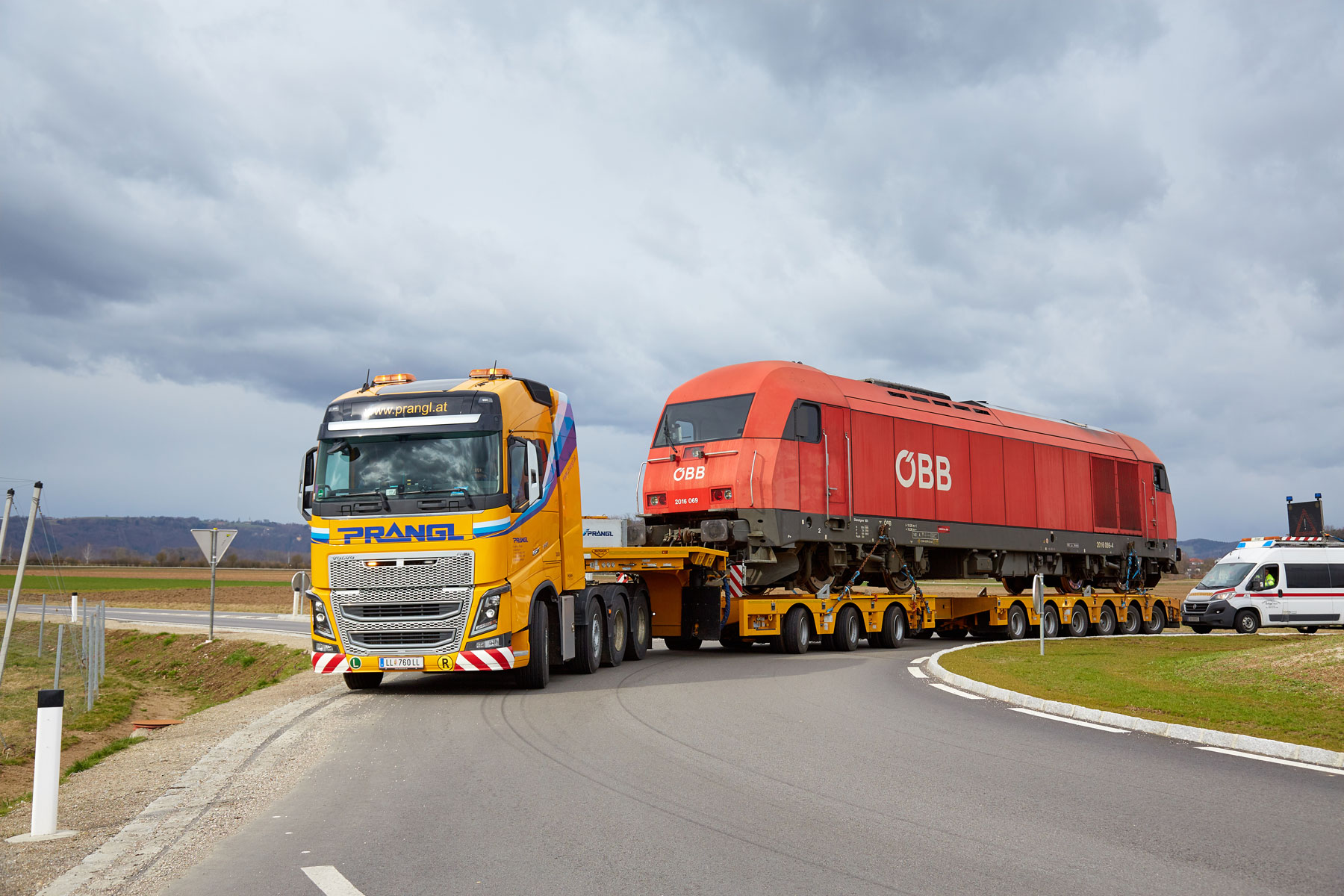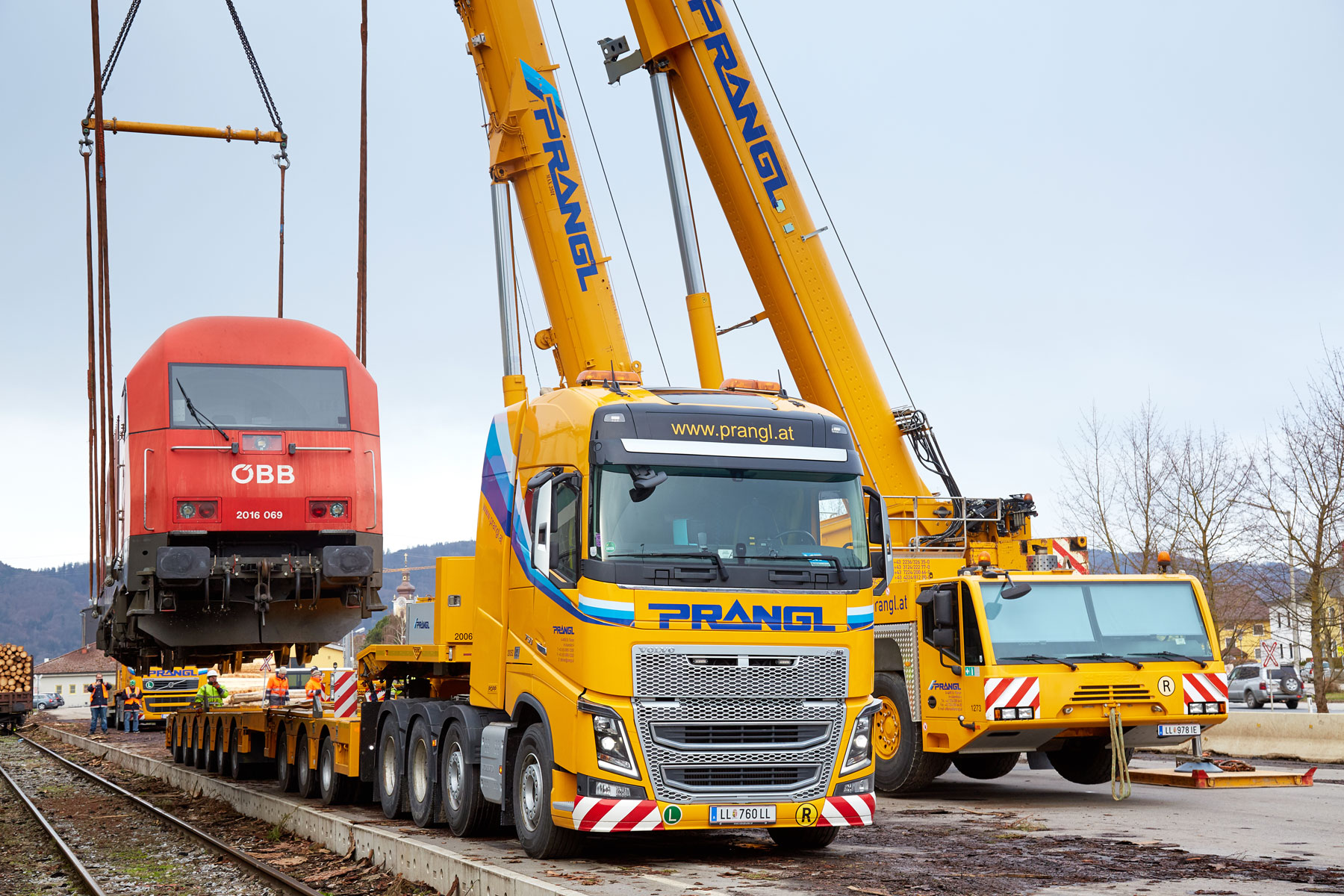 Za savršeno pričvršćivanje tereta izradili smo posebni transportni uređaj, koji je posebno pričvršćen na prikolicu. S ovim uređajem i u budućnosti ćemo moći nastaviti obavljati prijevoze kompozicija za uske kolosijeke ÖBB po austrijskim cestama. Osim tehničkih priprema, neizbježno je bilo i detaljno planiranje rute, budući da se nekim kružnim raskrižjima i semaforima zbog tereta tih dimenzija trebalo pristupiti iznimno precizno. Zbog detaljnog preliminarnog planiranja i kvalificiranih stručnjaka tvrtke Prangl bilo je moguće izbjeći neke od skupih prometnih mjera.