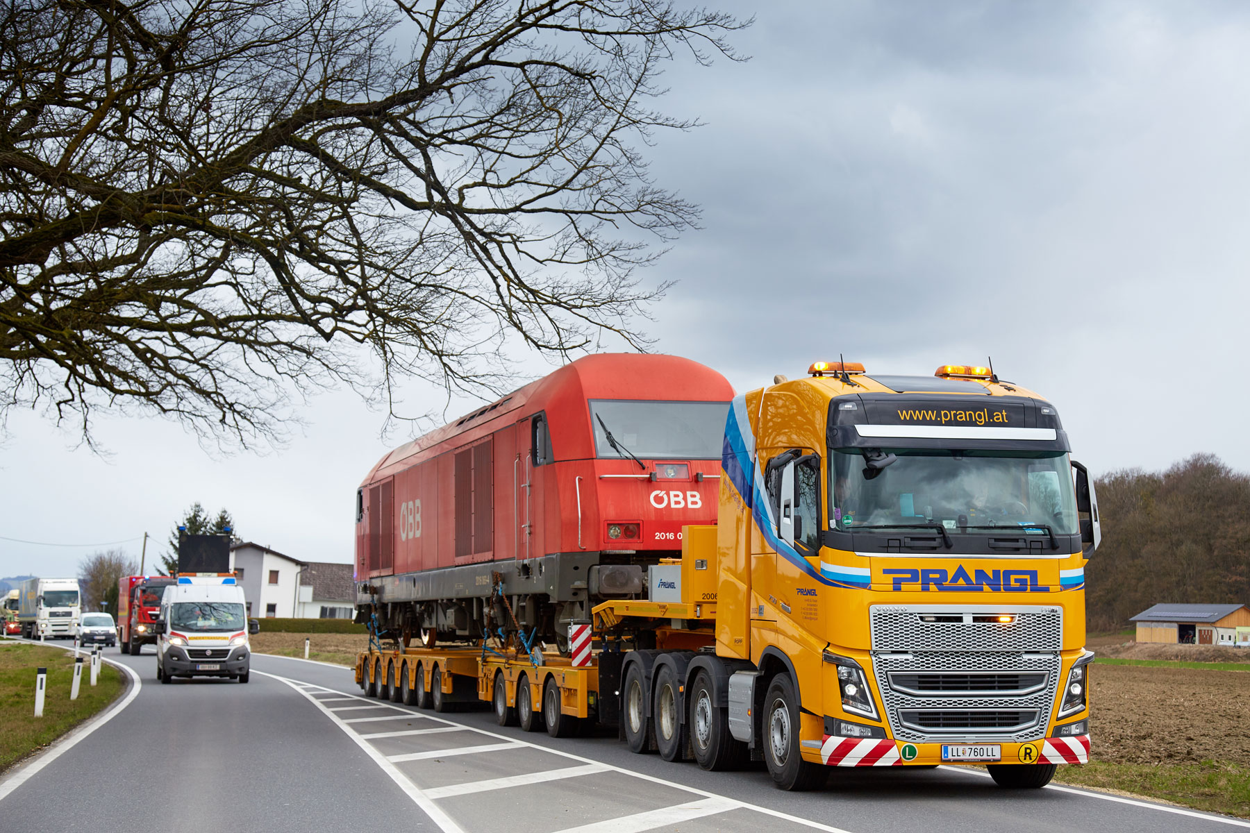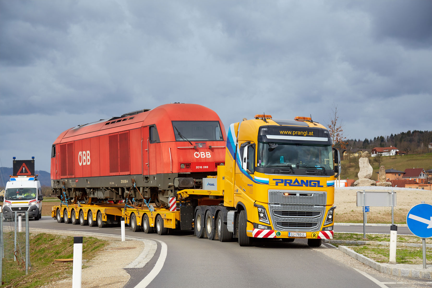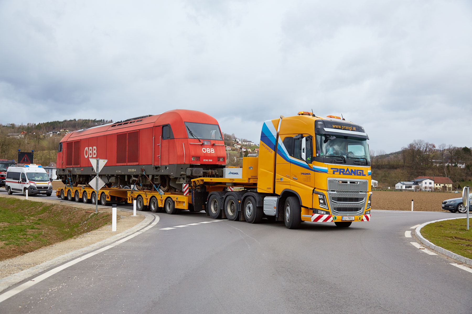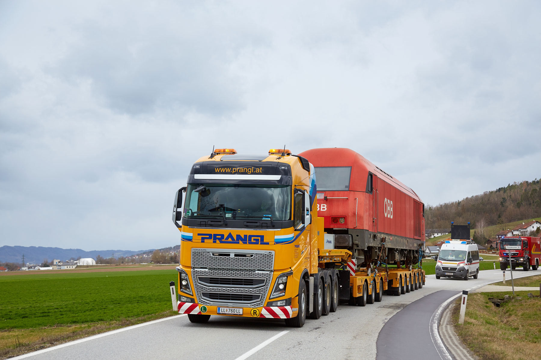 Za savršeno pričvršćivanje tereta izradili smo posebni transportni uređaj, koji je posebno pričvršćen na prikolicu. S ovim uređajem i u budućnosti ćemo moći nastaviti obavljati prijevoze kompozicija za uske kolosijeke ÖBB po austrijskim cestama. Osim tehničkih priprema, neizbježno je bilo i detaljno planiranje rute, budući da se nekim kružnim raskrižjima i semaforima zbog tereta tih dimenzija trebalo pristupiti iznimno precizno. Zbog detaljnog preliminarnog planiranja i kvalificiranih stručnjaka tvrtke Prangl bilo je moguće izbjeći neke od skupih prometnih mjera.