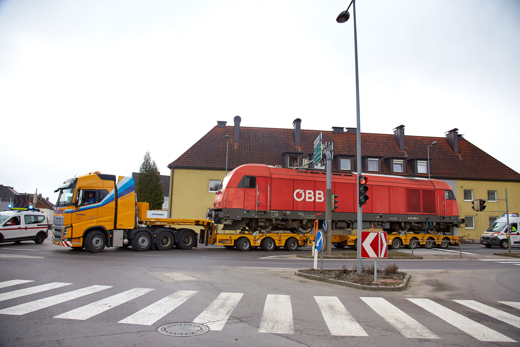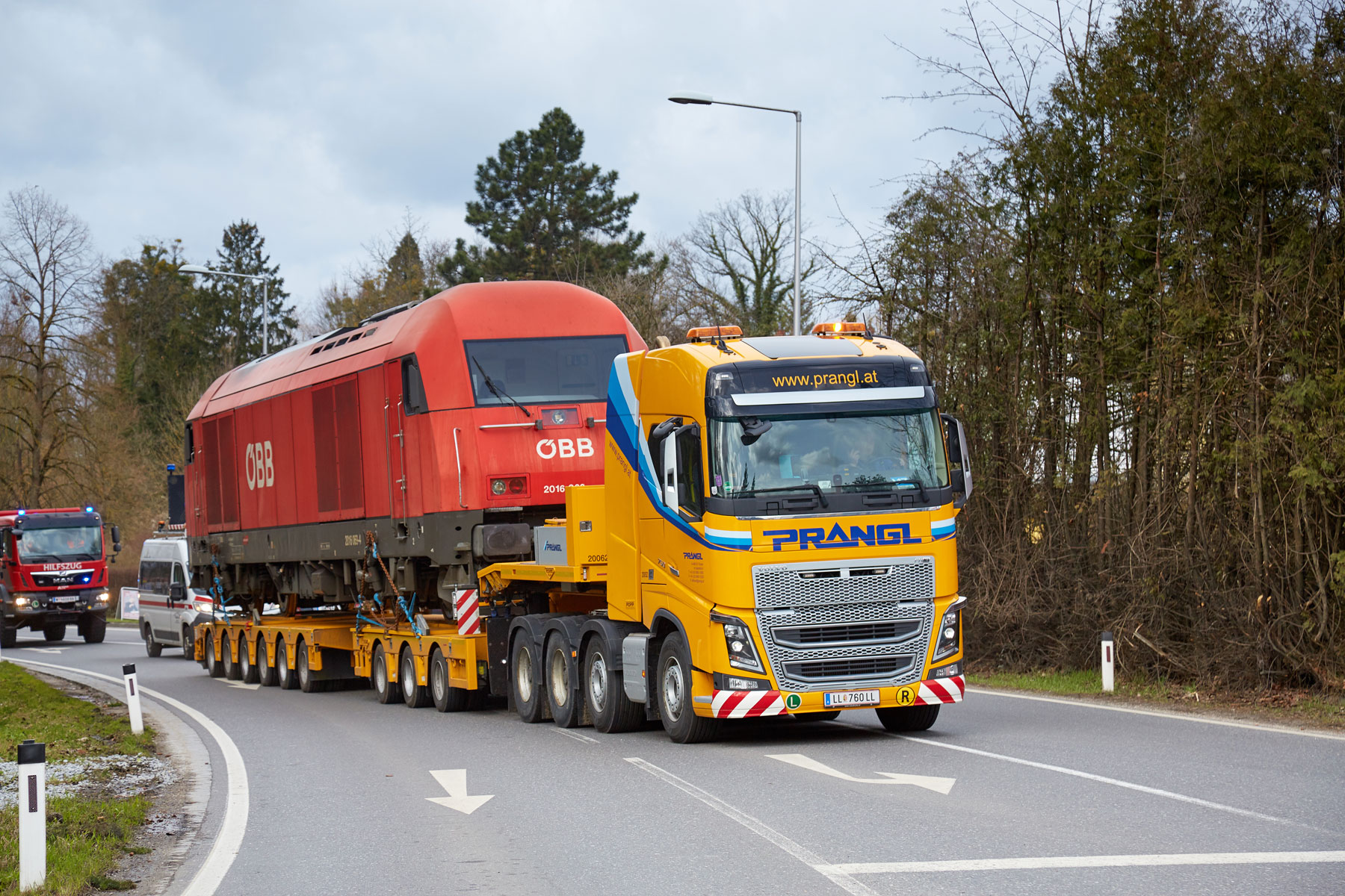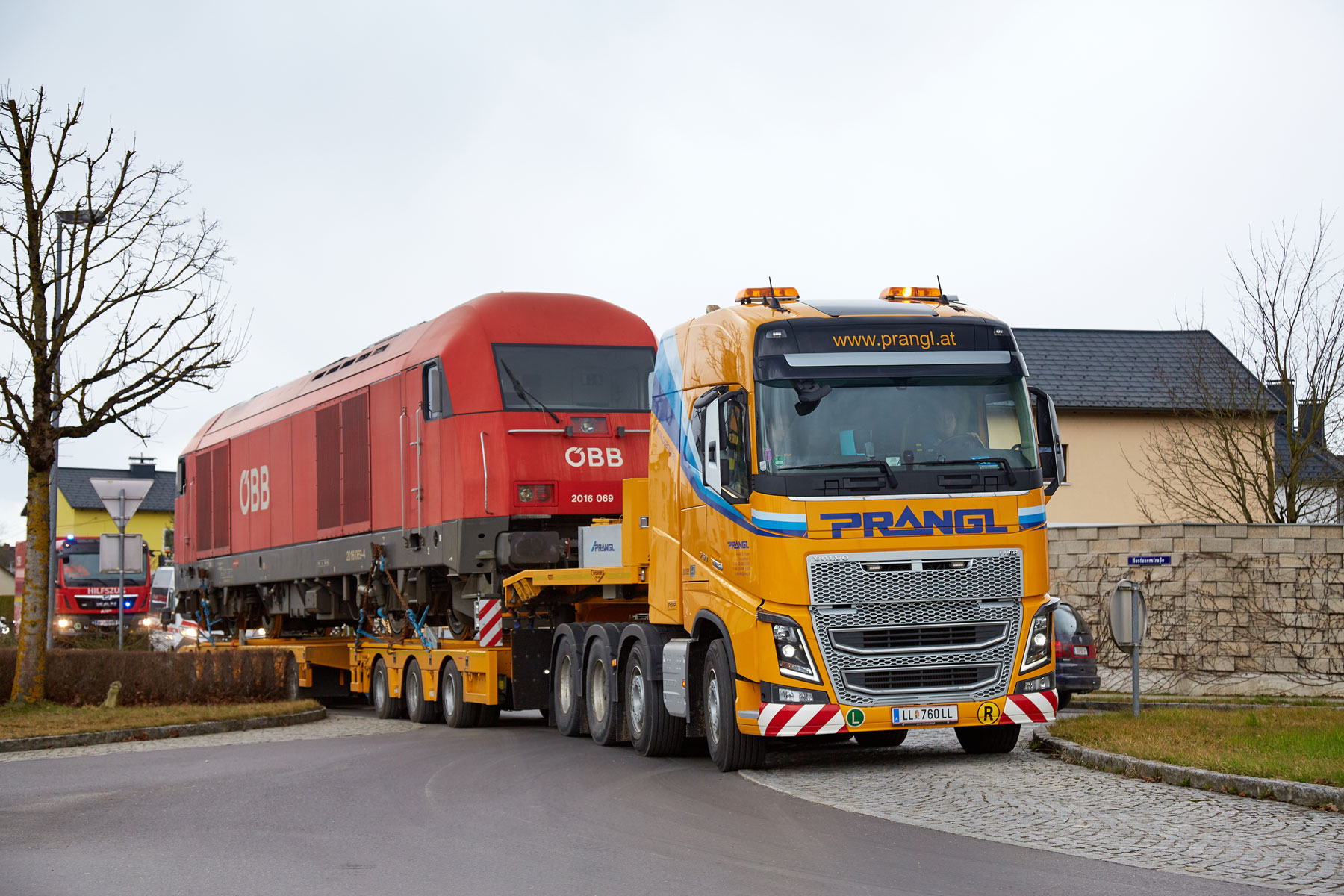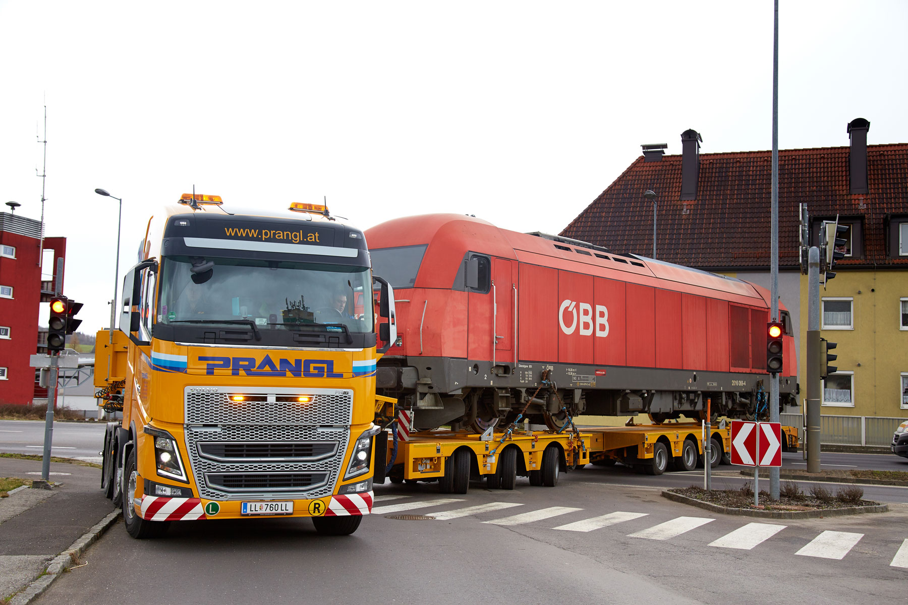 Zbog rušenja željezničkog mosta u Linzu i posljedičnog nedostatka željezničke mreže do Mühlkreisa bilo je potrebno po cesti prevesti lokomotivu koja teži 80 tona - na kolodvoru u Ottensheimu je korištena kao mjerno vozilo. Pošto smo stručnjaci za prijevoz tračnih vozila, upravo je to bio pravi posao za tvrtku Prangl.