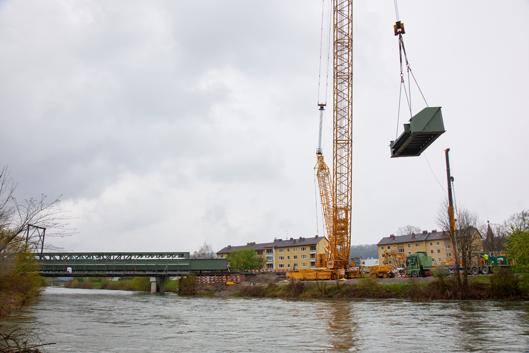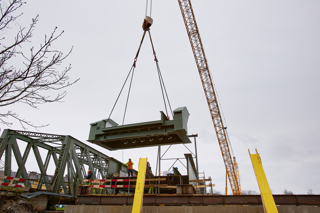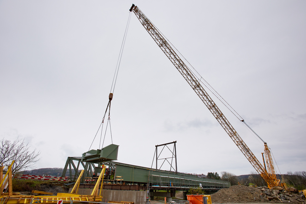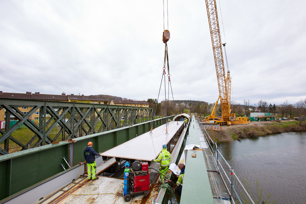 Dizalica s rešetkastom granom dovela je dijelove rešetkastog mosta (težine od nekoliko tona) u položaj prema planu, gdje su potom zavareni i sastavljeni. Dio po dio, most se sastavljao i sa svakim dijelom rastao. Nositelje realizacije projekta nisu mogle zaustaviti ni sve poteškoće koje su se pojavile prije toga, ni iznenadni "nastup zime" koji je nastupio krajem ožujka - što je naravno dodatno otežalo posao. Uzoran timski duh osigurao je da je ovaj zahtjevan projekt završen na najveće zadovoljstvo svih uključenih strana.