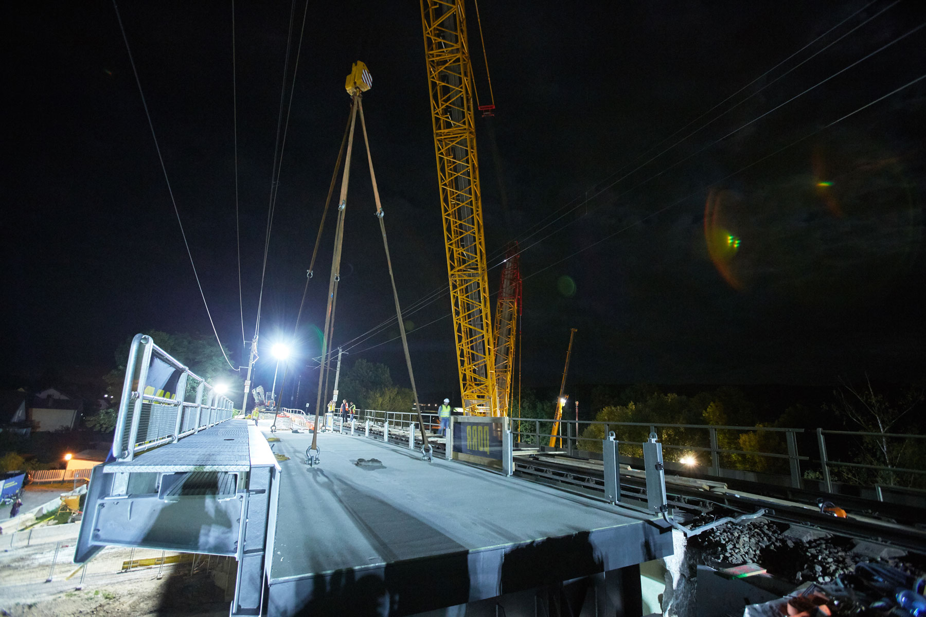 Precizno planiranje i veliko iskustvo tima Prangl osiguralo je da se posao odvijao bez problema: stari su dijelovi uspješno iskopani, a novi, 54 tone teški i 26 metara dugački čelični elementi precizno su podignuti. Tvrtka Prangl se još jednom uspješno pokazala kao pravi 'specijalist za mostove'.