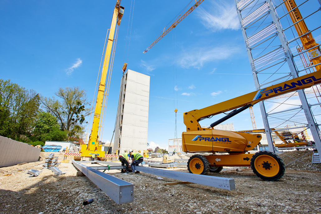 Dodatne radne platforme (teleskopske radne platforme s dosegom od 28 metara, škaraste radne platforme s radnom visinom od 6 metara), teleskopski viličar (nosivosti 2,5 tone i teleskopske dužine 6 metara) te zglobna radna platforma odlično su podržavali veliki kran. Teleskopske radne platforme koristile su se za montažne radove na visini, primjerice pri pričvršćivanju fasadnih elemenata ili ugradnji kućanske tehnike. Škaraste radne platforme bile su namijenjene radovima na manjim visinama, poput postavljanja instalacija ili montažnih radova na stropu. Na međukatnim etažama male i lagane škaraste radne platforme oduševile su svojom kompaktnom konstrukcijom i okretnosti.