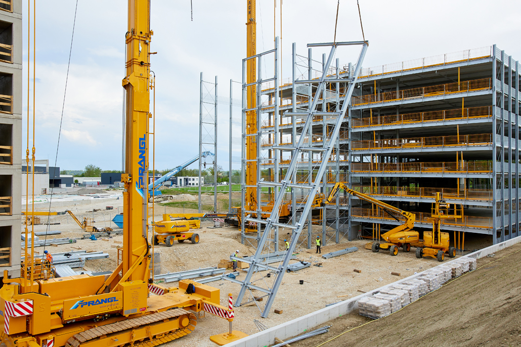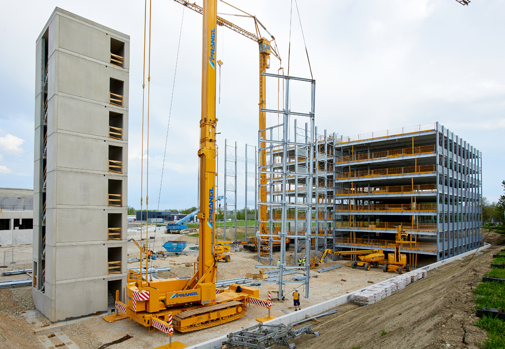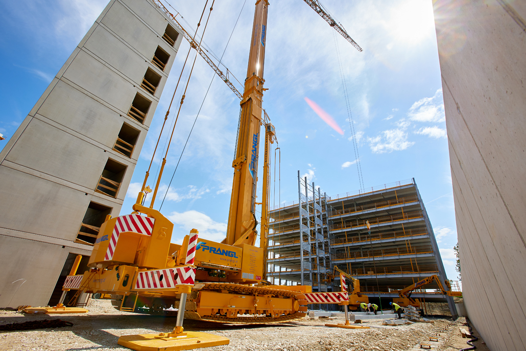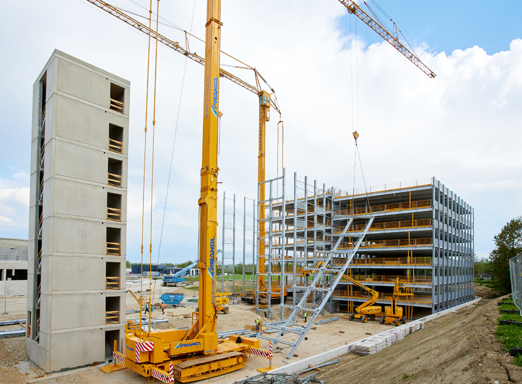 Pažljivo odabranom kombinacijom strojeva omogućeno je nesmetano odvijanje svih faza izgradnje parkirne garaže. Za Pranglov tim to je predstavljalo logistički zahtjevan zadatak, budući da je veliki građevinski kran trebalo fleksibilno premještati unutar ograničenog prostora i tijekom samih građevinskih radova – bez potrebe za njegovim rastavljanjem. Spoj visoke nosivosti i mobilnosti krana pokazao se kao odlučujući faktor uspjeha. Od ovako uspješno razvijenog koncepta imao je koristi i investitor, jer je izgradnja napredovala brzo i bez zastoja. Zahvaljujući skladnoj suradnji, Prangl je s razlogom mogao očekivati i nova buduća angažiranja.