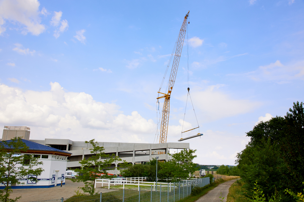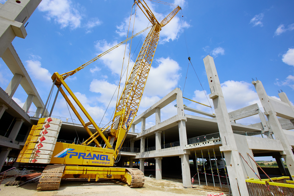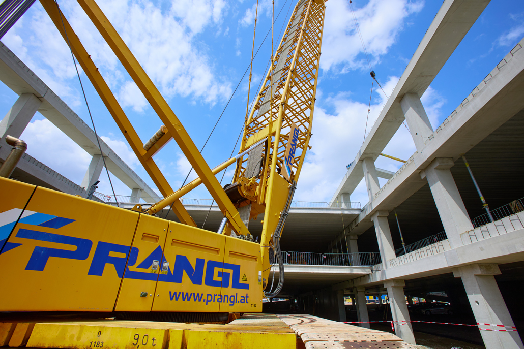 Prangl je angažiran za zanimljiv građevinski projekt na sjeveru Beča: Amazonov logistički centar u Großebersdorfu proširen je novim parkingom, visokim 14 metara. Rad s dizalom morao se odvijati što je moguće učinkovitije i uz uštedu vremena. Najveći izazov bilo je planiranje zahvata.