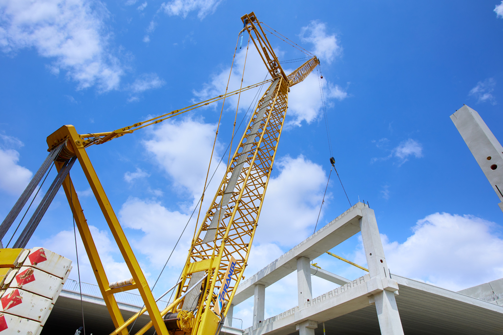 Razvijeni koncept dizanja predviđao je da se gusjenično dizalo kreće samo u središtu zgrade u izgradnji. Nakon montaže i postavljanja (duljine glavne ruke 34 metra i duljine podesive poprečne ruke 38 metara) odvezen je oko 100 metara do centra garaže gdje je započeo s radom. Prvi građevinski dio uključivao je istovar, odnosno postavljanje i montažu stupova koji su težili po 12 tona, bili dugački 11 metara i promjera 0,6 metara.Ovaj odjeljak sastojao se od 4 osi sa po 6 stupaca