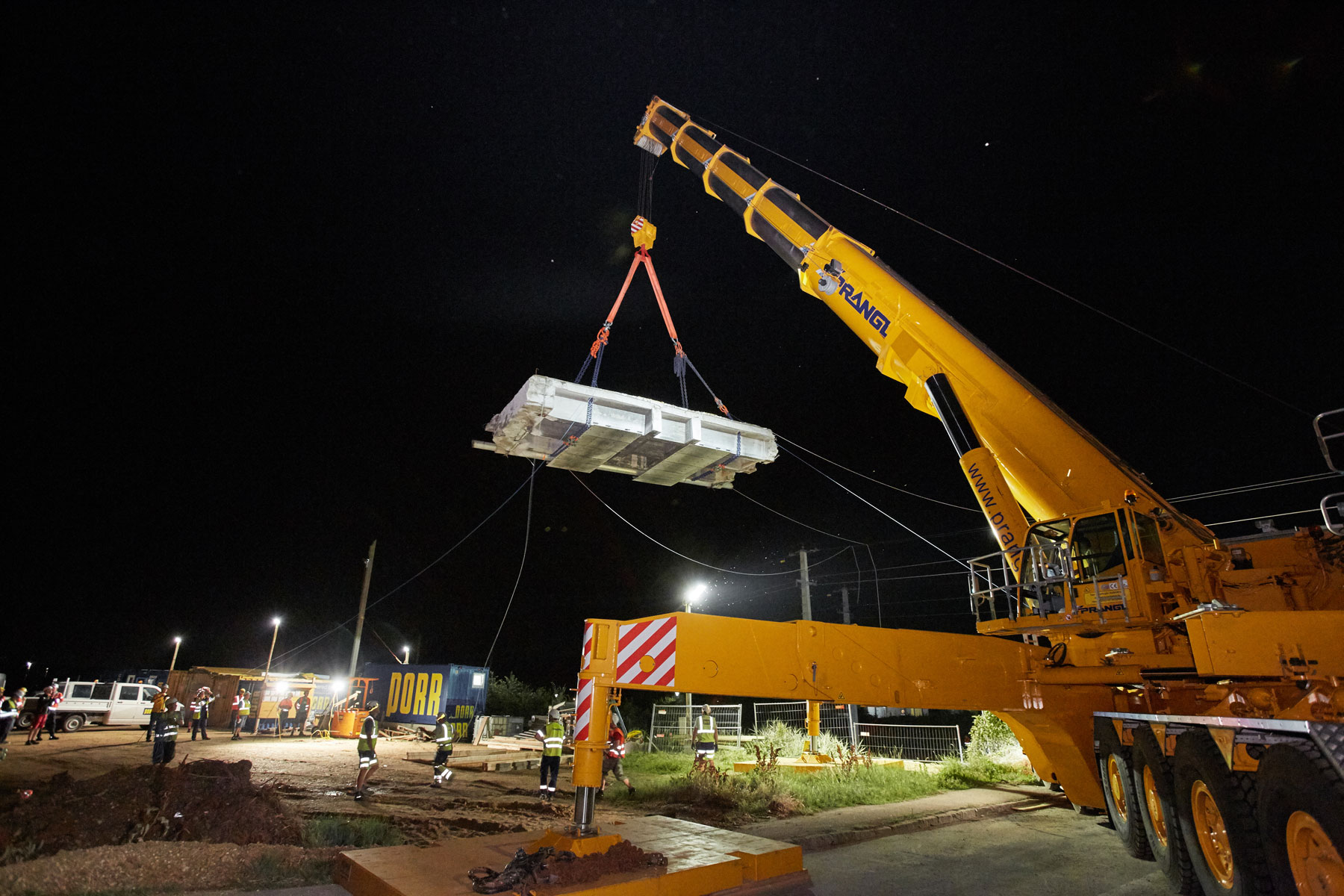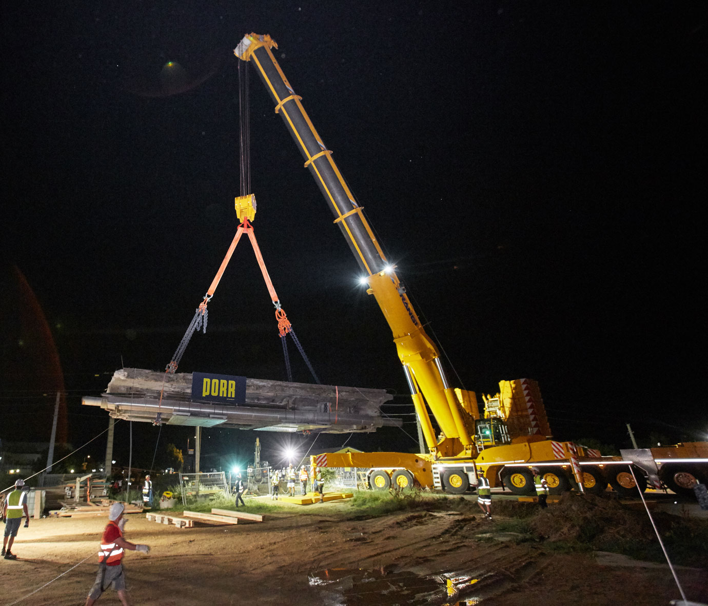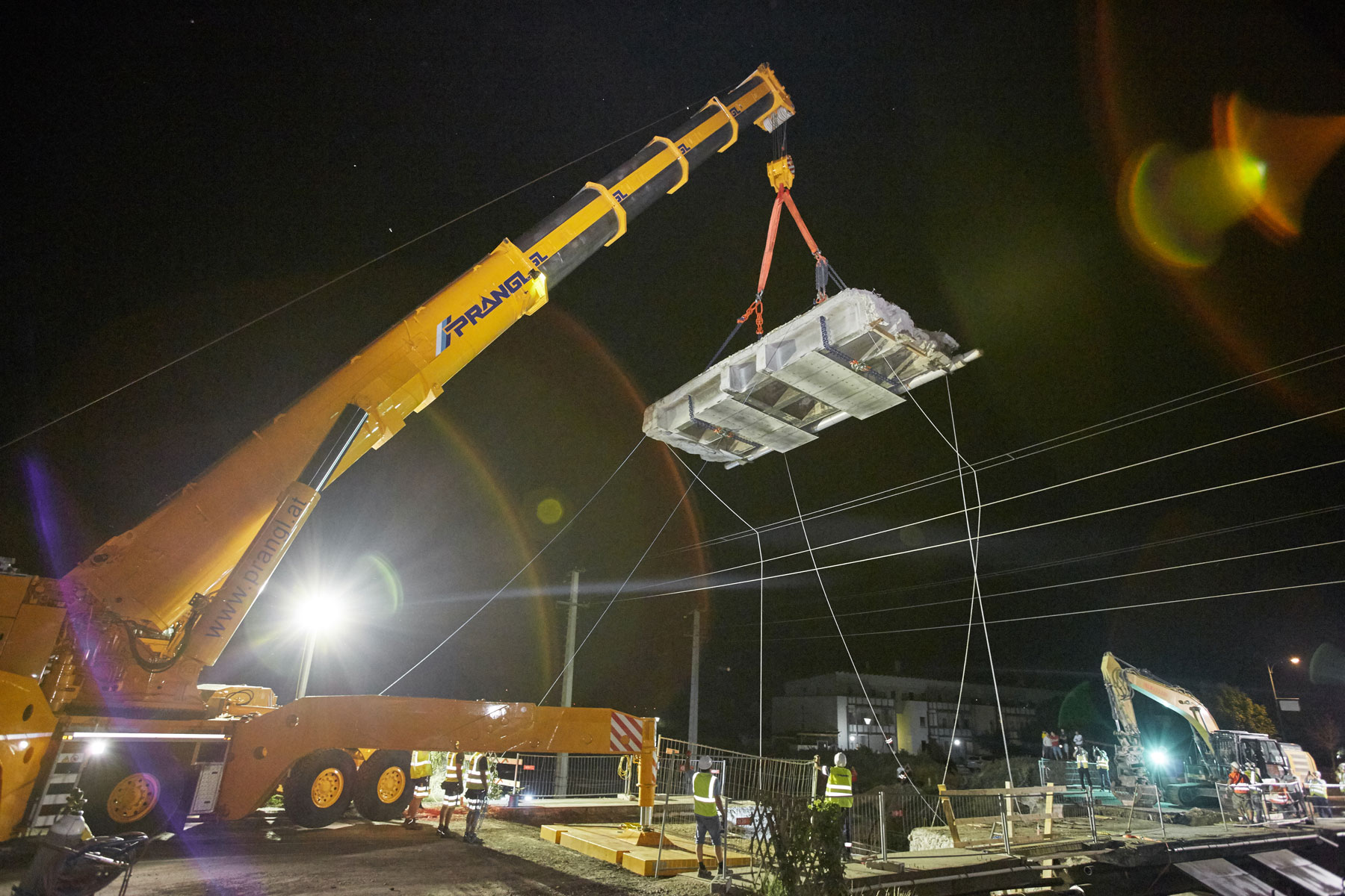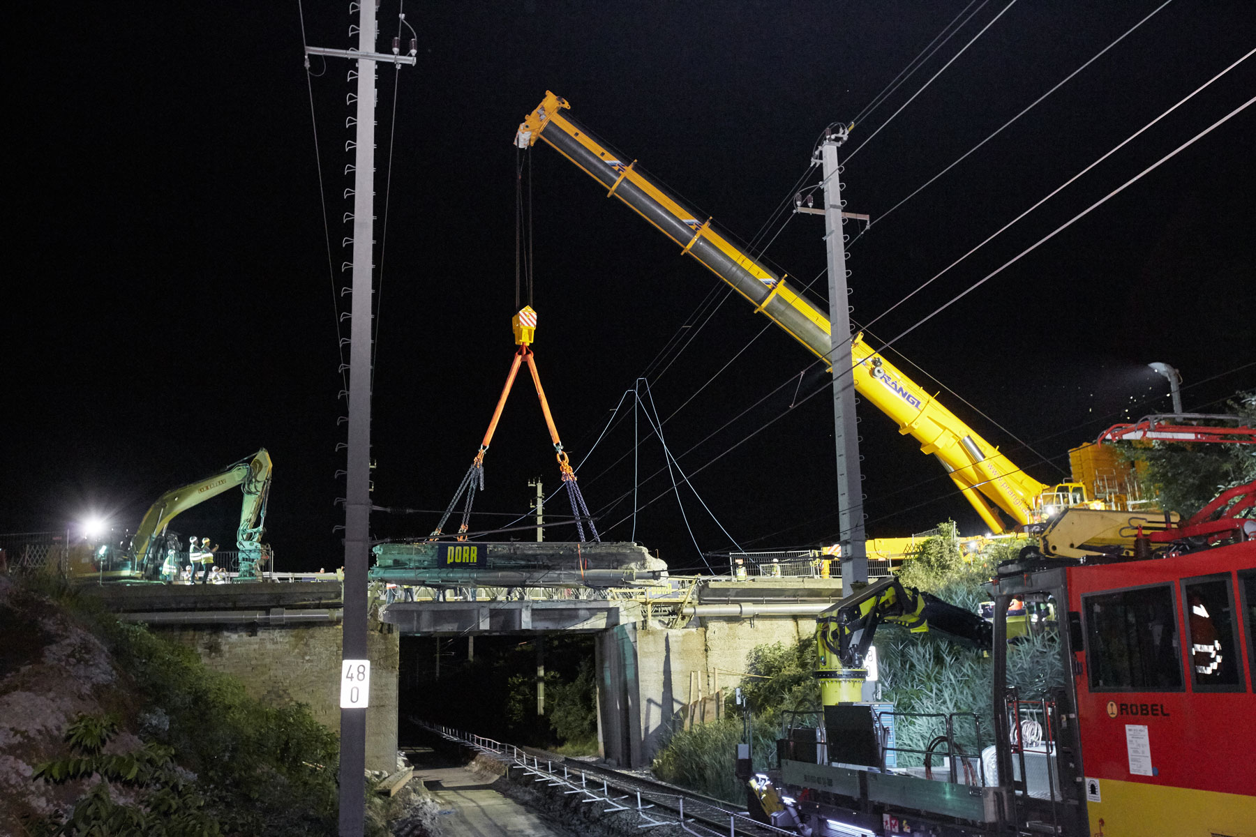 Pošto su pojedini elementi težili čak 95 tona s dužinom od 22 metra, najbolje je rješenje za taj zadatak bila najveća austrijska teleskopska dizalice koja teži 1000 tona. Bilo kojom drugom tehnologijom za podizanje demontaža i pomicanje trajalo bi znatno duže vremena. Zbog strogog rasporeda koji je su odredile austrijske državne željeznice, svaka minuta bila je ogromna dobit. Cjelokupan posao morao se obaviti između 22.00 i 5.00 sati. Samo je u tom razdoblju, naime, pruga bila zatvorena, a sve odgovarajuće linije bez struje.