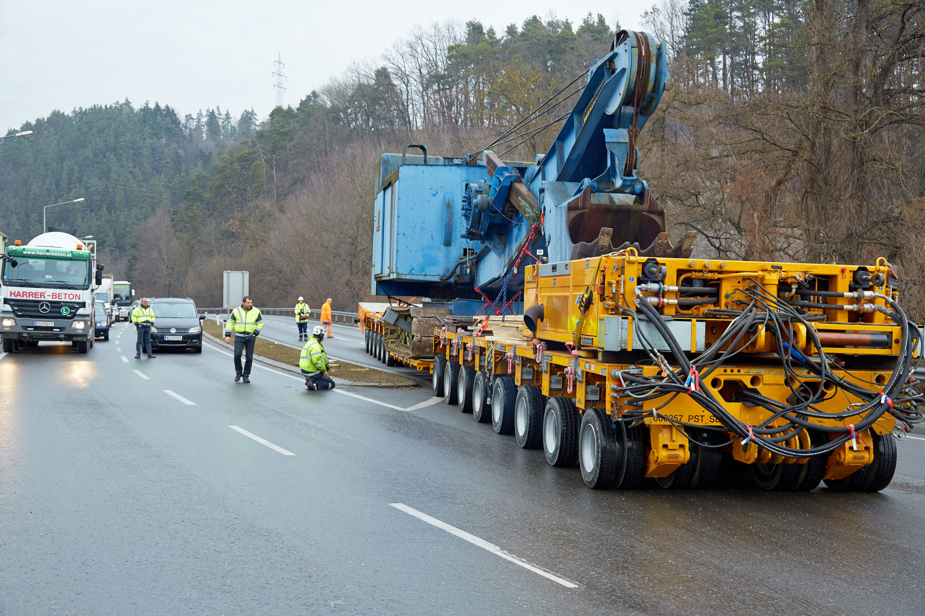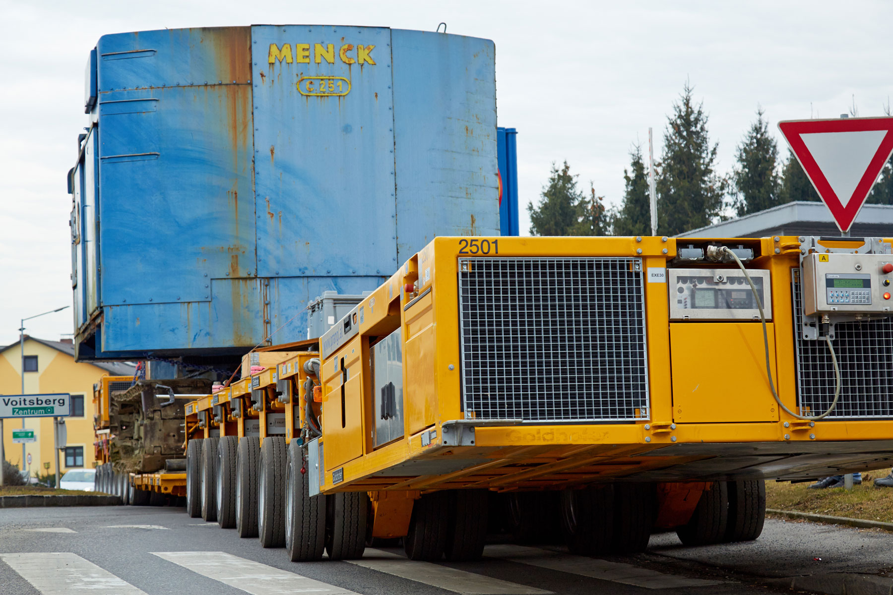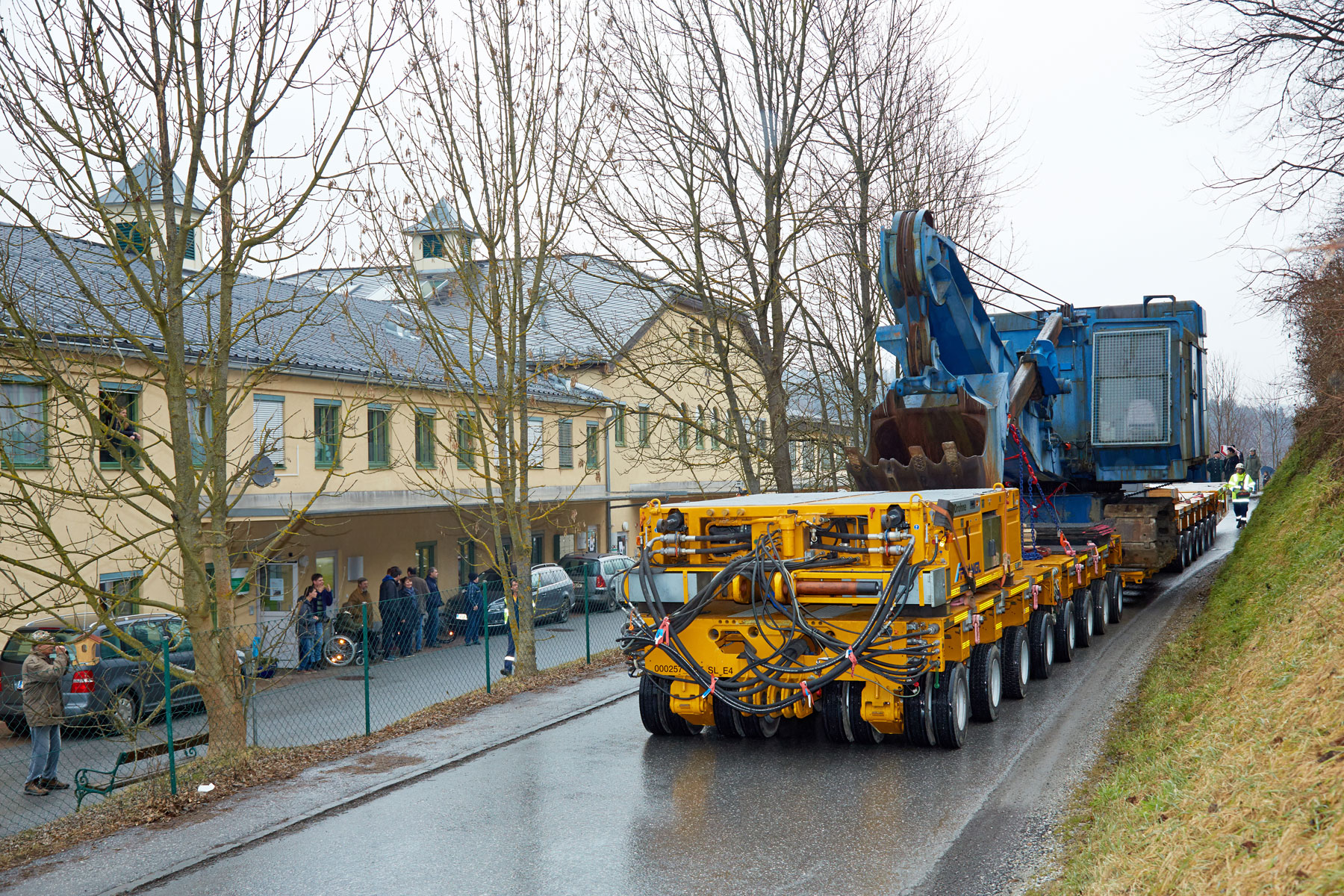 Zbog ograničenog prostora, bager, dug gotovo 17 metara, širok 4,35 metara i visok 4,77 metara, mogao se prevesti samo samohodnim modulima za teške terete. Jedina druga mogućnost - potpuno rastavljanje bagera - nije bila moguća iz razloga izvedivosti i troškova. Kad je prevezen, 14-osovinski modul za teške terete, uključujući bager, dosegao je ukupnu težinu od oko 160 tona. Kompozicija duga 38 metara morala je prevladati brojna uska grla i složene situacije prije nego što se trijumfalna povorka nastavila središtem grada Voitsberg.