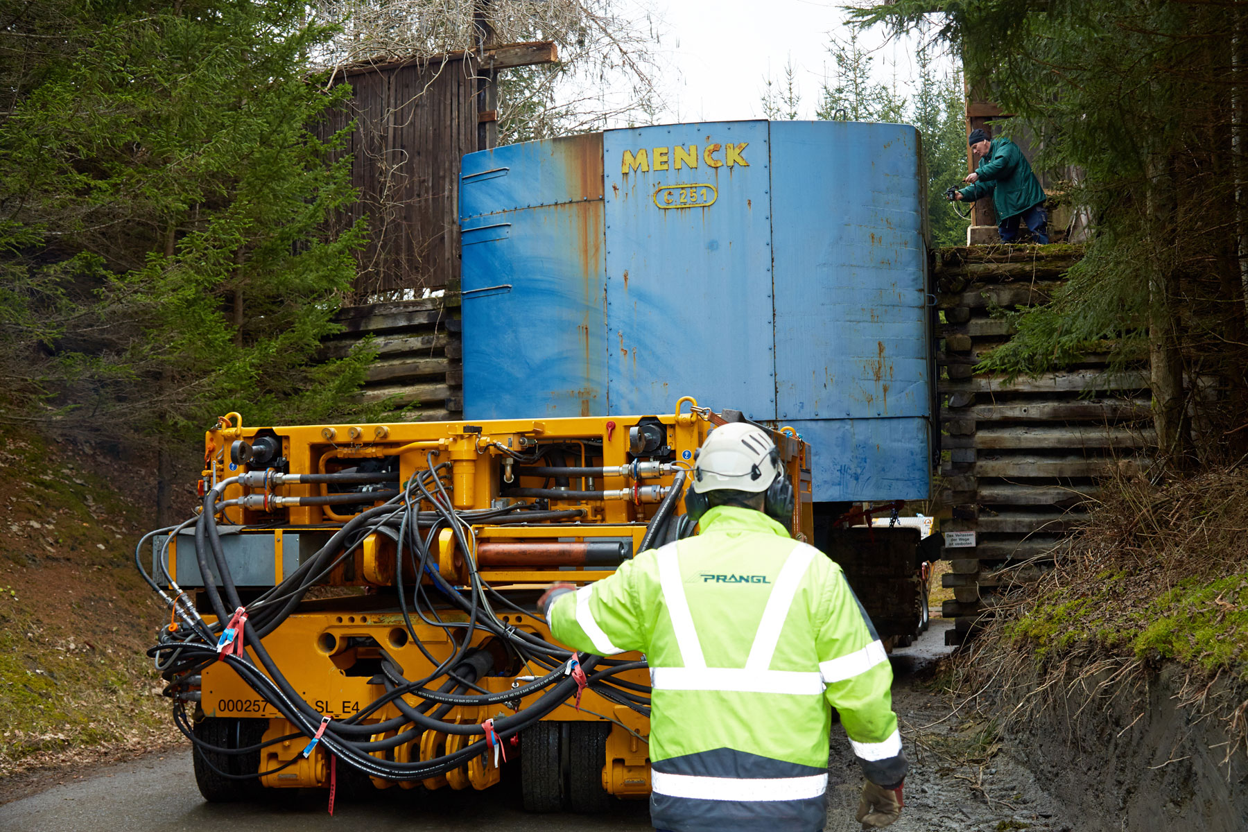Kad bager iz 1959. godine želi pronaći novi dom, to nije uobičajena narudžba. Model Menck stajao je na parkiralištu strelišta Zangtal 13 godina. Povijesni građevinski stroj trebao je pronaći svoje posljednje počivalište u rudarskom muzeju Karlschacht. Za tim tvrtke Prangl izazovno je bilo već samo planiranje operacije.