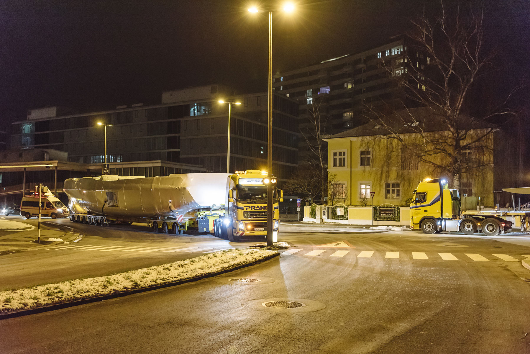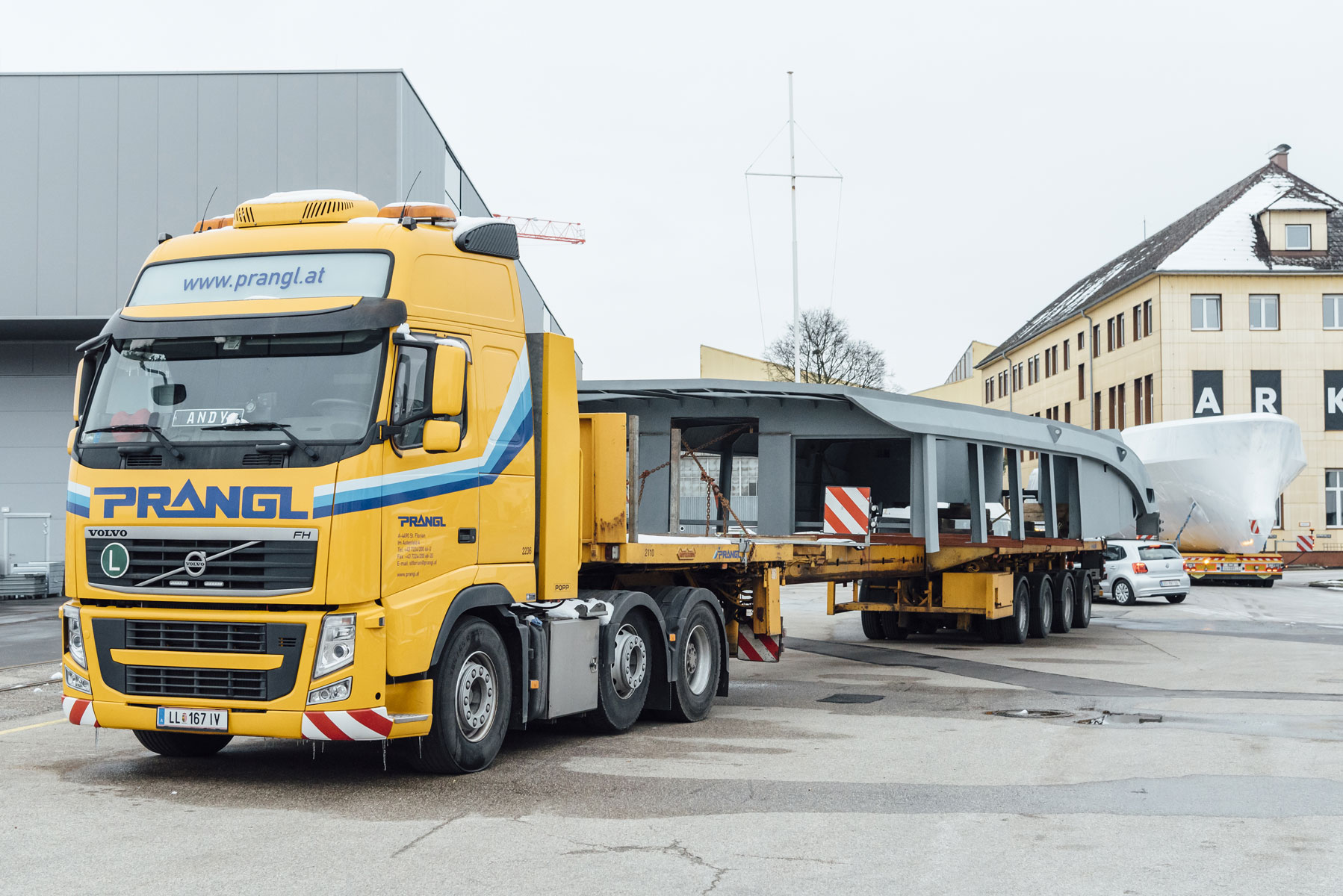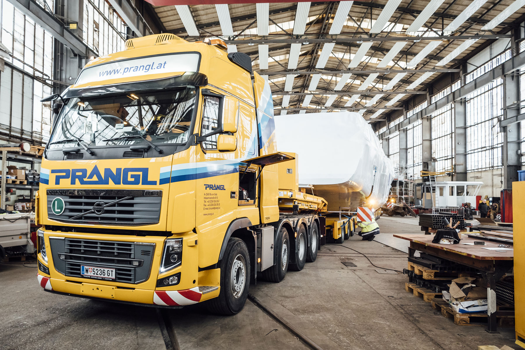 Izletnički brod dug 30 metara koji može prevesti 60 ljudi trebalo je preuzeti iz brodogradilišta u Linzu i prevesti ga u Švicarsku. Zbog veličine i težine broda te velikih logističkih zahtjeva, ovaj su zadatak mogli glatko riješiti samo stručnjaci poput onih iz tvrtke Prangl.