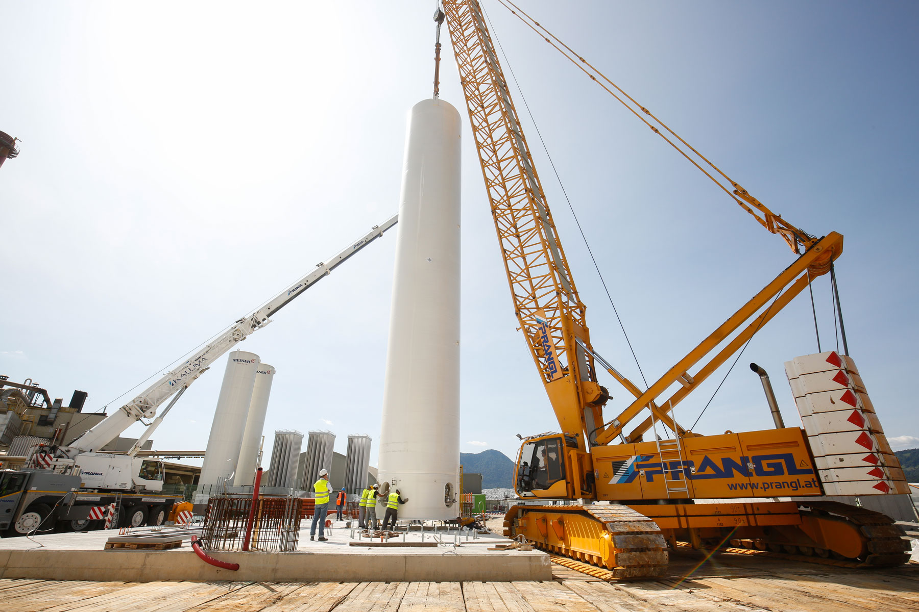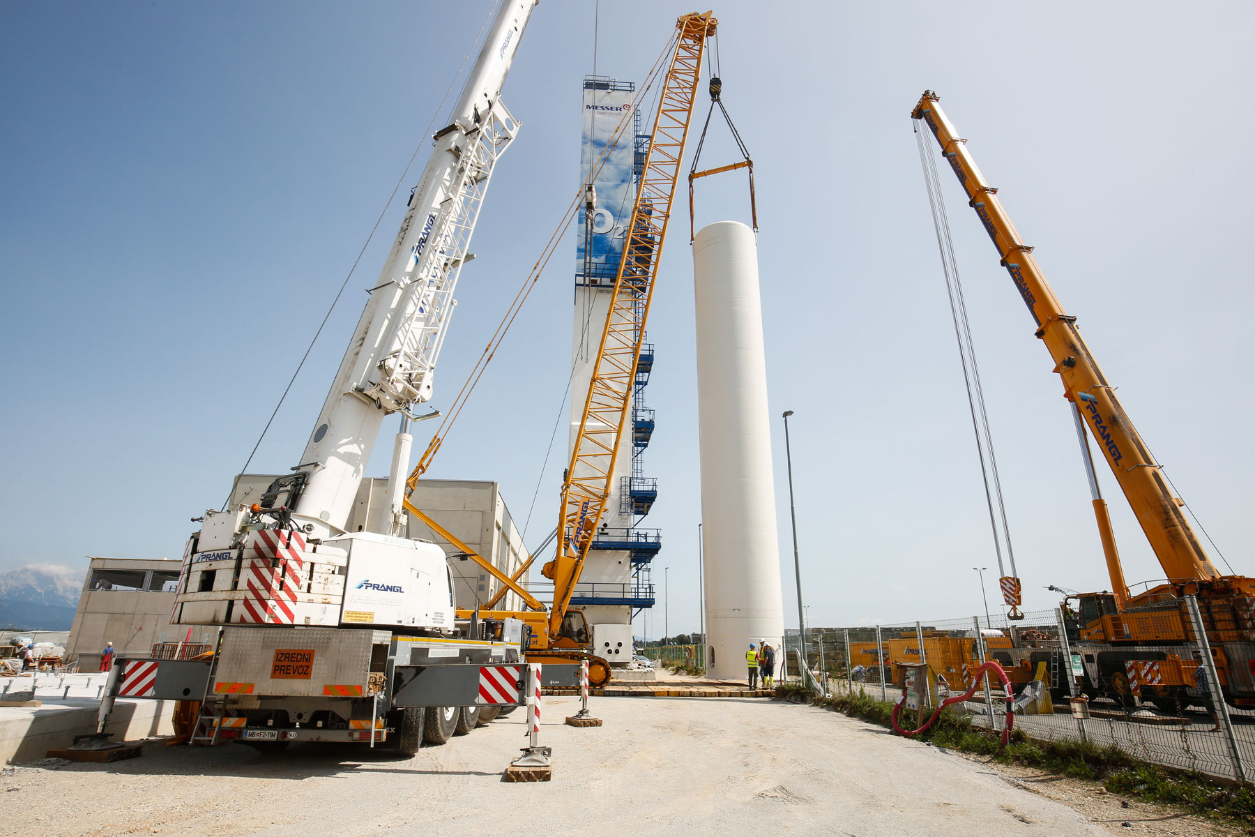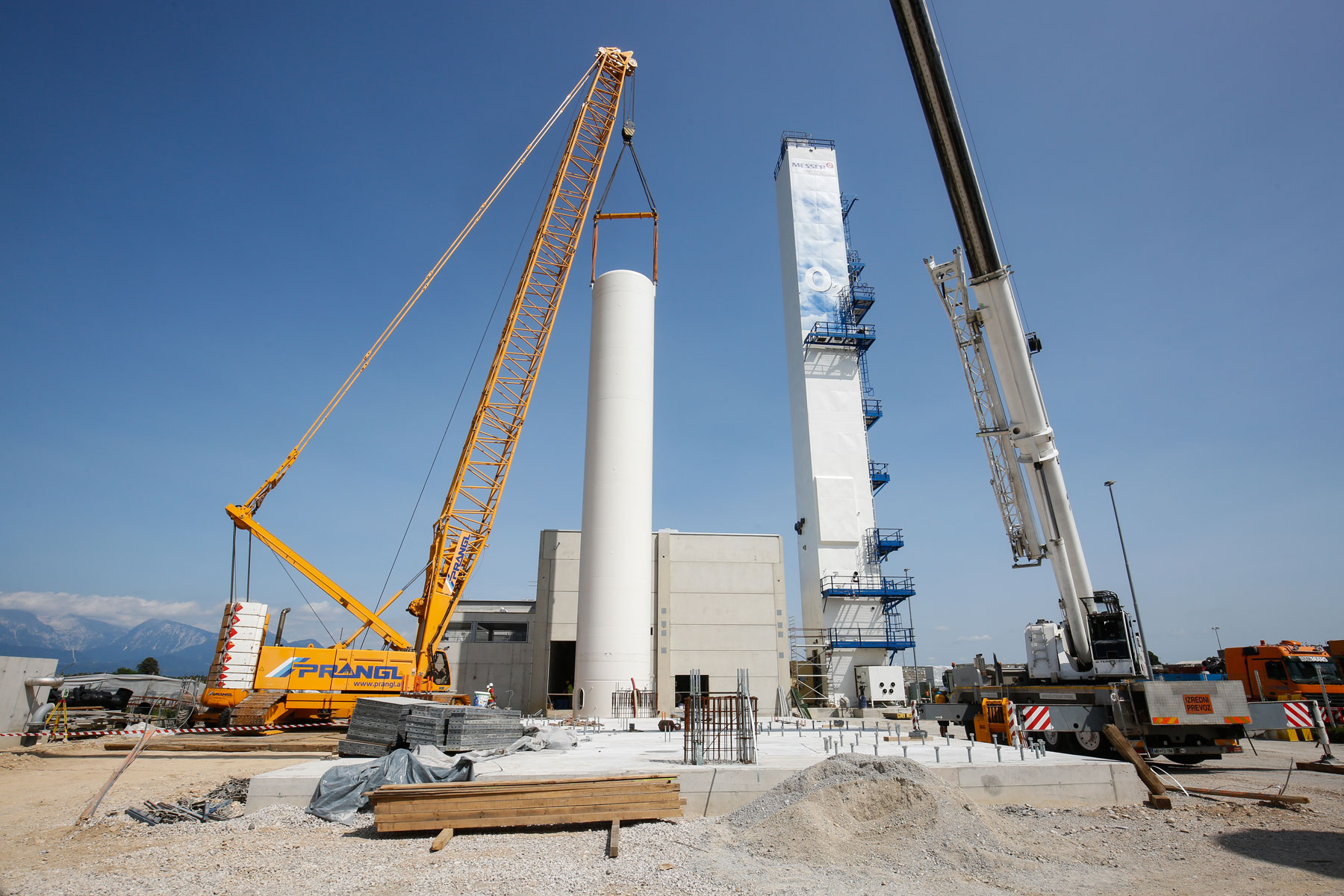 Uz podršku tvrtke Prangl, na površini od oko 10.000 četvornih metara izgrađeno je novo postrojenje za odvajanje zraka za proizvodnju zračnih plinova (kisik, dušik i argon) za medicinsku primjenu, lijekove, tehnologiju zavarivanja, prehrambenu industriju kao i proizvodnju stakla i čelika. Jedan od zadataka ekipe tvrtke Prangl bio je podizanje triju spremnika od 26 metara dužine, od kojih je svaki težio 75 tona.