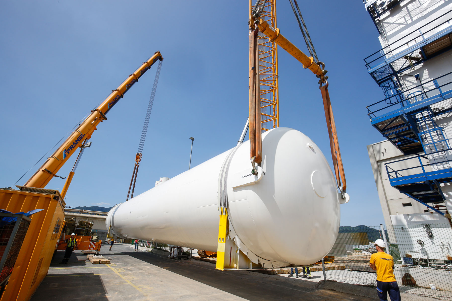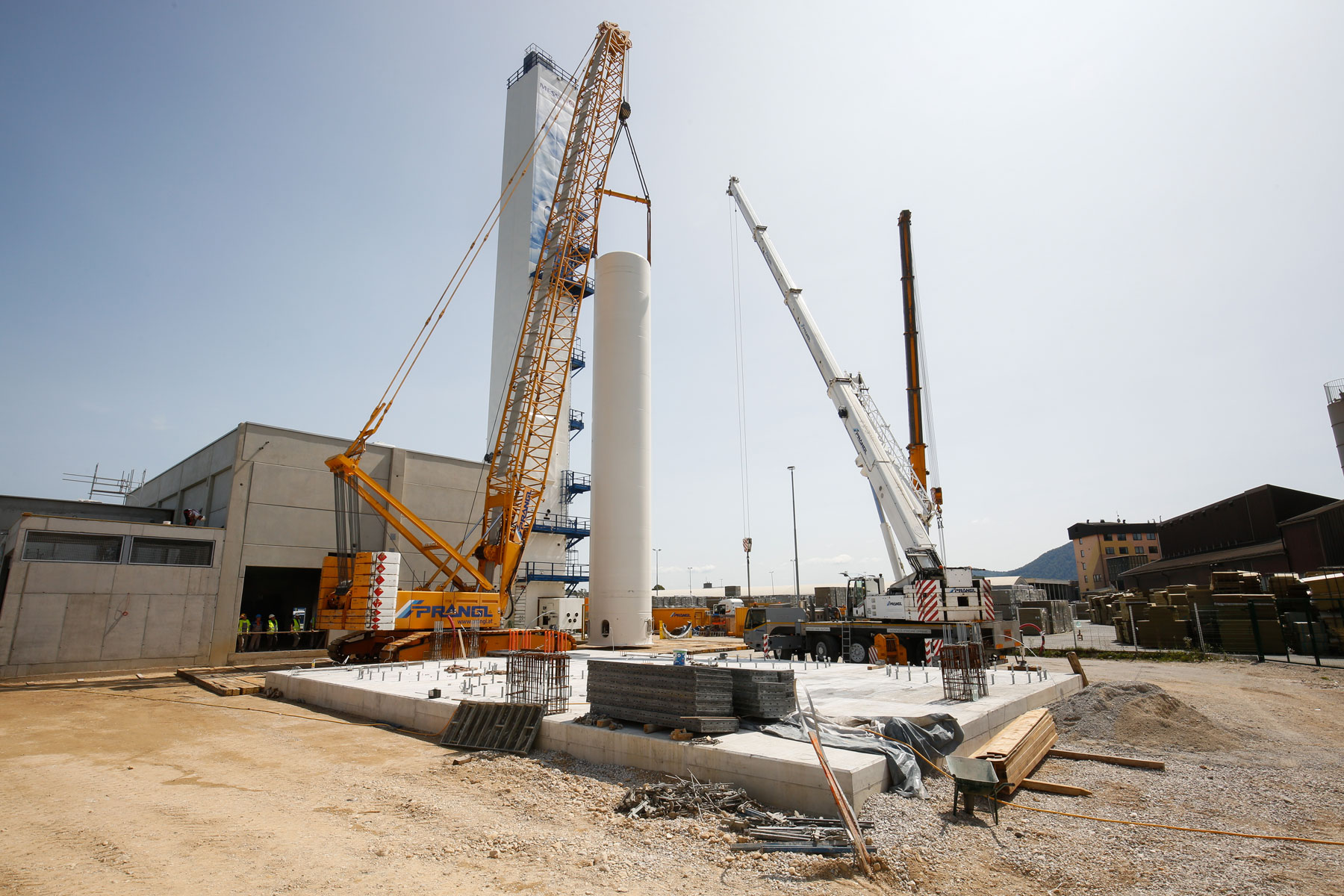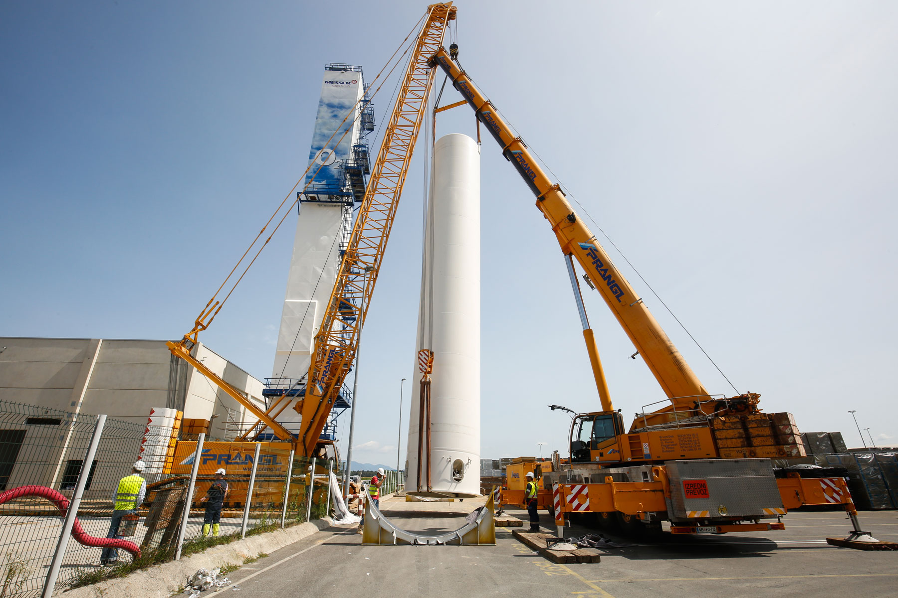 Uz podršku tvrtke Prangl, na površini od oko 10.000 četvornih metara izgrađeno je novo postrojenje za odvajanje zraka za proizvodnju zračnih plinova (kisik, dušik i argon) za medicinsku primjenu, lijekove, tehnologiju zavarivanja, prehrambenu industriju kao i proizvodnju stakla i čelika. Jedan od zadataka ekipe tvrtke Prangl bio je podizanje triju spremnika od 26 metara dužine, od kojih je svaki težio 75 tona.
