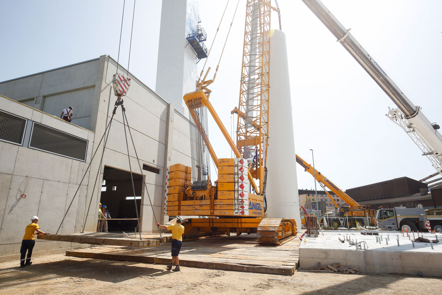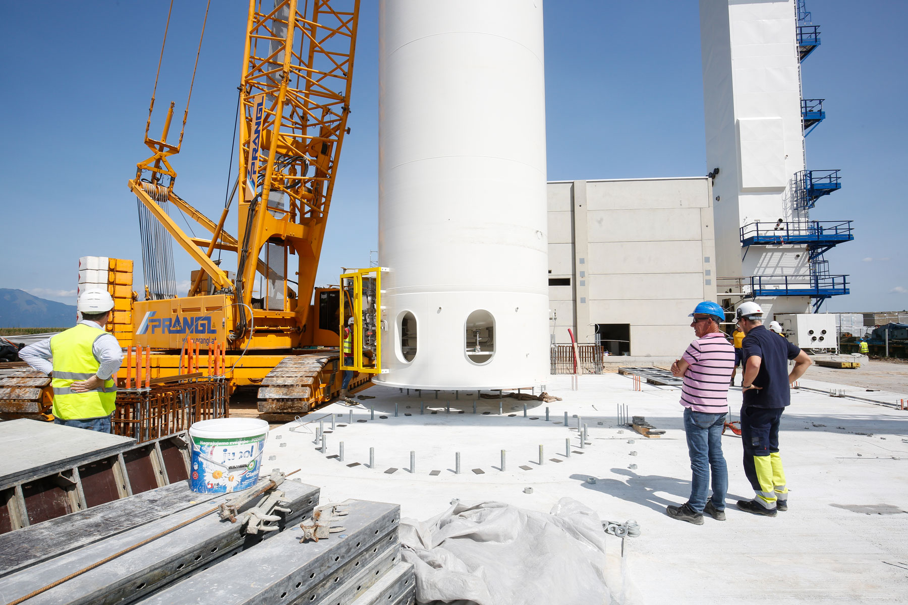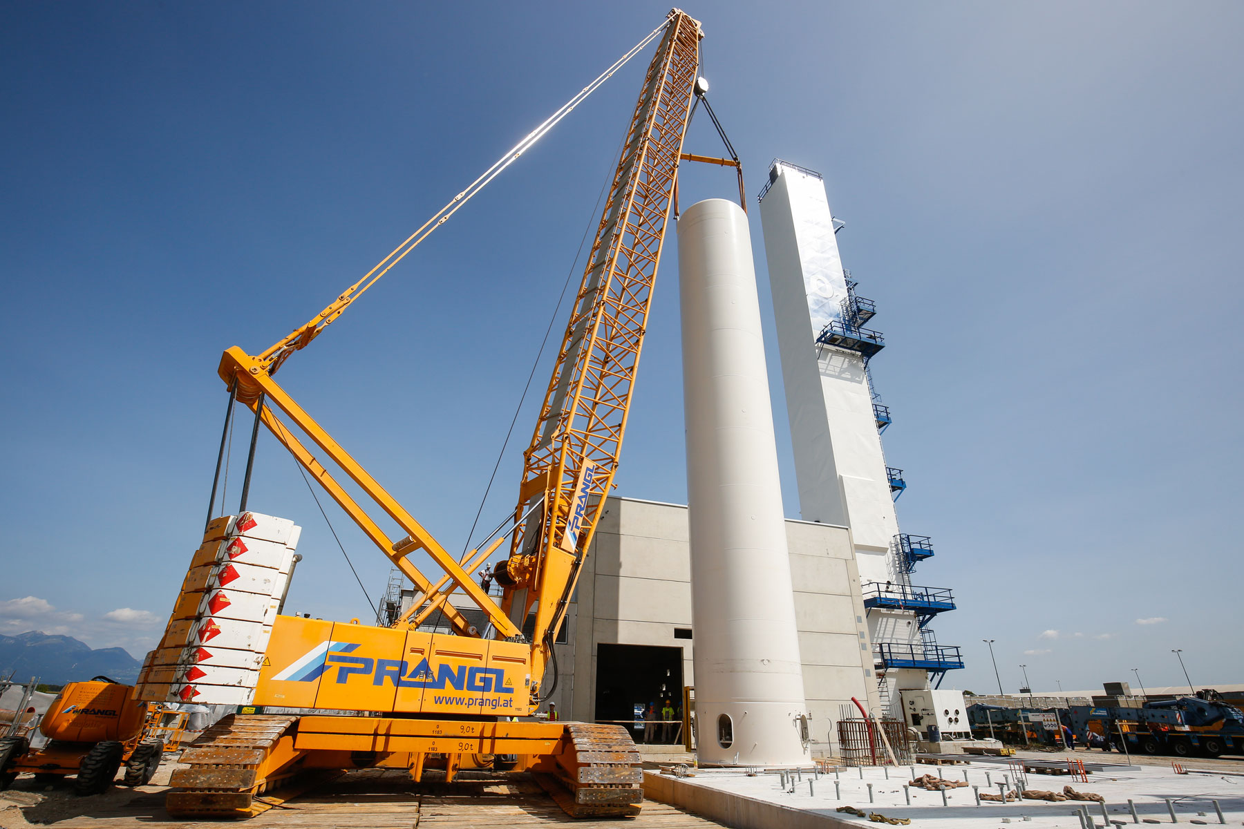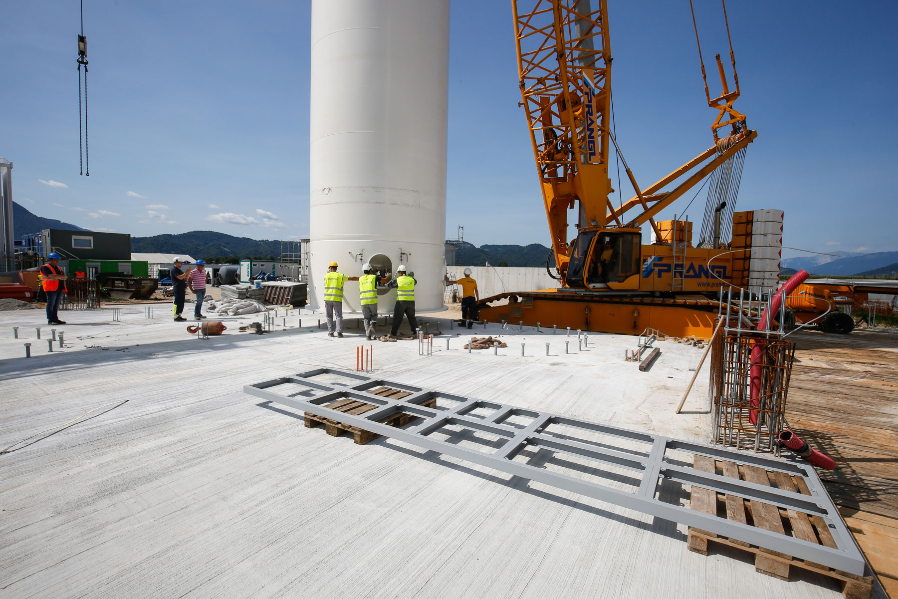 Zbog prostornog ograničenja morali smo naravno unaprijed izraditi točan plan gdje možemo postaviti koju dizalicu. Konačno, najznačajnije je bilo da ne smetamo i ne prekidamo sve druge procese i aktivnosti. Osim toga, stranka je predložila vrlo kratke rokove, koje nikako nismo smjeli prijeći. Zahvaljujući dobroj pripremi cijele ekipe tvrtke Prangl, sva tri spremnika pravovremeno su postavljena na svoje mjesto. Savršena prekogranična suradnja između tvrtke Prangl Slovenija i tvrtke Prangl Austrija također pokazuje da se uvijek možete pouzdati u kvalitetu žute boje - bez obzira na zemlju.