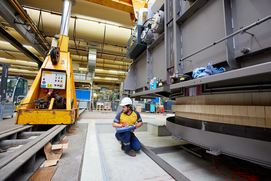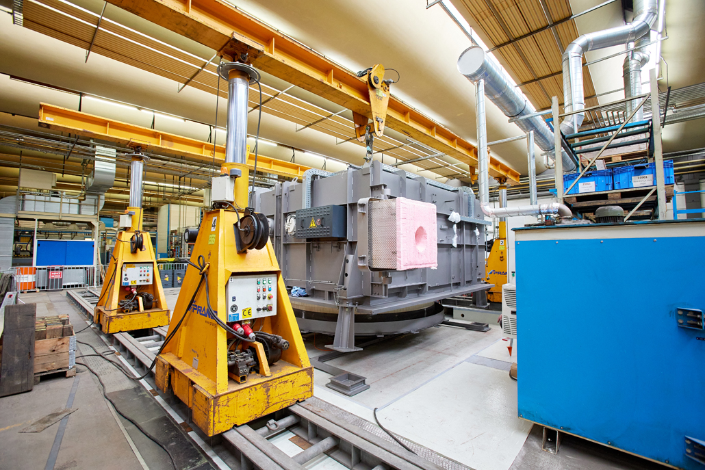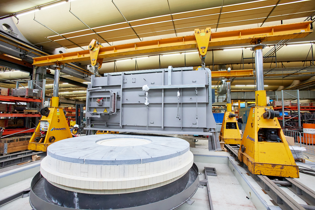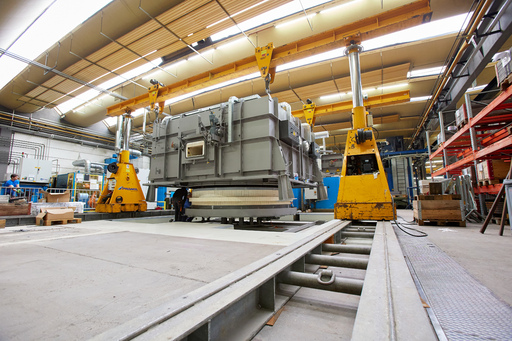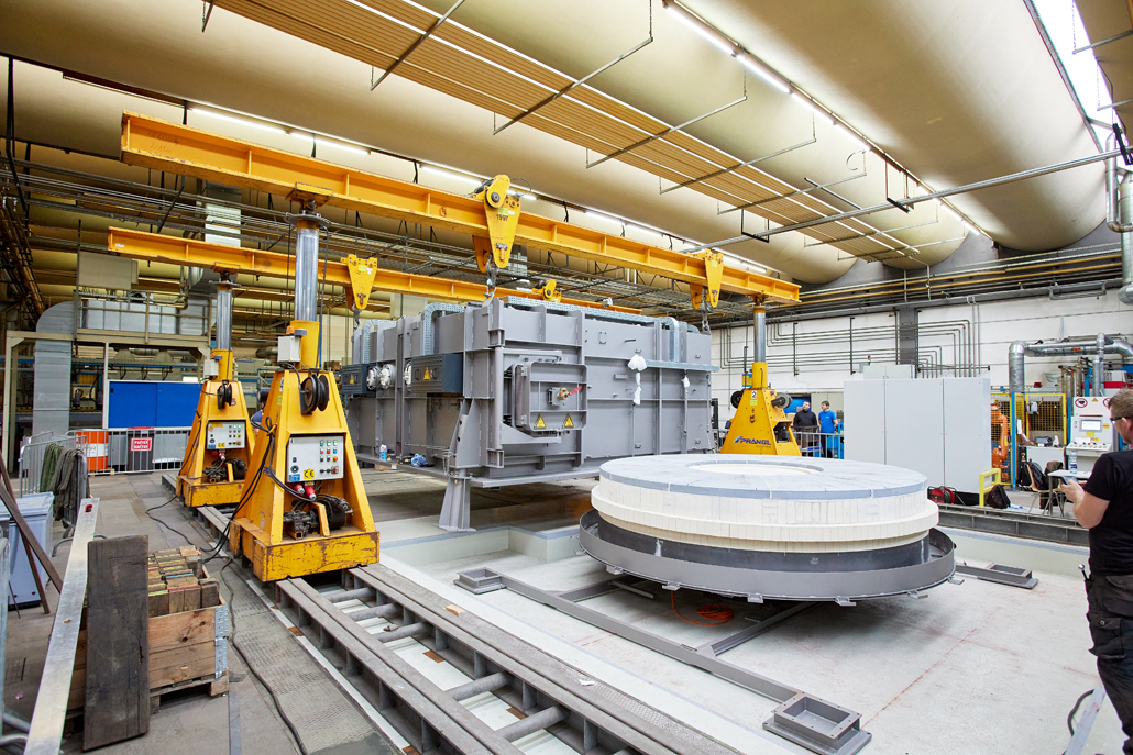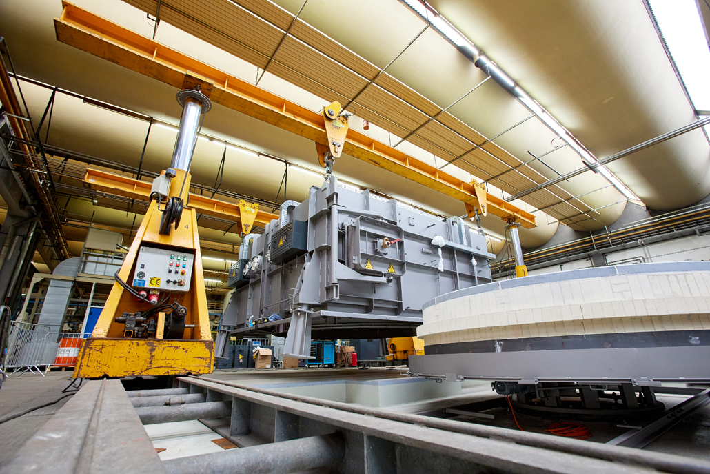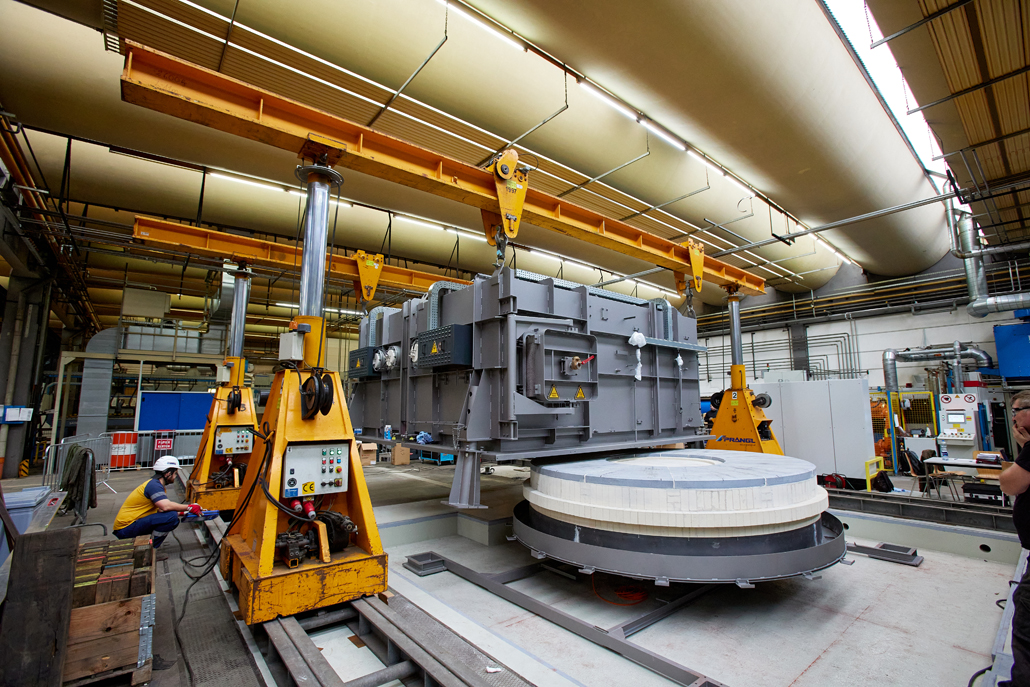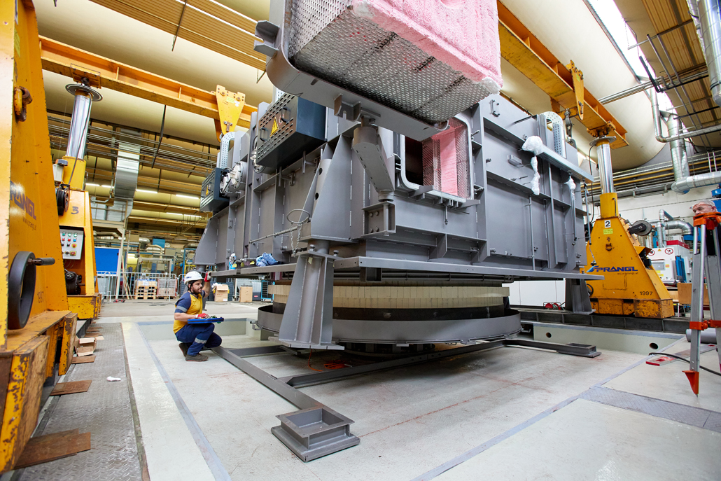 Zbog ograničenog prostora u proizvodnoj hali, demontaža se morala obaviti unaprijed. Tek tada je mogao započeti pravi posao. Prvi radni korak izveo je teleskopski kran nosivosti 70 tona, koji je iskrcao dopremljene dijelove peći s niskog teretnog prikolice. Tada je korišten viličar nosivosti 3,5 tone i maksimalne visine dizanja 4,5 metara te snažni valjci. Zajedno su imali zadatak donijeti pojedine dijelove u halu i postaviti ih na unaprijed određeno mjesto za montažu.