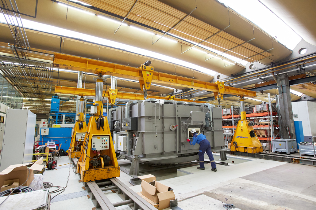 Delikatan zadatak za Pranglov tim bila je montaža rotacijske peći promjera 4,4 metra u hali u kojoj će se u budućnosti koristiti 10-tonski stroj. Izazov je u ovom slučaju bio u ograničenom prostoru hale, opremljenoj proizvodnim uređajima, gdje nije bilo potrebe ometati tekući rad.