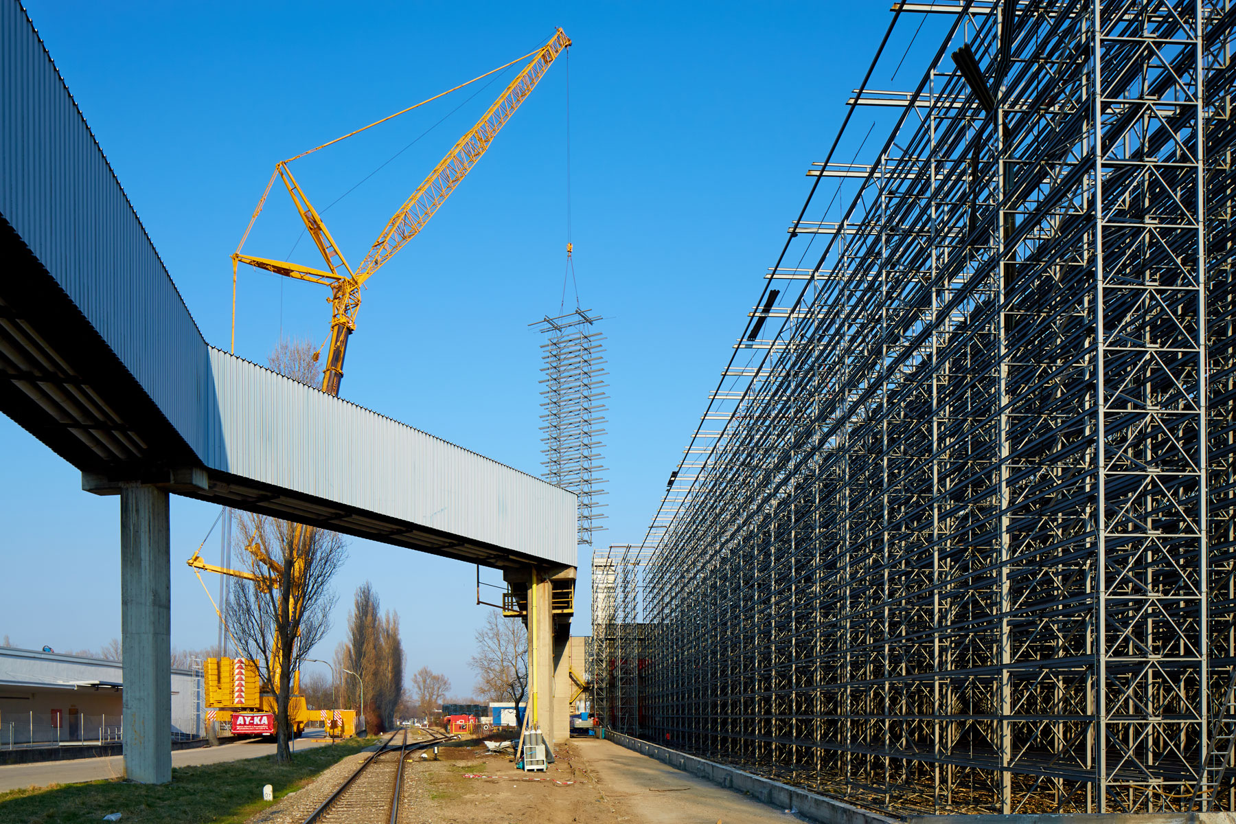 Osnova ovog zadatka bila je brza demontaža. Tvrtka Prangl je razvila koncept koji je omogućio demontažu cijele hale od 7.800 četvornih metara s jednog parkirališta i s jednom dizalicom. I to bez potrebe premještanja pokretne dizalice. Pojedinačnim teretima od 3,5 tone u radijusu do 106 metara mogla je upravljati samo jedna osoba: i to teleskopskom dizalicom od 500 tona. Postavljena je u najveću moguću duljinu sustava od 145 metara s protuutegom od 180 tona. Ukupna težina diva uz najveću moguću natovarenost, iznosila je, dakle, 320 tona.