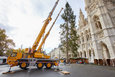 Drvo je istovareno u tandemu s dvije teleskopske dizalice od 60 tona na Rathausplatzu, zarotirano i podignuto. Ali posao nije završen s instalacijom. Na kraju je smreku trebalo pretvoriti u božićno drvce. Za to je korištena kamionska radna platforma s maksimalnom radnom visinom od 36,7 metara, nosivošću od 500 kilograma i bočnim dohvatom od 30 metara. U relativno veliku radnu košaru bilo je lako ponijeti ukrase za božićno drvce i dodane grane. Božić može doći sada!