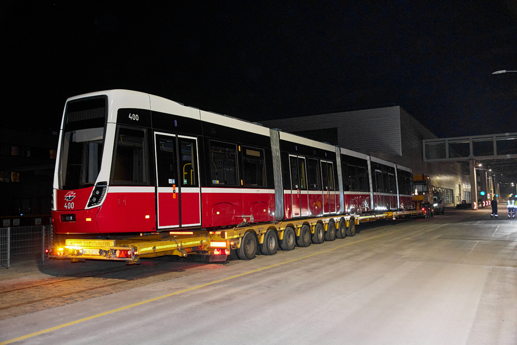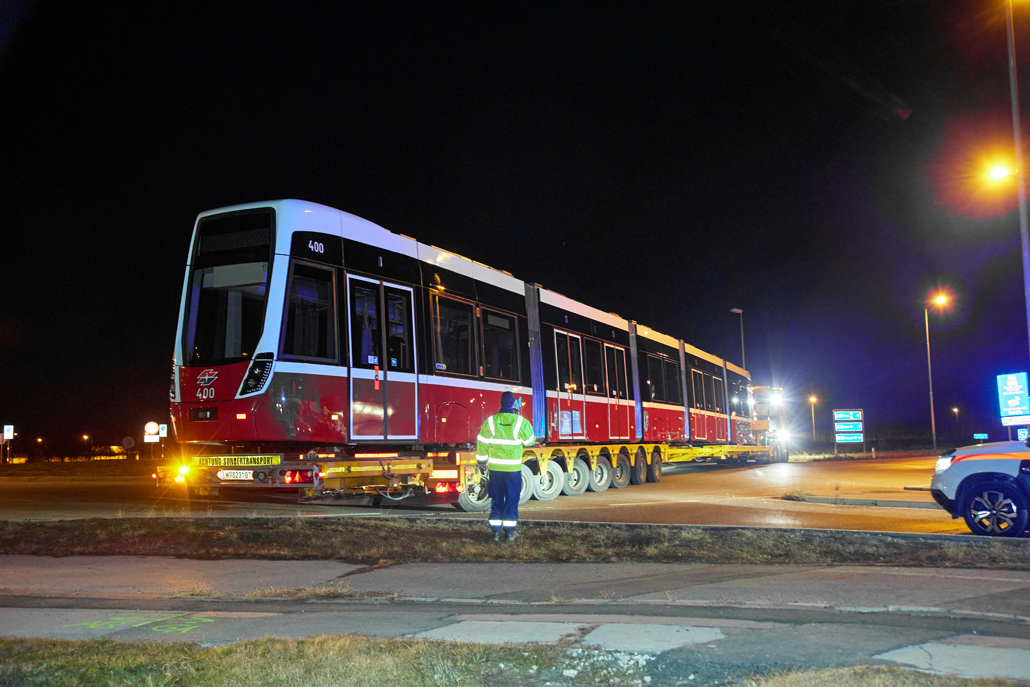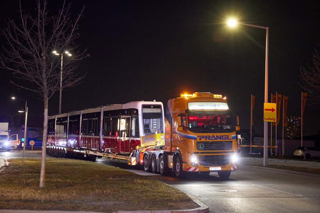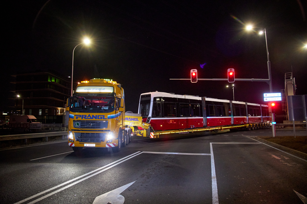 Novi tramvaji "Flexity" već se neko vrijeme koriste u Beču i nude putnicima veću udobnost. Sada je 100. tramvaj trebao biti isporučen iz tvornice u 22. bečkom okrugu tvrtki Wiener Linien. Prangl je jubilarni set prevezao sa sjevera na jug grada – u središnju radionicu u 11. okrugu.