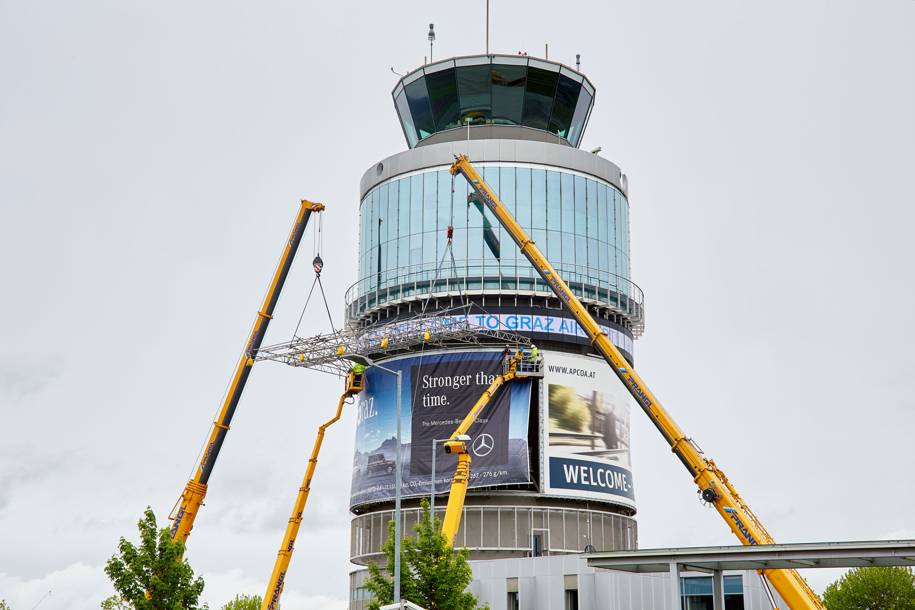 Obje teleskopske dizalice postavljene su uz cjevovod kako bi optimalno obavljale svoju zadaću. Prethodno izrezani dio uklonjen je pokretnom dizalicom nosivosti 500 tona. Uz pomoć nekoliko ljudi i užadi prebačen je pored susjedne zgrade u ispravan položaj, a potom je teret spušten kranom nosivosti 500 tona. Zatim je podignuta i okrenuta u horizontalni položaj pomoću tandem dizalice od 160 tona. U sljedećem koraku podignut je stari pogon od 80 tona zajedno s dva motora. Zatim je na red došao novi pogon.Zatim je na red došao novi pogon.