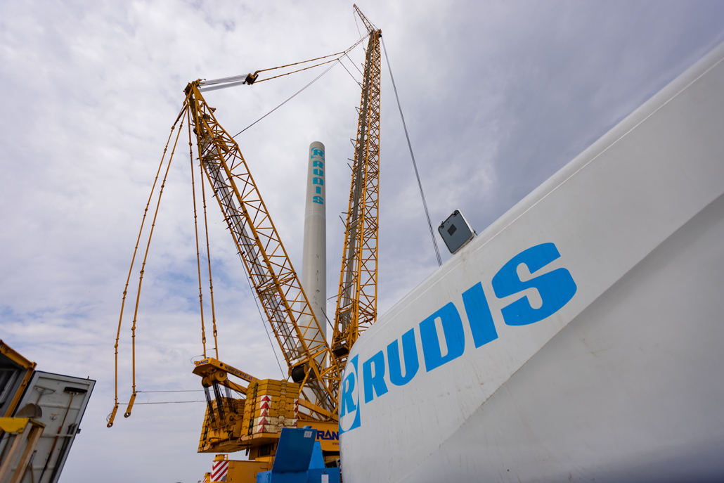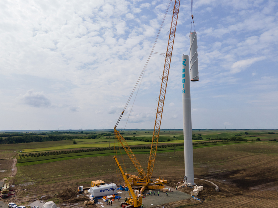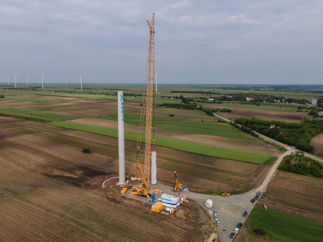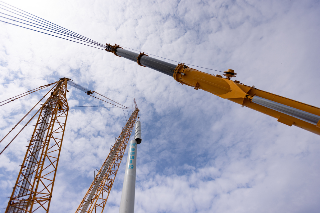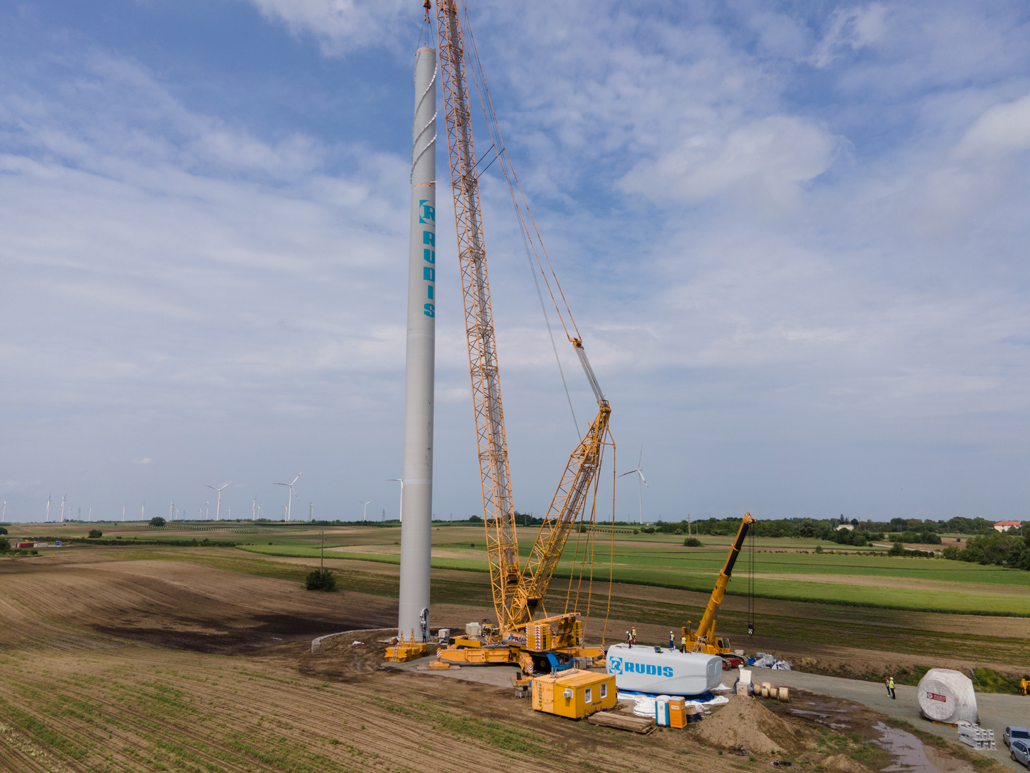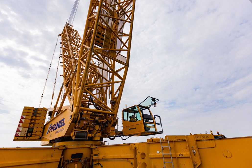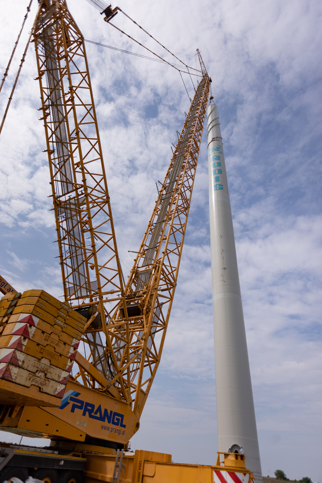 Dizalica s rešetkastom granom nosivosti 600 tona bila je jedino rješenje za postavljanje vjetroturbina, od kojih svaka ima visinu glavčine od 100 metara. Ova dizalica nije savršena samo zbog svoje ogromne snage. Niski troškovi mobilizacije i mogućnost brzog premještanja s jednog stacionarnog područja na drugo također su bili jasni faktori u prilog ovom divu iz žute flote. Ogromna dizalica konfigurirana je s ukupnom duljinom sustava od 120 metara. Ukupno je žuti kolos težio 568 tona. Najteže komponente koje je trebalo podići bile su gondole, od kojih je svaka težila 123 tone i bila duga 11,4 metra.