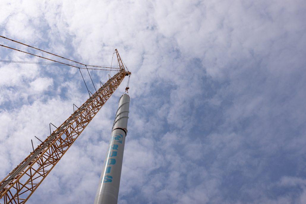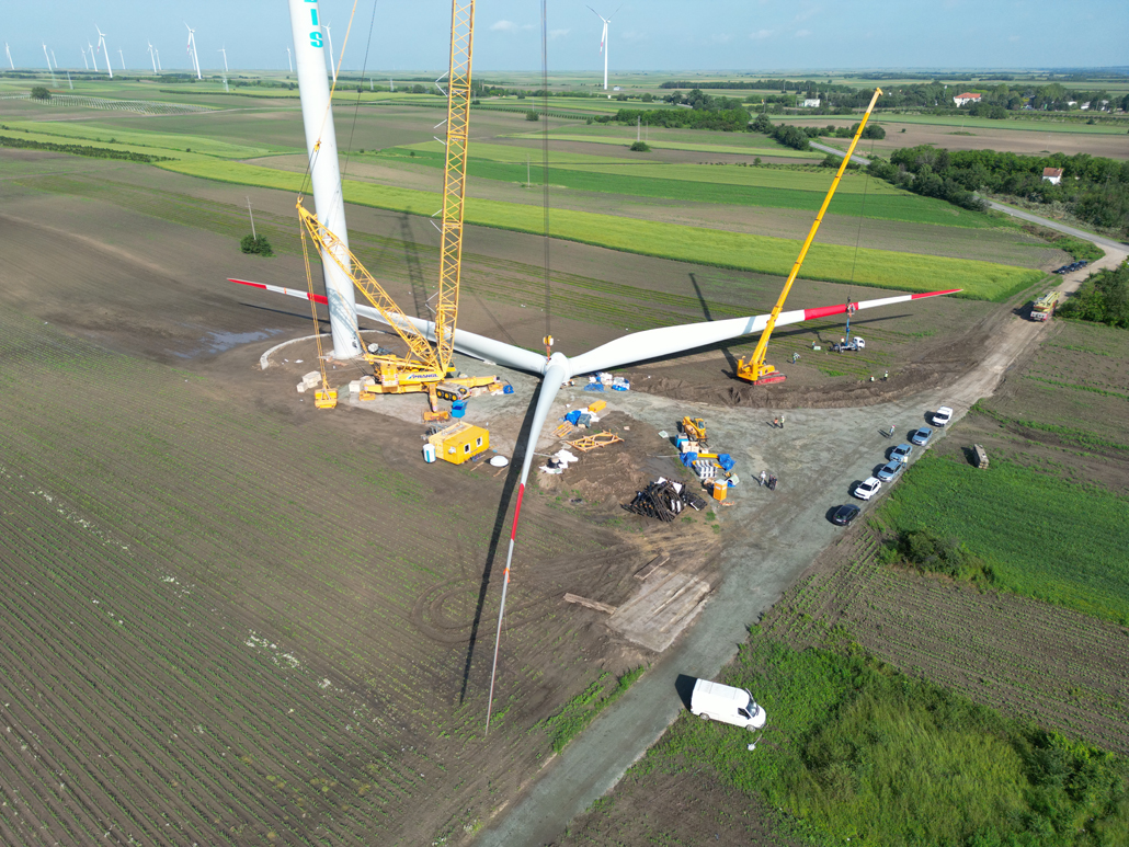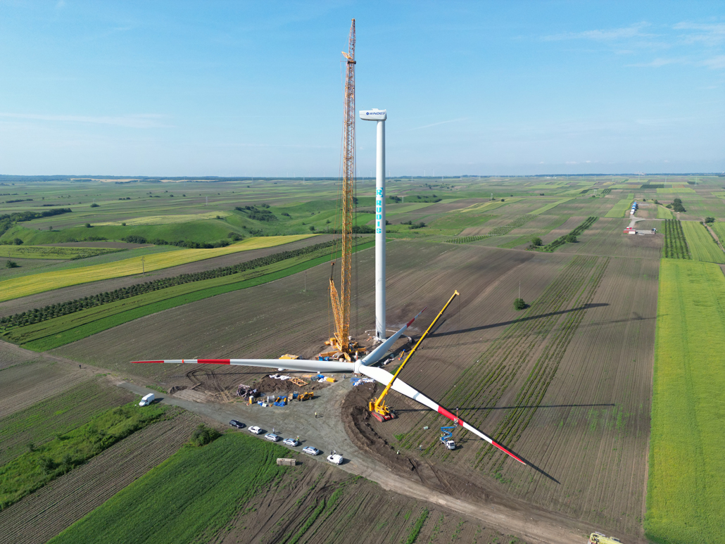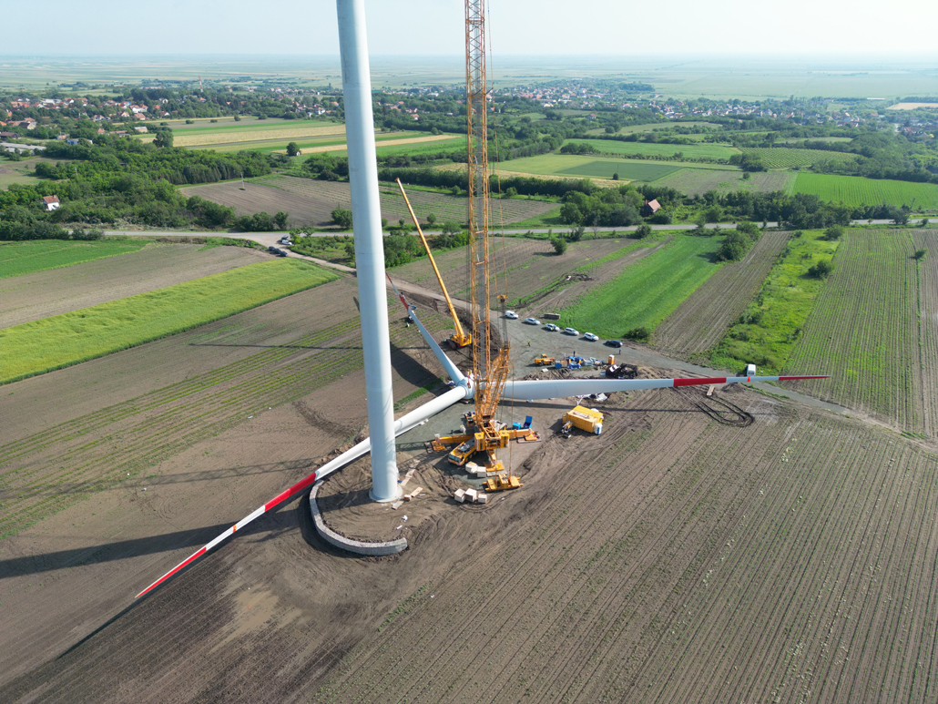 Posljednji korak bio je objesiti zvijezdu rotora za glavčinu na veliku dizalicu, rotirati je i podići: Pomoćne su dizalice paralelno podigle dvije lopatice rotora – sve dok zvijezda rotora nije obješena okomito. Spoj s pomoćnim dizalicama je zatim otpušten i rešetkasta dizalica je polako podigla zvijezdu rotora do visine gondole. Nakon zakretanja, zvijezda rotora se mogla pažljivo približiti konačnom položaju na gondoli i potom montirati. Komunikacija između međunarodnih timova bila je vrlo dobra. Zahvaljujući Pranglu, izgradnja prvih kineskih vjetroturbina u Srbiji stoga se može smatrati punim uspjehom.