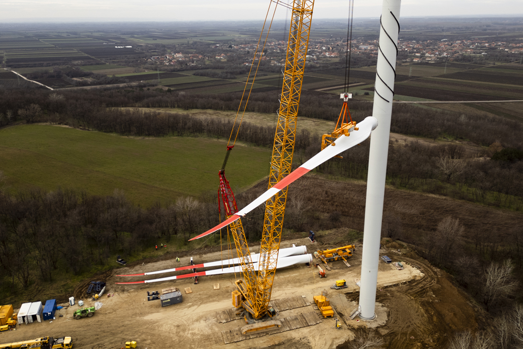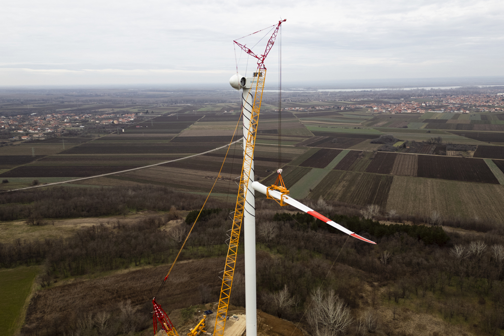 Zatim je došla gondola, teška 91,8 tona i dimenzija 12,5 x 4,2 x 4,2 metra, a zatim pojedinačne lopatice rotora, svaka dugačka nešto manje od 65 metara i teška 32,5 tona. Nakon što je svako pojedinačno dizalo završeno, glavno dizalo premještalo se s lokacije na lokaciju pomoću dodatnog teleskopskog dizala od 90 tona. I ljudi i strojevi su uzorno odradili svoj posao. Nakon otvaranja vjetroelektrane Kostolac, ove će turbine biti najsnažnije u zemlji.e v državi.