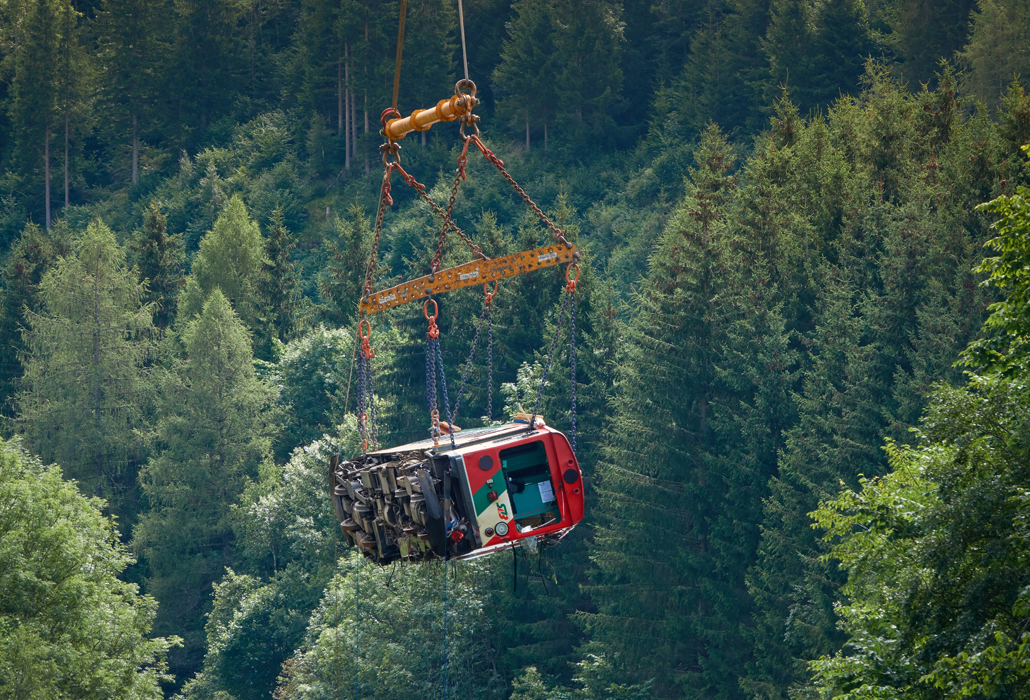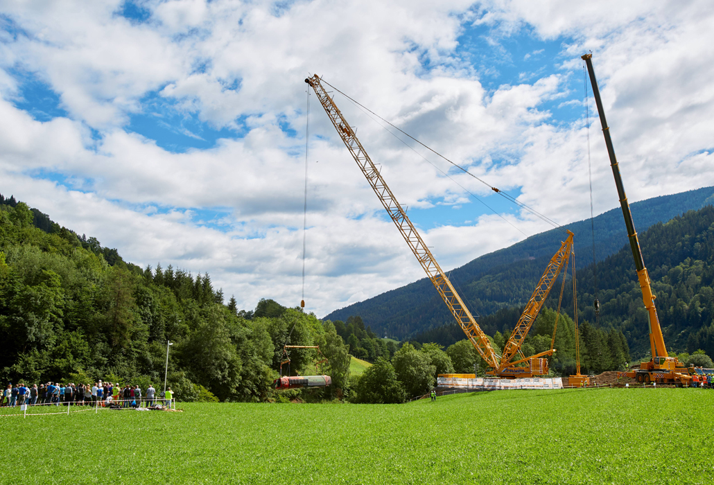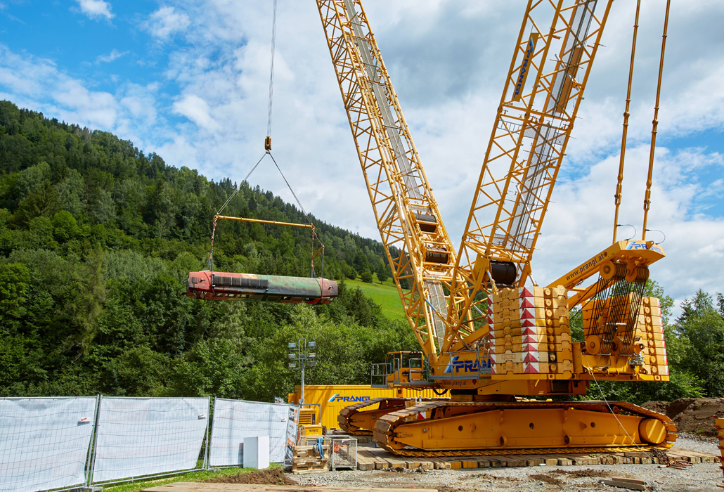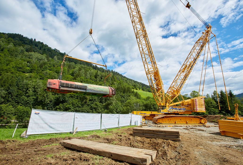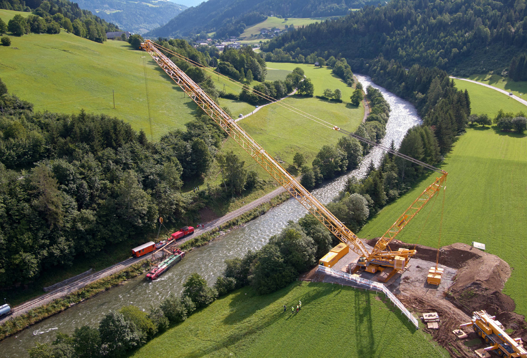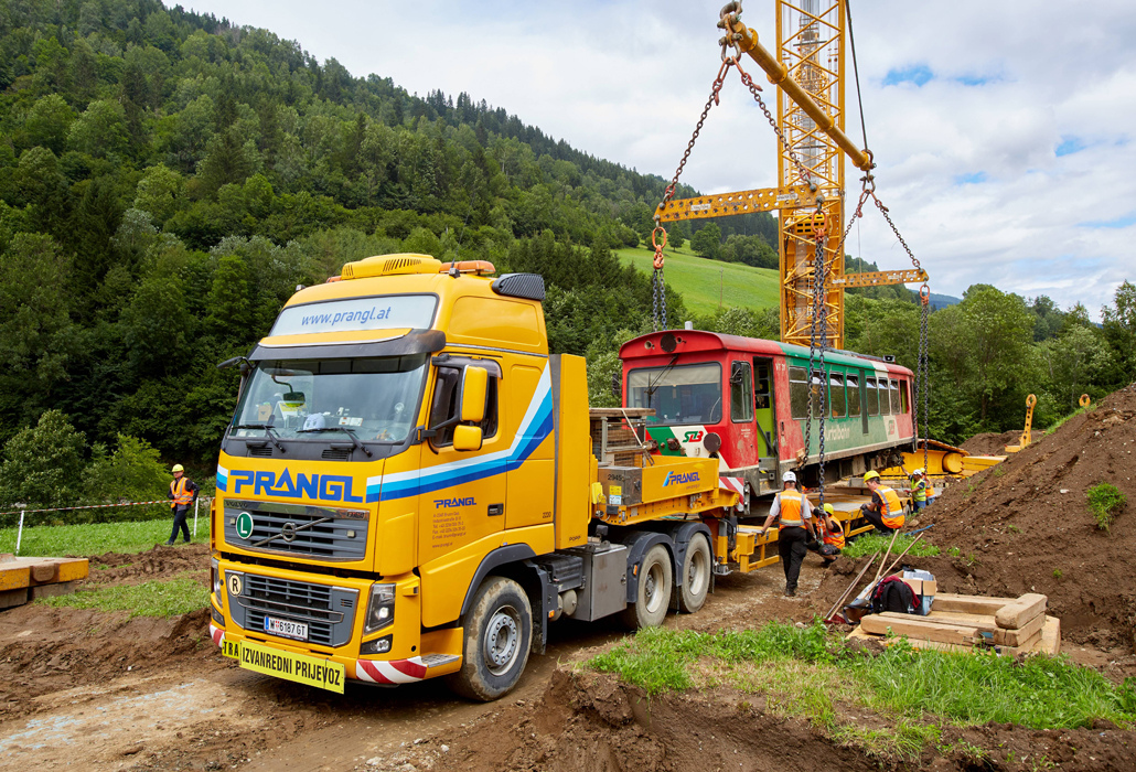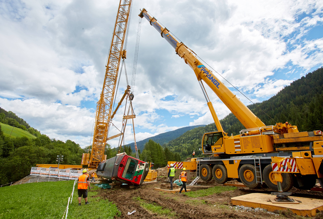 9. srpnja 2021. na prugi željeznice po dolini rijeke Mure željeznička kompozicija ispala je iz tračnica i pala u rijeku između Štajerske i Salzburga. Zbog lokalnih uvjeta brzo je postalo jasno da to neće biti samo još jedan običan posao podizanja. Za veliku dizalicu morali su se obaviti neki pripremni radovi: Prije svega morali smo napraviti 90 metara dugu pristupnu cestu. Kako bi mogli sigurno postaviti našeg žutog diva, morali smo izgraditi posebnu površinu od oko 600 četvornih metara. Kao da to ne bi bilo dovoljno, morali smo izraditi i posebnu opremu za podizanje.