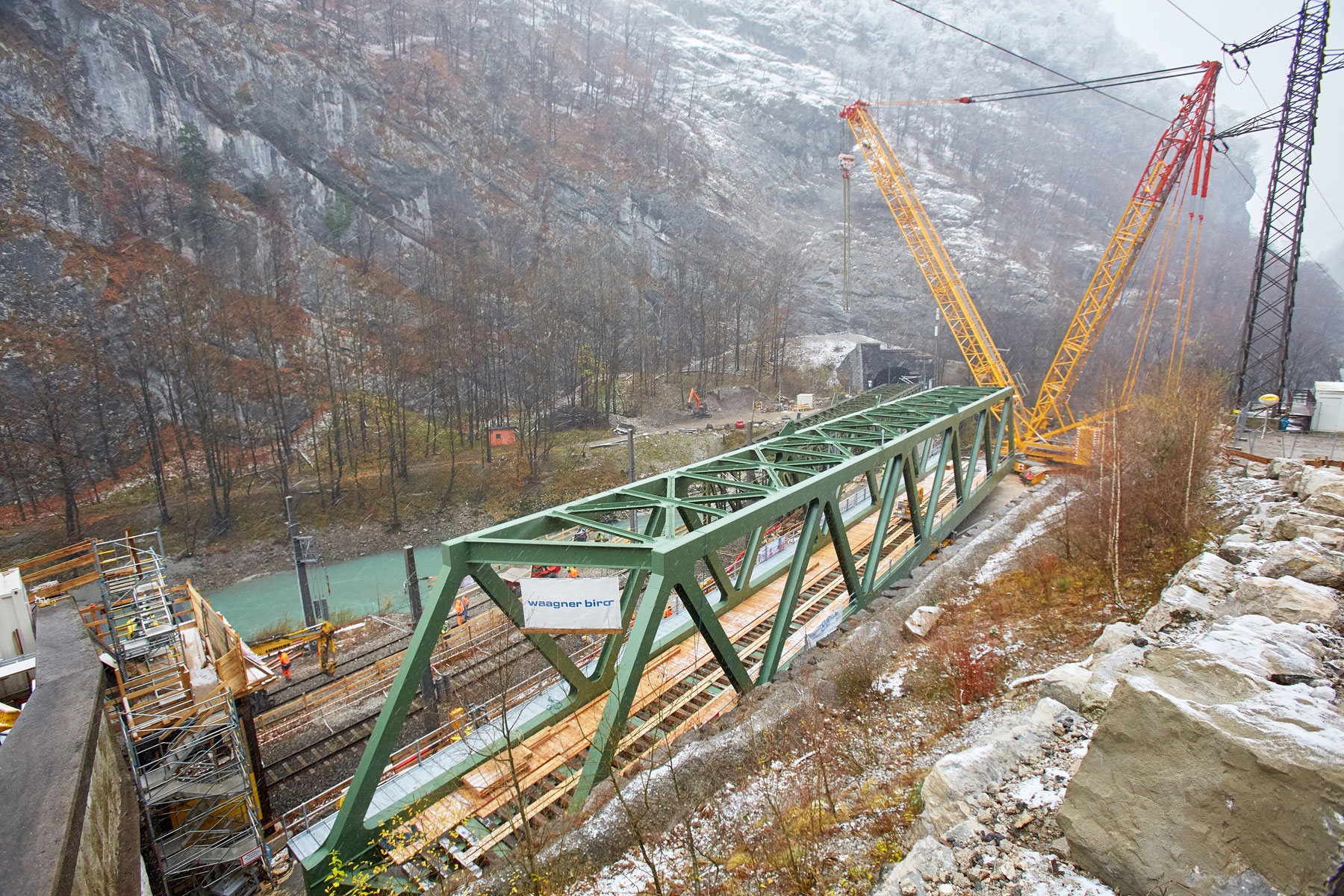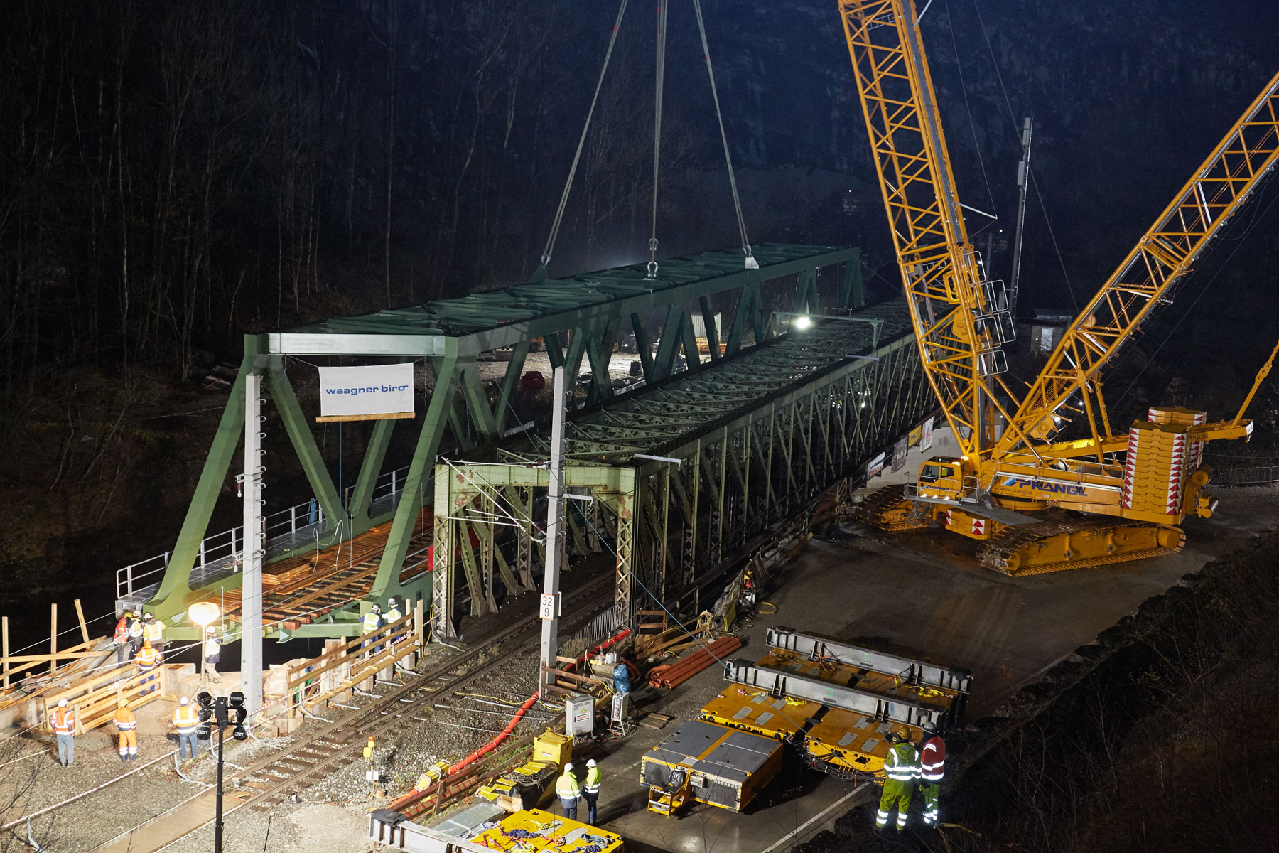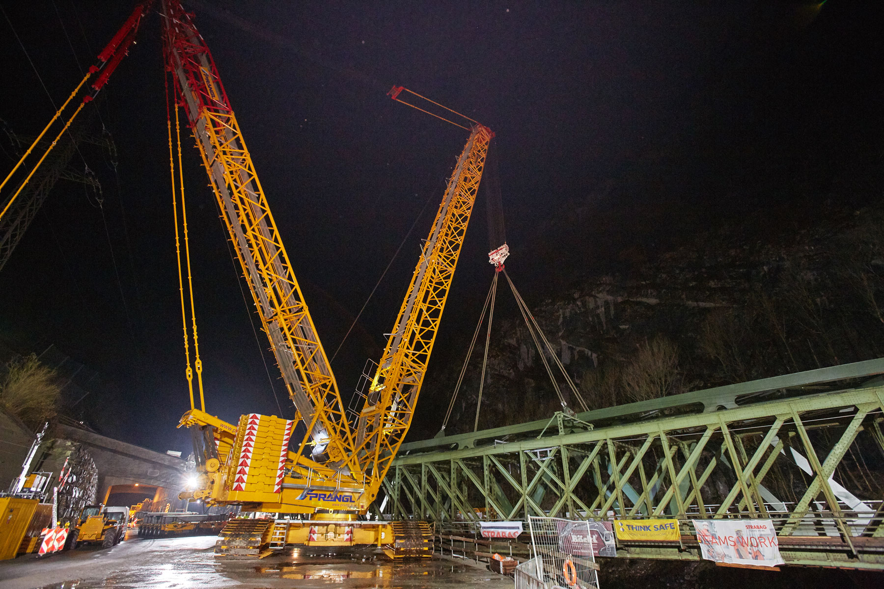 Željeznički most star više od 100 godina bio je na kraju svoje životne dobi. Morao se zamijeniti novim - i to pomoću stručnjaka za podizanje tvrtke Prangl. Osim dimenzija čeličnog okvira (70 metara dužine, 7 metara širine, 8 metara visine, a težio je 350 tona), ograničeni prostorni uvjeti pokazali su se kao poseban izazov za sve uključene.