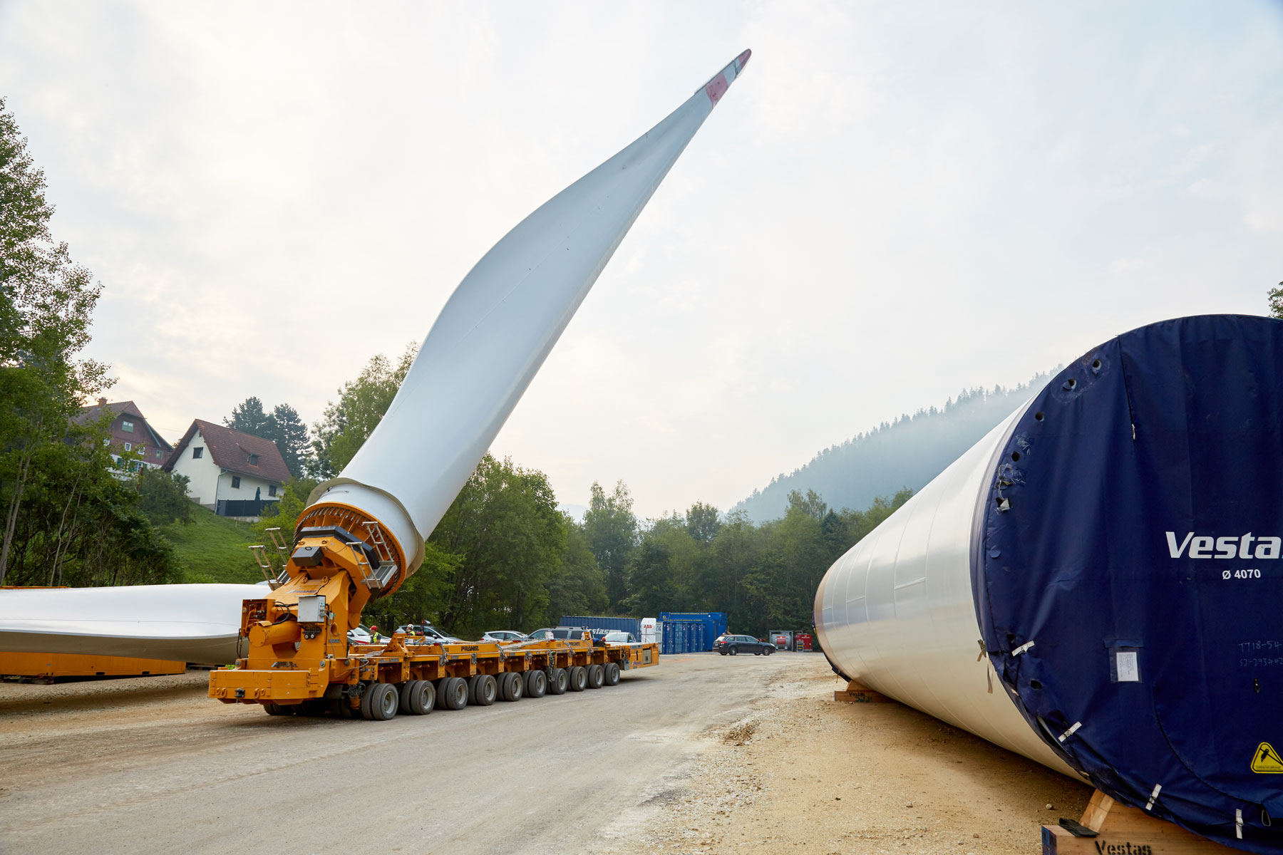 Kada je riječ o prijevozu lopatica rotora vjetroelektrana na planinska i šumska područja, stroj za transport lopatica prava je oprema. Gdje god se ne mogu koristiti konvencionalni kamioni, koristimo samohodni stroj za prijevoz lopatica rotora. Zahvaljujući inovativnoj tehnologiji i posebnim značajkama, taj je stroj međunarodno jedinstven u svojoj klasi. Stroj za transport krila osobito je prikladan za prijevoz iznimno velikih i teških lopatica rotora. Njime možemo vrlo lako pomicati i težine do 25 tona, što i u svijetu predstavlja posebnu specijalnost. Adapter odgovara svim vrstama lopatica, stoga je njegova uporaba vrlo fleksibilna.